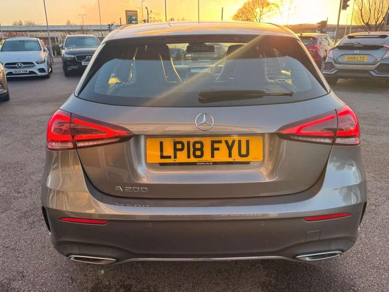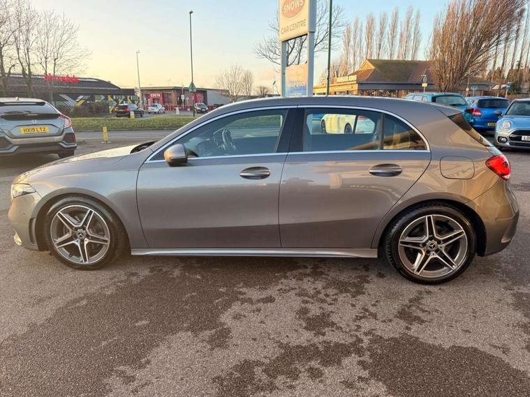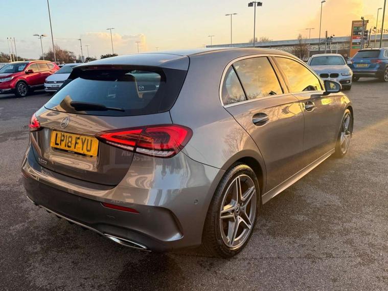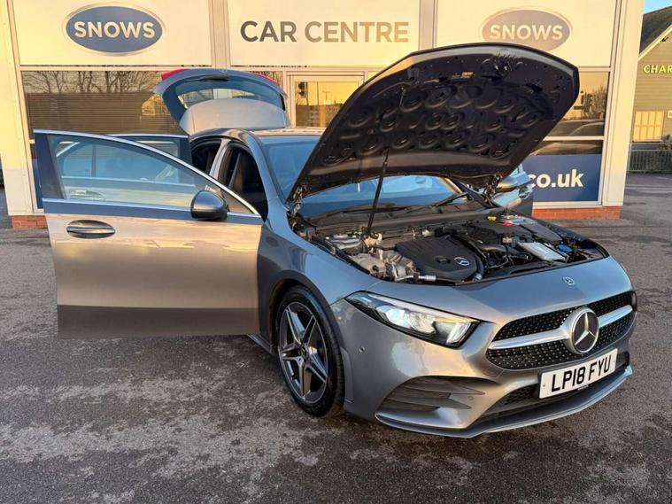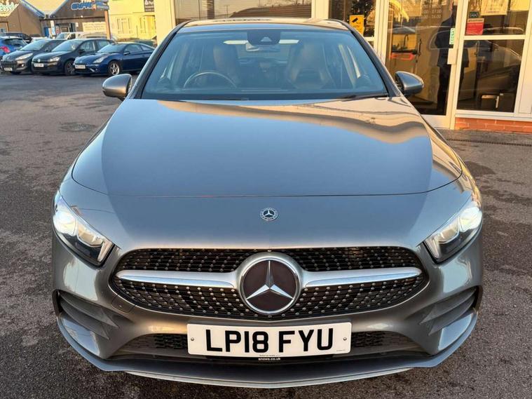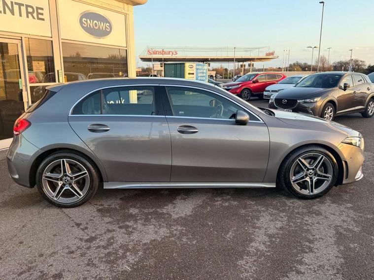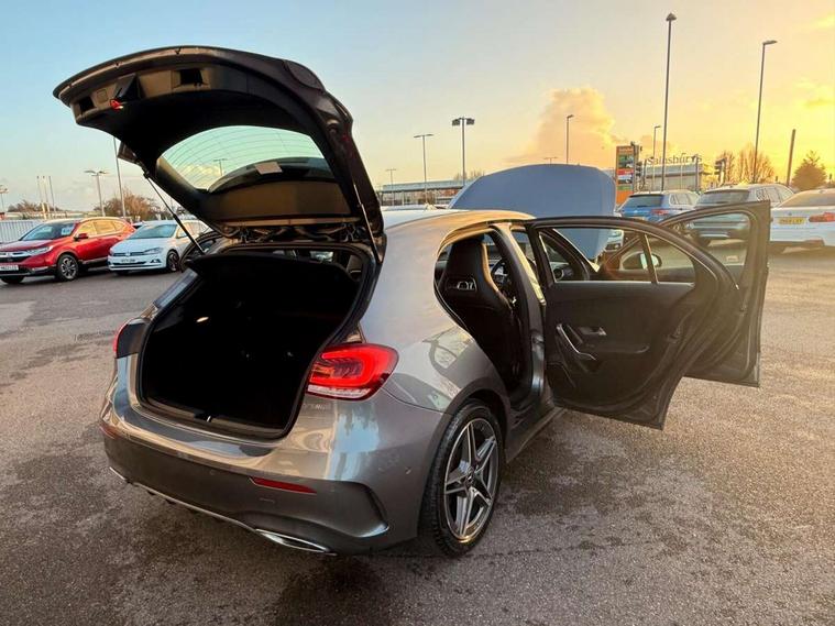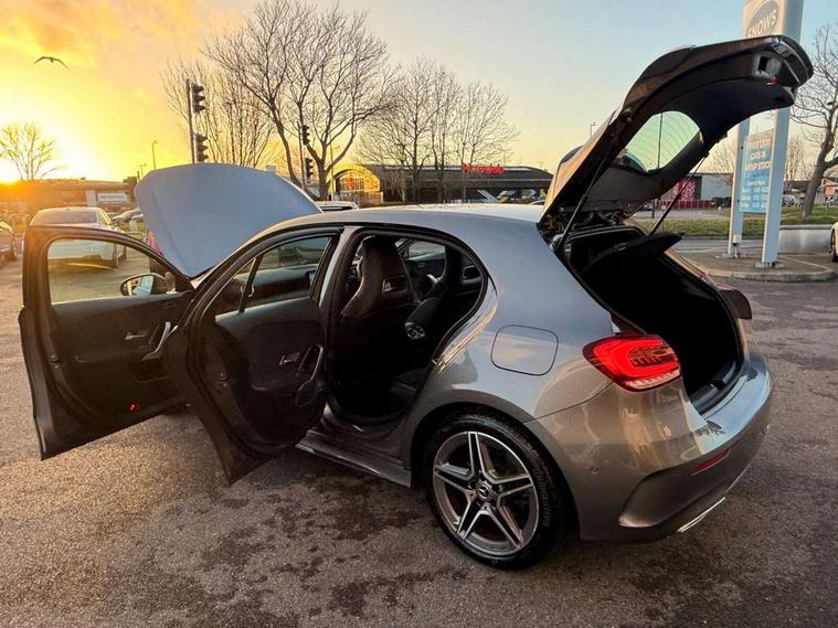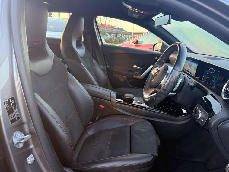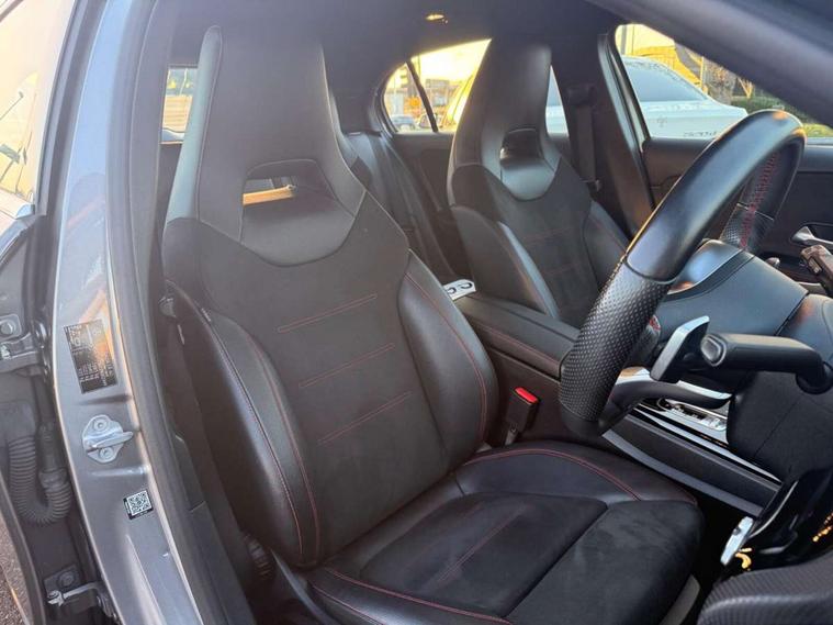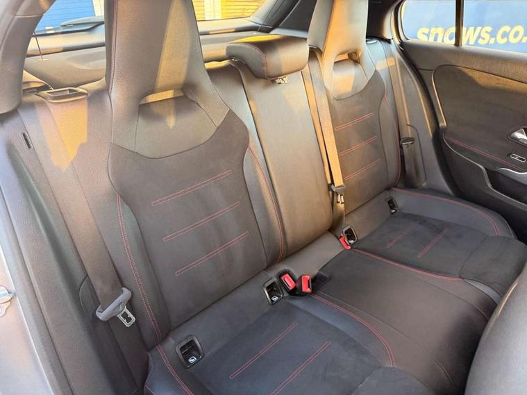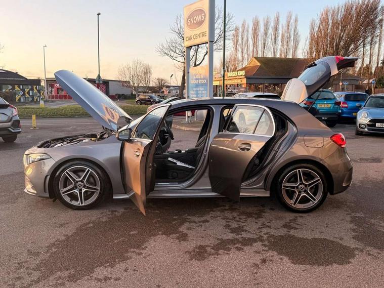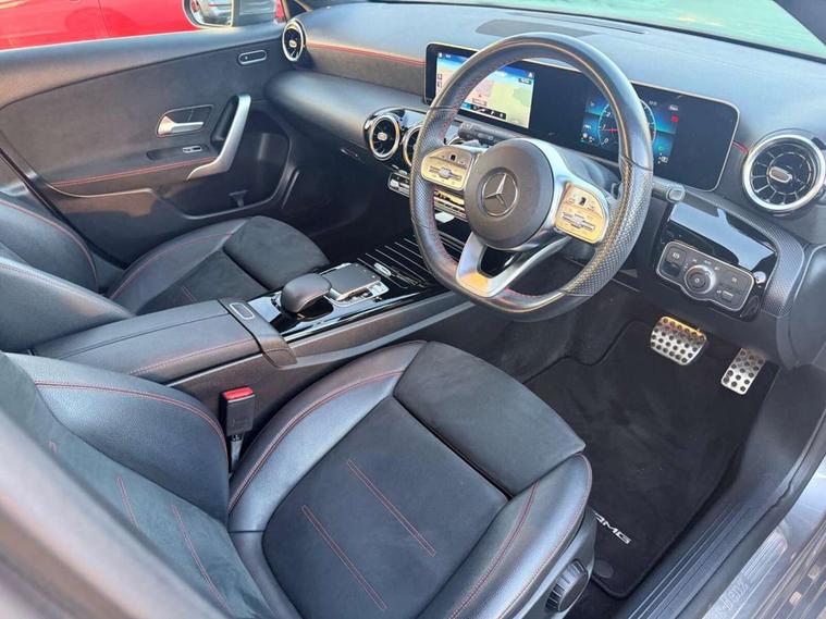 10.25" display screen, Active lane keep assist, Active park assist with parktronic system, Attention assist, Bulb failure indicator, Collision prevention assist plus, Cruise control + speed limiter, DYNAMIC SELECT with a choice of driving modes (ECO, Comfort, Sport, Sport+ and Individual), External temperature gauge, Low fluid warning light, Mercedes connect me with remote online services, Reversing camera, Service indicator (ASSYST PLUS), Speed sensitive power steering, Trip computer, Voice control system, Lowered sports suspension, 2 USB ports in centre console, DAB Digital radio, Multimedia System, SD card slot, Adaptive brake lights, AMG body styling, Auto dimming driver's door mirror, Auto dimming rear view mirror, Body colour bumpers, Body colour door handles, Body colour side skirt, Body coloured door mirrors, Chrome beltline trim, Diamond radiator grille with chrome pins and silver louvre + chrome insert, Electric adjustable heated door mirrors, Electric folding door mirrors, Electric front windows, Electric rear windows, Headlamp assist, Heated rear window with timer, LED daytime running lights, LED Headlights, LED rear lights, Rain sensor windscreen wipers, Rear wiper, Twin Trapezoidal tailpipes, 1/3 to 2/3 split folding rear seats, 12V socket, 3 spoke flat bottomed nappa leather sport steering wheel, AMG floor mats with red stitching, Artico man-made leather/Dinamica upholstery, Auto Mercedes-Benz child seat recognition sensor, Black headlining, Brushed stainless steel sports pedals with rubber studs, Dual zone automatic climate control, Footwell lights, Front and rear reading lights, Front centre armrest with storage compartment, Front door sills with Mercedes Benz lettering, Front head restraints, Front seat backs luggage nets, Front sport seats, Gearshift paddles on steering wheel, Heated front seats, Height adjustable front seats, Height/reach adjustable steering column, Illuminated cup holders, Illuminated glovebox, Illuminated storage compartment, Integrated head restraints, Isofix rear child seat preparation, Load securing rings in luggage compartment, Luggage compartment cover, Multifunction steering wheel, Oddments tray lighting, Rear head restraints, Storage compartment under load area floor, Sunvisors with illuminated vanity mirrors, Twin front cupholders, Seat comfort pack - A Class, 3 rear 3 point seatbelts, ABS with Brake Assist, Active bonnet, Adaptive brake system, Brake calipers with Mercedes-Benz lettering + perforated brake discs, Child proof door locks, Crash responsive emergency lighting, Drivers knee airbag, Dual stage driver/passenger airbags, Electronic parking brake, ESP with ASR, Front and rear seatbelt reminder, Front head airbags, Front passenger seat occupancy sensor, Front side airbags, Hill start assist, Tyre pressure monitoring system, Warning triangle and first aid kit, Window airbags, Alarm system/interior protection/immobiliser, Keyless ignition, Remote central locking, Chrome air vent surrounds, 18" AMG 5 twin spoke light alloy wheels in titanium grey with highsheen finish, Tirefit sealant with electric air pump,