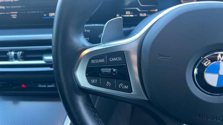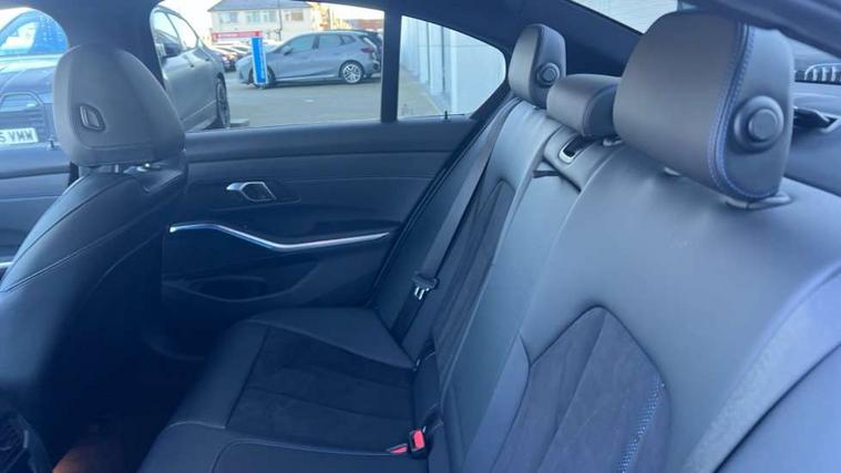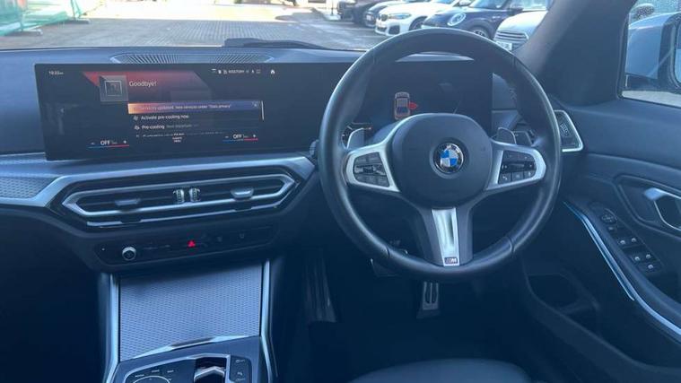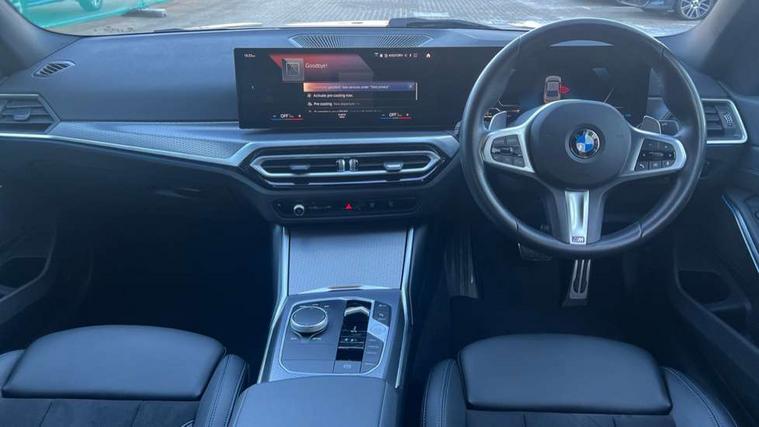 Active guard plus, Attentiveness assist, Automatic Start/stop button, BMW iDrive, BMW Teleservices, Condition based service, ConnectedDrive Services, Driving experience switch, Live cockpit plus with Navigation + 12.3" instrument display + 14.9" display, Intelligent voice assist, 2 USB, 4G LTE connect, Oil sensor for level and grade, PAS, Preparation for driver assistance, Shifting point display, Variable sport steering, Double joint spring strut front axle, Fuel tank breather system, Sport automatic transmission with steering-wheel mounted gearshift paddles and launch control, DAB tuner, 3rd brake light, Auto dimming rear view mirror, Auto dimming with folding wing mirrors, Automated High beam assist, Automatic headlight beam throw control with load dependent regulating reaction, dynamic compensation of braking dive and acceleration squat, BMW emblem, engine compartment lid and tailgate, Body colour roof fin, Door sill strips, Electric windows - front and rear, with open/close fingertip control, anti-trap facility and comfort closing, Follow me home headlight function, Front and rear bumper system with replaceable deformation elements, Front apron plastic in body colour, Fuel filler flap - right rear in body colour, Heated washer jets, High gloss shadow line exterior trim, Illuminated bow type door handles in body colour drivers side with door lock, Interior rear view electrochromatic mirror with automatic anti dazzle function, LED headlights with LED daytime running lights and LED turn indicator, LED rear lights, Licence plate panel integrated into front bumper and tailgate, Matt black B-pillar finsher, Matt black window recess cover, Model designation on right side of tailgate, One piece front bumper cover including towing eye cover in body colour, Rain sensor with automatic headlight activation, Rear boot, Rear side wing doors, Reversing lights, Side frame decorative moulding black matt, Visible exhaust tailpipe finisher, Welcome lights in interior and door handle area, 12V power socket in front storage compartment, 2 front cupholder in centre console with clamping elements and matt black inlay, 3 seat bench in 2nd row, 3 zone automatic air conditioning, 40:20:40 split folding rear seat with loading system, Ambient inside door handle light, Ambient light design projected onto the left and right entering and exiting area, Ambient storage compartment lighting in the centre console, Anthracite headlining, Armrest integrated in front and rear door trim + front centre console armrest, BMW ID, Contour lighting in instrument panel and door trim panel, Cruise control operation in steering wheel, Driving experience mode switch, Extended storage, Folding rear centre armrest with 2 cupholders, Front and rear ambient footwell lighting, Front and rear door exit lighting (left / right), Front and rear headrests, Front and rear reading lights, Front and rear velour floor mats, Heated front seats, Height adjustable mechanically and infinitely variable steering column, Illuminated armrest storage compartment, Illuminated glove compartment, Illuminated luggage compartment, Lashing eyelets in luggage compartment, M Sport multifunction leather steering wheel, Make-up mirror lights, Single front passenger seat, Standard seat for driver and passenger with manual adjustment, Sunvisors with illuminated vanity mirrors and ticket pocket, Toolkit located in luggage compartment, Connected pack professional - 3 Series Saloon/Touring, Interior and exterior mirror pack - 3 Series Touring/Saloon, M Aerodynamics package - 3 Series Saloon/Touring, M sport exterior styling pack - 3 Series Saloon/Touring, Parking assistant pack - 3 Series, Storage compartment pack - 3 Series Saloon/Touring, 3x3 point rear seatbelts, BMW emergency call, Child locks on rear doors, Crash sensor activating of airbags, Unlocking doors, hazard warning lights, interior light, safety battery terminal, Driver and front passenger with seat occupancy detection for driver's and passenger side, Driver and passenger side airbags, body protection at side and airbags deploy from seat backrests, Dynamic brake control, Dynamic stability control + (DSC+) - Anti-lock Braking System (ABS) with brake assist and cornering brake control + Automatic Stability Control (ASC), Dynamic Traction Control - DTC, Electric parking brake including automatic hold function and automatic release of the parking brake when driving off, Electronic differential lock control (EDLC), Front airbag deactivation, Head airbags in 1st and 2nd row, head protection at side, curtain airbags open from headliner above 1st and 2nd row, Plastic fuel tank, Side impact protection, Tyre pressure monitoring with three level warning strategy, Ventilated front and rear disc brakes, Warning triangle and first aid kit, Alarm system, Centre lock switch, Closing system with central locking, Electronic vehicle immobiliser, Locking wheel bolts, Tyre repair kit,