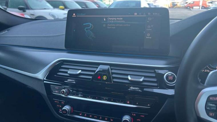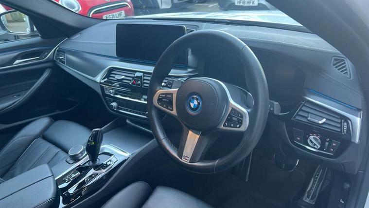 32GB hard disc drive (HDD) memory, Active Guard, BMW Live Cockpit Professional sat nav system with 12.3" instrument display and high resolution control display, BMW Teleservices, Brake pad wear indicator, Cruise control with brake assist, Digital Instrument display with hybrid specific functions, Driving experience switch specific to 530e/530e xDrive, Electric boot lid - electrically opening/closing rear tailgate, Electric Power Steering (EPS) with Servotronic, Electronic display of drivetrain information and battery range and temperature, iDrive touch controller with shortcut buttons, Intelligent emergency call, Multifunctional instrument panel, Oil sensor for level and grade, On board computer inc. average speed, fuel consumption, liquid crystal Info display, journey computer, outside temperature display, personal profile, On-board diagnosis - OBD, Powered by Operating System 7.0, Service interval indicator, Speed limiting function, Stop/start button, XtraBoost driving mode, 5 metre standard charge cable, AC Fast charge cable, Charging flap in front side panel - left, Drive performance control with ECO PRO comfort + sport mode, eDrive exterior sound, Electric motor, Engine cover with twin turbo designation, Standard Charging cable (Mode 2) for home socket, Steptronic transmission with gearshift paddles on steering wheel, DAB Digital radio, Favourite buttons, "Electrified by i" exterior badging on charging flap, Acoustic glazing, All round anti-corrosion system, Aluminium radiator, Automatic windscreen wipers and automatic headlight, Automatically dimming rear view mirror, BMW Individual high gloss shadow line includes exterior mirror frame, window frame surround, B pillar finish, air breather in high gloss black, BMW roundel with BMW i blue surround on steering wheel, wheel centre caps, tailgate and bonnet, Body colour door handles, Body coloured bumpers, Door handle illumination, Dynamic brake lights with LED technology, Electric front and rear windows with fingertip open/close + anti-trap facility and comfort closing function, Electrically adjustable and heated exterior mirrors includes integrated direction indicators and automatic parking function, Folding exterior side mirror with auto- dimming, Follow me home headlight function, Heated windscreen washer jets, High gloss black active air stream kidney grille, High gloss shadow line roof rails, Independent opening for tailgate window, LED daytime running lights, LED third brake light, M designation on front side panels, left and right in chrome, Trapezoidal visible exhaust tailpipes, 12V power socket in front and rear, 40/20/40 split folding rear seats with additional mechanism in luggage compartment, Anthracite headlining, Armrest - front and rear integrated door trim, centre console includes storage compartment, rear centre includes 2 cupholders, Child seat ISOFIX attachment with rear outer seats includes top tether, Cup holders (2 front and 2 rear), Front and rear footwell lights, Front reading lights, Height and length adjustable steering column and activation via lateral lever on the steering column, Illuminated charging socket with visual display of charge status, Lockable glove compartment with light, M door sill finishers, M specific pedals, M specific velour floor mats, Multifunction controls for leather steering wheel, Rear headrests, Retractable luggage compartment dividing net, Stationary cooling, Three spoke sport M leather steering wheel, Ambient lighting pack - 5 Series, Connected package professional - 5 Series, M Aerodynamic pack - 5 Series, Acoustic protection for pedestrians, Airbags - driver/front passenger, rear and side, first and second row seats head airbags, front passenger seat airbag deactivation, Anti-lock braking system (ABS), Automatic Stability Control (ASC), Brake assist function, Brake energy regeneration, Cornering brake control (CBC), Crash sensor activating central locking release, hazard warning lights, fuel cut off and interior lighting, Deformation zones - front and rear with door reinforcements and bumpers up to 2.5 mph, DSC - Dynamic Stability Control, Dynamic brake control, Dynamic Traction Control - DTC, Electromechanical parking brake with automatic drive away release and auto hold function, Electronic brake force distribution, Engine drag torque control, Front and rear brake discs with interior ventilation, Front head restraints with anti-whiplash, Hill start assist, M Sport brakes in high gloss blue painted brake callipers with M designation, Mechanical child proof lock on rear doors, Side impact protection, Three point seat belts for all four seats, Two tone horn, Tyre pressure indicator, Warning triangle and first aid kit, Alarm system (Thatcham 1) with remote control and electronic engine immobiliser, Locking wheel bolts, Tyre repair kit,