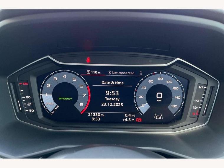 10.25" Digital instrument cluster display screen, Audi connect safety emergency and service including E-call, Audi drive select, Audi smartphone interface, Automatic start/stop system, Bluetooth interface, Driver's information system, Electromechanical power steering, Lane departure warning system, Service interval indicator, Speed limiter, Voice control system, Washer fluid level indicator, Dynamic suspension, 1 x SDXC card reader, 1 x USB type C and 1 USB type A charging points, Audi music interface, Bluetooth audio streaming, DAB Digital radio, MMI radio plus with 8.8" colour MMI display screen and MMI touch, Auto dimming rear view mirror, Body coloured bumpers, Body coloured door mirrors, Electric front and rear windows, Front side air inlets in grained matt black and C frame in titanium black, Heat insulating glass windscreen and side windows, Heated rear windscreen, LED headlights with LED rear lights + dynamic rear indicators, Radiator grille in matt titanium black, Radiator protective grille frame in matt aluminium silver, Rain and light sensors, Rear fog lights, Rear wiper, Side front spoiler lips in grained matt black, Titanium black matt diffuser, 12V socket in centre console with two cup holders, 3 rear seats, Door sills trims with aluminium inlays, Driver and passenger seat with manual height adjust with forward and backwards adjustment, Front head restraints, Front/rear floor mats, Height and reach adjustable steering wheel, Illuminated glovebox, ISOFIX child seat mounting in front passenger and rear outer seats, Leather gear knob with aluminium trim, Leatherette handbrake grip, Luggage compartment light with front and rear reading lights, Lumbar adjustment for front seats, Novum cloth upholstery with front sport seats, Rear head restraints, Split folding rear seats, Titanium grey cloth headlining, 3x3 point rear seatbelts, Audi pre-sense front with pedestrain and cyclist recognition, Brake assist function, Driver and front passenger airbag with front side and head airbags, Electronic Stability Control including ABS, EBD, ASR and EDL, Front and rear seatbelt reminder, Front passenger airbag deactivation switch, Hill hold assist, Seatbelt height adjustment for front seats, Seatbelt monitoring, Tyre pressure warning light, Warning triangle and first aid kit, Anti theft alarm, Anti theft wheel bolts and loose wheel warning, Immobiliser, Remote central locking with 2 remote folding keys, Aluminium trim for control switches, air vents and digital instrument cluster, Silver grey accent areas including air vents, door handle recesses and centre console in diamond paint finish, Slate grey inlays polygon structure in fine paint finish,