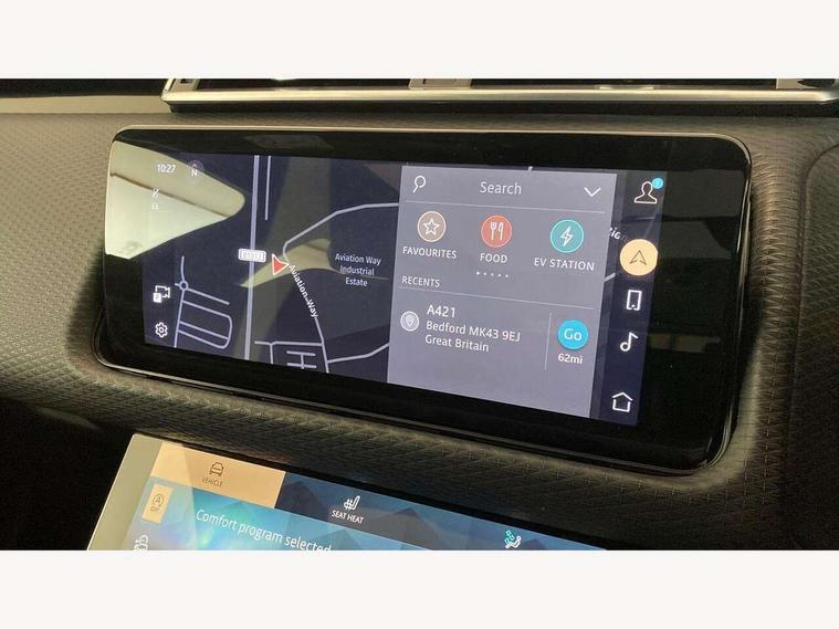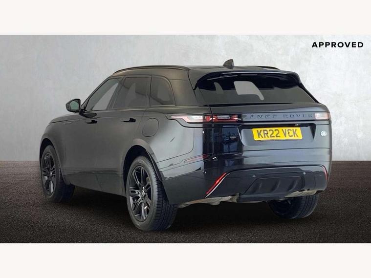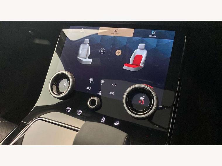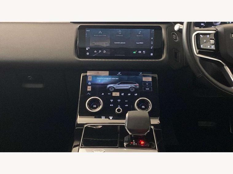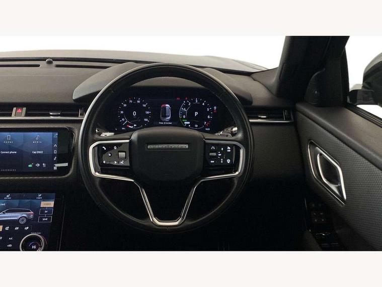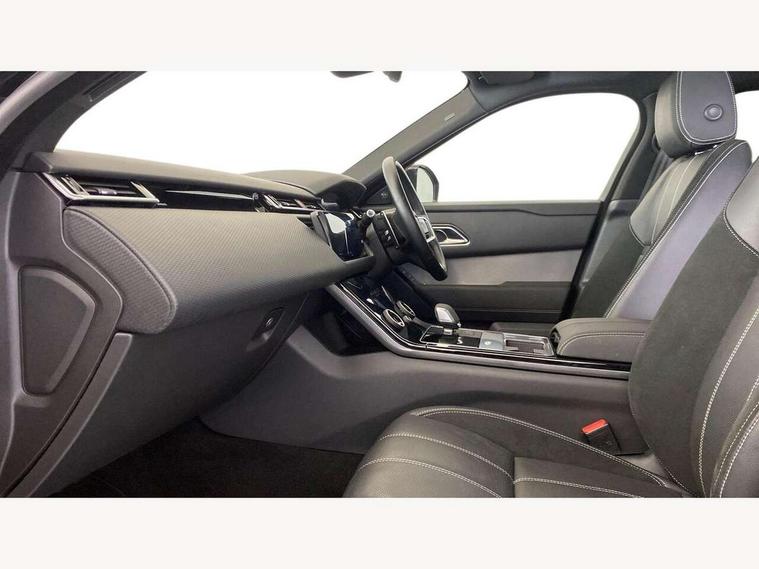 10" deployable touchscreen, Android Auto, Apple car play, Blind spot assist, Bluetooth connectivity, Brake pad wear indicator warning light, Driver condition monitor, eCall emergency call system, InControl remote, Interactive Driver display instrument cluster, Land Rover InControl apps, Lane keep assist, Pivi pro with connected navigation, Push button start, Rear traffic monitor, Service indicator, Speed proportional electronic power assisted steering (EPAS), Traffic sign recognition with adaptive speed limiter, Trip computer, Voice control system, 8 speed automatic transmission, AC/DC charging, Adaptive dynamics, All terrain progress control, Coil suspension system, Home charging cable, Open differential with torque vectoring by braking, Public charging cable, Single speed transfer box, Digital Audio Broadcast radio-DAB, Steering wheel mounted controls, Acoustic laminated windscreen, Adaptive front lighting system, Auto dimming interior rear view mirror, Automatic headlamp levelling, Automatic headlights, Body coloured bumpers, Boot protection plate, Electric heated/power fold door mirrors with approach lights and auto dimming driver side, Electric windows with one touch open/close and anti trap, Flush deployable exterior door handles, Follow me home headlights, Heated rear window with timer, Heated washer jets, Heated windscreen, LED 3rd brake light, Metal load space scuff plates, Rain sensor windscreen wipers, Rear animated directional indicators, Rear fog lights, Rear side wing doors, Rear wash/wipe, Tailgate/boot lid spoiler, Trailer stability assist, Velar and R-dynamic badge, 3 seat bench in 2nd row, Ambient lighting, Bright metal pedals, Driver/passenger sunvisors with illuminated vanity mirrors, Isofix system on outer rear seats, Loadspace cover, Overhead lighting console, Overhead stowage for sunglasses, Passive front headrests, Rear air vents, Rear centre headrest, Satin chrome gearshift paddles, Single front passenger seat, Standard interior, Twin front cupholders, Twin sliding front centre armrest, Online pack with data plan - Velar, 380mm front brakes and 325mm rear brakes, 3x3 point rear seatbelts, Anti-lock braking system (ABS), Cornering brake control, Curtain airbags, Customer configurable autolock, Door side intrusion beams, Driver airbag, DSC - Dynamic Stability Control, Electronic brake force distribution, Electronic parking brake, Electronic traction control, Emergency brake assist, Emergency braking, Front and rear seatbelt reminder, Hill descent control, Hill launch assist, Low traction launch, Passenger airbag, Power operated child locks, Rear airbags, Roll stability control, Side airbags, Tyre pressure monitoring system, Unpainted brake calipers, Global lock and unlock switch on driver door, Immobiliser, Intrusion sensor, Keyless entry, Lock only switch on front passenger door, Locking wheel nuts, Perimetric alarm, Remote central locking,
