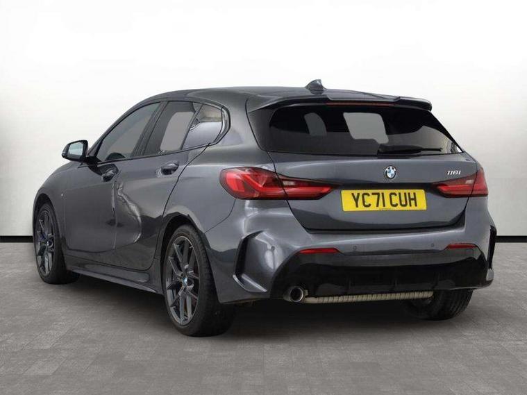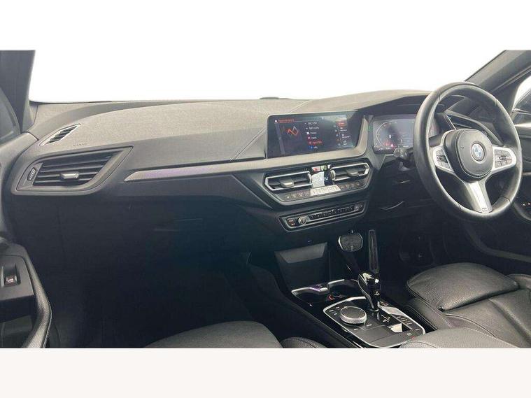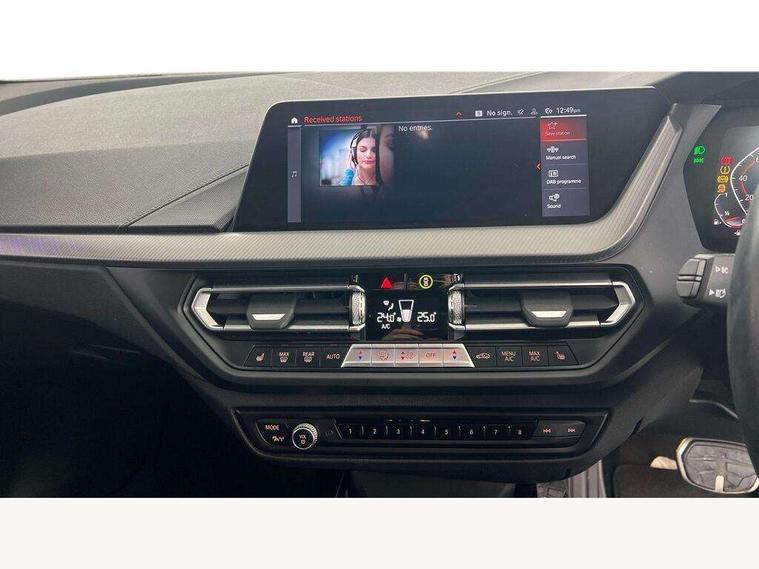 Active guard plus, Attentiveness assist, BMW Online services, BMW Teleservices, Check Control warning system for monitoring of lights and door/luggage compartment open warning, Connected eDrive Services, Eco pro mode, Integrated owners handbook, Oil sensor for level and grade, On board computer, Optimum shift indicator, Personal Profile, Pull away assistant, Speed limiter, Aluminium lightweight construction, Anti roll bar front and rear, Balancer shaft, Double VANOS, Drive Performance Control, Electronic differential lock, High precision injection, M sport suspension, Petrol Particulate Filter, VALVETRONIC engine management, Bluetooth audio streaming, DAB Digital radio, Auto dimming rear view mirror, Automatic headlight beam throw control, Automatic windscreen wipers and automatic headlight, Body colour door handles, Body colour mirror caps, Chrome 'M' logo side designation, Chrome exhaust tailpipe in single, round (Exhaust tailpipe, stainless steel - single, round), Chrome kidney grille frame with Satin Aluminium struts, Direction indicator side lights in exterior mirrors, Electric folding and anti dazzle exterior mirrors, Fading support, Follow me home headlights, Front and rear bumper system with replaceable deformation elements, Front and rear electric windows with open and close fingertip control, anti trap facility and comfort closing, Front door sill finishers in black plastic with M designation in metallic look, Green tinted heat protection glazing, Heated, electrically adjustable exterior mirror aspheric on driver side, convex on passenger side, High gloss shadowline window frame, Recess cover mirror frames and B/C pillar embelisher trim, High level third brake light, LED daytime running lights, LED eyebrow turn indicators, LED front fog lights, Lightweight engineering, Matt black air guide grilles, Model designation on right side of tailgate, Nearside reverse light in rear light cluster, Preparation for high beam assistant, Rain sensor including auto headlights activation, Rear fog lights, Rear window wiper, Shark fin antenna, Visible VIN plate, Welcome lighting, 12V power socket in centre console, 3 rear seat head restraints, 3 spoke M sports design leather steering wheel finished in nappa leather with specific M badge, Anthracite headlining, Anthracite Velour floor mats, Child seat ISOFIX attachment for two outer rear seats and front passenger seat with anchorage points, Conditioned based service, Dakota leather upholstery with perforation and contrast stitching, Driver and front passenger seat heating, Folding rear clothes hook, Four grab handles integrated in roof lining, Front and rear door pockets, Front and rear door pockets with bottle holders, Front and rear side armrest integrated into door trim, Front armrest foldable with integrated storage compartment, Front sports seats with electric side bolster adjustment, Glove compartment, Height adjustable front head restraints, Manual adjust steering wheel, Multi-function controls for steering wheel, Storage compartment in centre console, Sun visors with vanity mirrors and insert tab, Two zone automatic air conditioning, Additional interior lighting pack - 1 Series, Connected pack professional - 1 Series, Extended storage pack - 1 Series, Interior lights pack - 1 Series, Luggage compartment pack - 1 Series, M Sport exterior styling aerodynamics pack - 1 Series, 2 tone horn, 3 point seatbelts on all seats, front pyrotechnic belt tensioners, stopper and belt force limiters, rear coded belt buckles, Airbags - front driver/passenger, front & rear curtain, front side, Anti lock braking system (ABS) with brake assist, BMW emergency call, Brake drying, Braking readiness, Crash sensor activating central locking release, hazard warning lights, fuel cut off, interior lighting + activation of safety battery terminal clamp, Driver and front passenger seat belt security check, Dynamic stability control + (DSC+), Dynamic Traction Control - DTC, Electrically operated hand brake, Front and rear disc brakes, Front passenger manual airbag deactivation, Seatbelt warning, Side impact protection, Tyre pressure monitoring system, Warning triangle and first aid kit, Automatic drive away locking facility, Central locking switch for all doors, fuel filler cap and luggage compartment, Deadlocking function system to all doors, Locking wheel bolts, Remote control with integrated key with High-gloss Black inlay and M designation and 1 button for open/ close lock, window, open luggage compartment, Start/stop button with comfort go keyless engine start and auto start stop deactivation button, Thatcham Cat.1 alarm and immobiliser, Contrast stitching on instrument panel, Reduced rolling resistance tyres,
