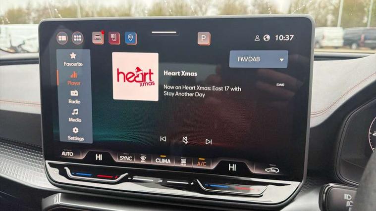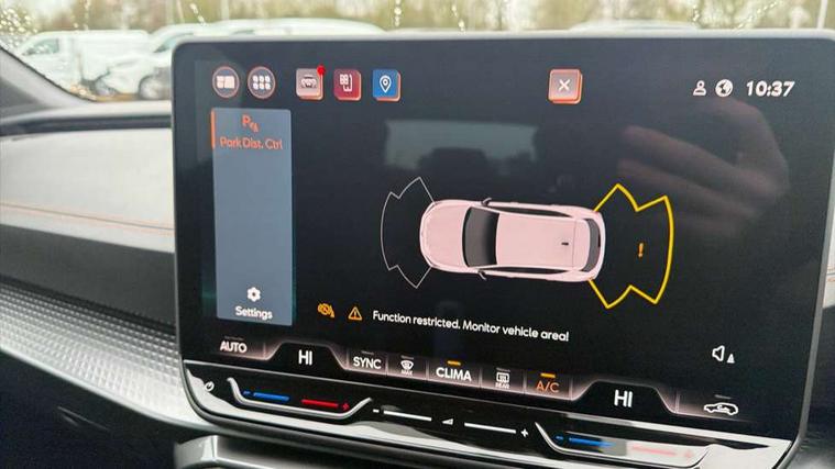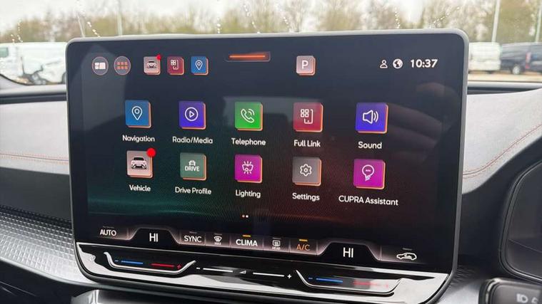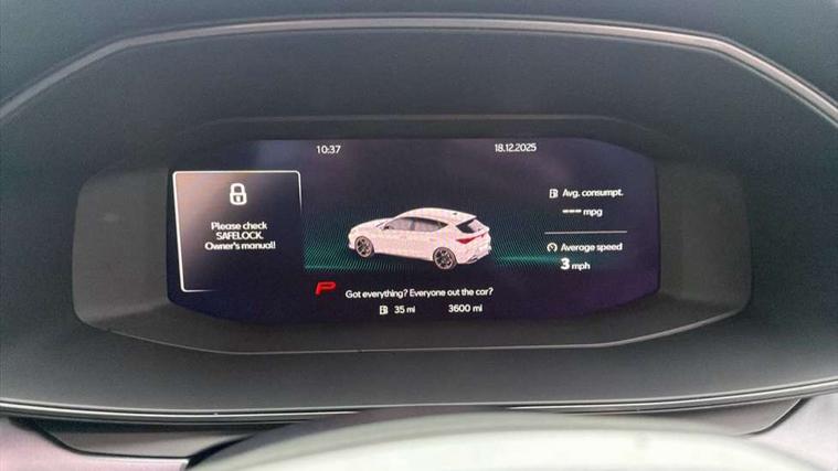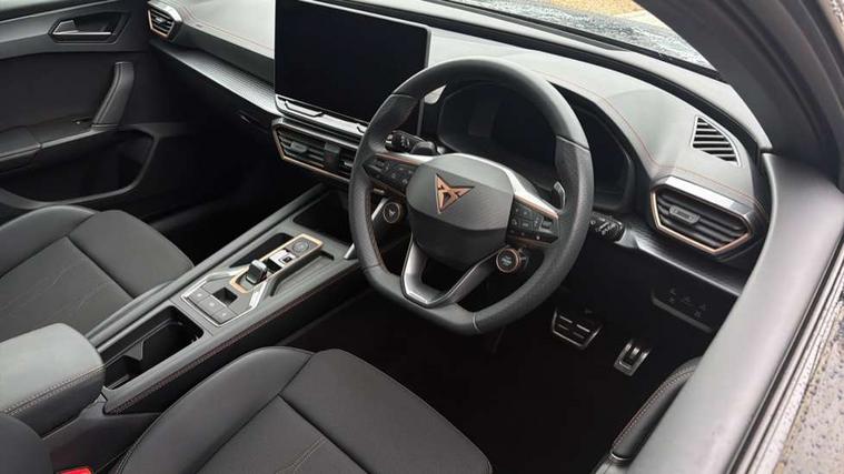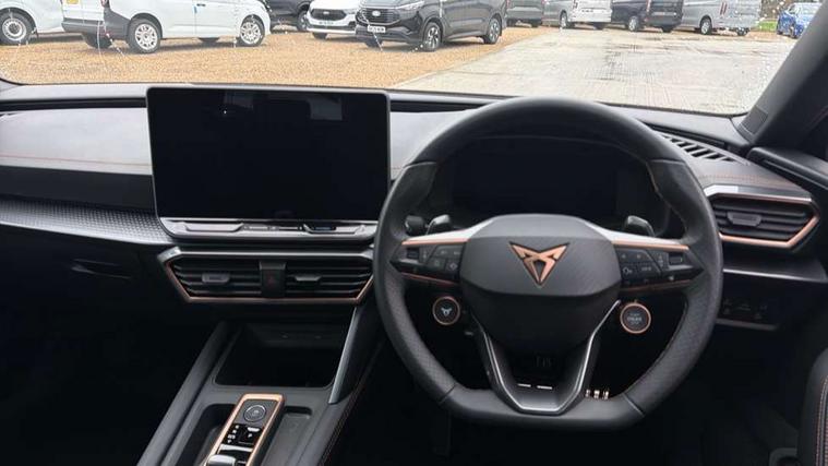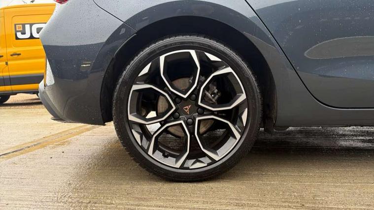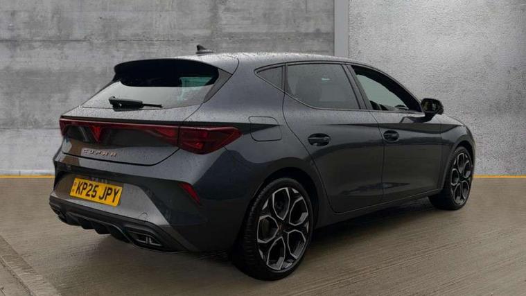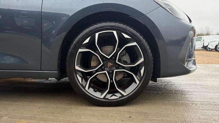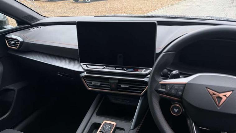 Adaptive cruise control with follow-to-stop and speed limiter, CUPRA drive profile selection with (Comfort/Sport/Individual), throttle response and gearshift mode, Digital cockpit, Dynamic road sign display, E-call, Four x USB Type C ports (2 in front and 2 in rear), Front and rear parking sensors, Front assist with forward collision warning braking reaction to vehicles, pedestrians and cyclists, Full link smartphone integration with Mirror Link, wireless Apple CarPlay and wired Google Android Auto, Lane assist, Lockable tailgate, PAS, RPM, trip computer, outside temp gauge, instrument light brightness, low fuel warning light, lights on reminder, gearshift indicator, Service interval indicator, Start/stop system with regenerative braking, Wireless phone charger, 7 speakers, Auxiliary input socket, Auto dimming rear view mirror, Body colour door handles, Body coloured bumpers, Cupra sports bumpers, Dark tinted rear windows, Electric front/rear windows, Electrically adjustable, heated and folding door mirrors, High beam assist, LED front fog lamps with cornering function, LED headlights with dynamic turn signals, tail lights, rear fog lights with rear coast to coast lighting, LED rear fog lamp, Rain sensing wipers, Rear side wing doors, Rear wash/wipe, Separate daytime running light with automatic headlight control and coming home feature, Third brake light, Welcome light with logo projector in door mirrors, 12v power supply in centre console, 3 seat bench in 2nd row, 5 headrests, 60/40 split rear bench seat with armrest, Ambient lighting with glovebox, footwell and single monocolour, Black headlining, Cloth/PVC upholstery, Cupra sports pedals, CUPRA Supersports, heated steering wheel with satellite buttons, Driver and passenger seat with manual height and lumbar adjustment, Folding boot cover, Front and rear reading lights X 4, Front centre armrest, Height/reach adjust steering wheel, Illuminated interior front door sills, ISOFIX points in outer rear seats with top tether anchorage points, Single front passenger seat, Storage pockets on rear of front seats, Sunvisors with illuminated mirror, Three zone climate control, Media system plus with 12.9" display + navigation pack - Leon Cupra, 3 point seatbelts on all rear seats, ABS, Brake control system - ESC and brake booster, Child proof door locks, Cupra black brake calipers, Driver and front passenger airbags with front passenger airbag de-activation, front side and curtain airbags, Electronic parking brake, Hill hold control, Rear disc brakes, Seat belt reminder for front and rear seats, Tiredness recognition system, Tyre pressure monitoring system, Anti theft alarm system with interior monitoring in cab, backup horn and towing protection, Central locking system Keyless Go, Locking wheel bolts, Chrome and copper interior detailing, 18" Windstorm machined sport black matt and silver alloy wheel with 92Y XL tyres, Tool kit,