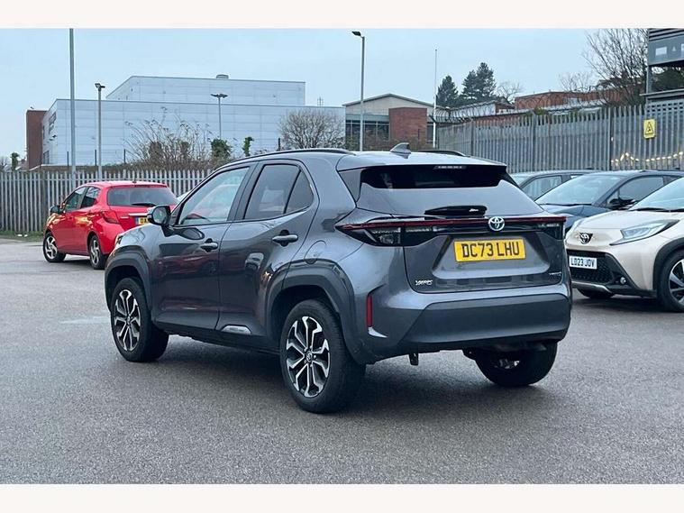 7" Multi information display screen, 8" Toyota touch 2 multimedia system with Smartphone integration with Apple CarPlay and Android auto, Adjustable speed limiter, Bluetooth connectivity, Driver attention alert system, eCall emergency system, Electric power steering, Full range intelligent adaptive cruise control, Hybrid system indicator, Key reminder warning, Lane trace assist, Multimedia, audio, telephone and voice recognition switches on steering wheel, My T Connected services, Pre-collision system enhanced with emergency steering assist, Reversing camera, Road sign assist - RSA, Steering assisted vehicle stability control, 6 speakers, DAB Digital radio, USB connection, 3rd brake light, Acoustic windscreen glass, Aluminium roof rails, Anti-jam protection on power windows, Auto high beam [AHB] with on/off switch, Automatic headlights, Black lower front grille, Black Shark-fin antenna, Black upper front grille, Black wheel arch mouldings, Body colour door handles, Body colour front bumper, Body colour rear bumper, Electric adjustable heated door mirrors, Follow me home headlights, Front and rear electric windows with auto up/down function, Front intermittent wipers, Headlight cut off reminder, Indicators integrated on door mirrors, Intermittent rear wiper, LED daytime running lights guide, LED front fog lights, LED front light guide, LED Indicators, LED projector headlights, LED rear light guide, Manual headlight levelling, Manually retractable door mirrors, Noise reduction layer on windscreen, Privacy glass, Rain sensor, Rear LED lights with sequential indicators, Rear side wing doors, Rear spoiler, Rear window defogger, 12v power outlet - front, 2x Rear coat hooks, 3 seat bench in 2nd row, 3 spoke leather steering wheel, 40:20:40 split folding rear bench seat, Adjustable speed limiter switch on steering wheel, Auto air conditioning, Black roof lining, Boot light, Central armrest, Centre console in light blue ambent lighting, Driver and front passenger personal lights, Fabric door trim, Fabric upholstery, Footwell in light blue ambient lighting, Front console box, Front cup holders, Front head restraints, Glovebox, Height adjustable driver's seat, Height adjustable front passenger seat, Hooks for luggage holding belts, ISOFIX child restraint system, Lane departure alert switch on steering control, Leather gearshift, Light blue ambient lighting on front doors, Manual telescopic and tilting steering wheel, Mirror on driver and passenger sun visor, Pollen air filter, Rear cup holders, Rear head restraints, Single front passenger seat, Soft tonneau cover, 3x3 point rear seat belts, ABS+EBD+Brake assist, Driver and passenger central airbags, Driver and passenger front airbags, Driver and passenger side airbags, Electronic parking brake, Emergency brake light system (EBS), Front seat belt reminder, Hill start assist control (HAC), Passenger airbag on/off switch, Pre-collision system with pedestrian and cyclist detection, Rear door child safety locks, Rear passenger side airbags, Rear seat belt reminder, Traction control, Tyre pressure warning system, Immobiliser, Intrusion alarm, Keyless smart entry with push button start, Power door locks, Power passenger window lock, Remote door lock, Tyre repair kit,