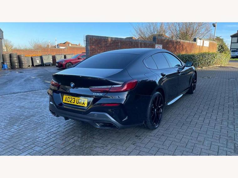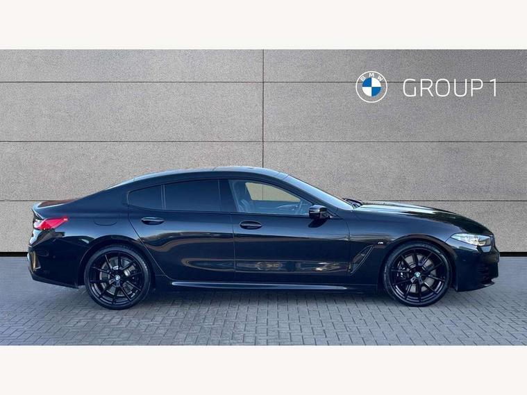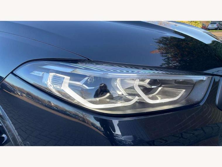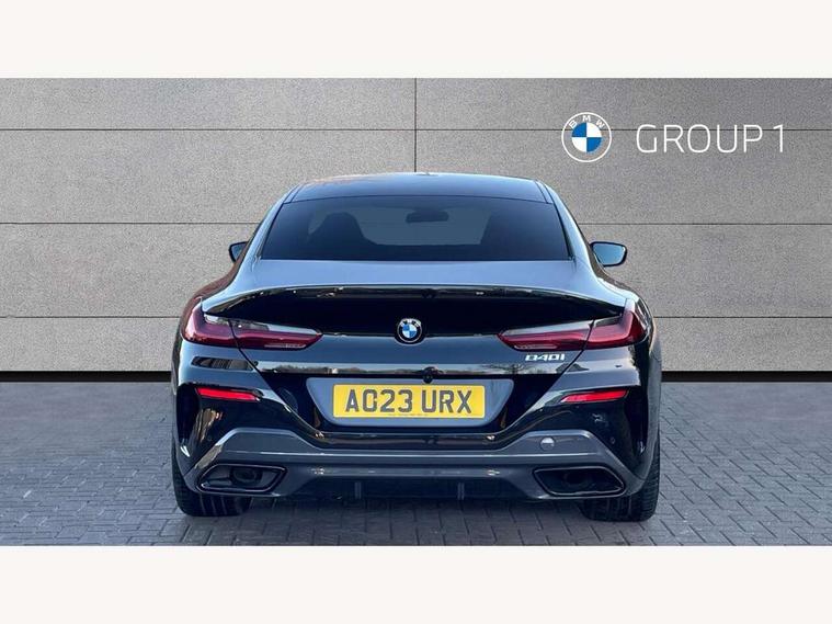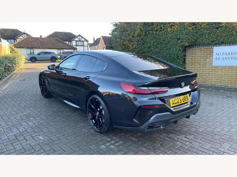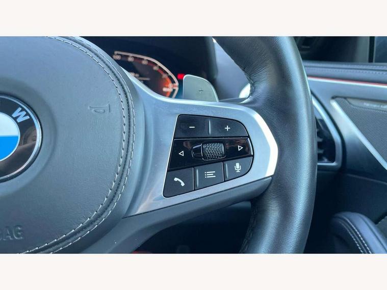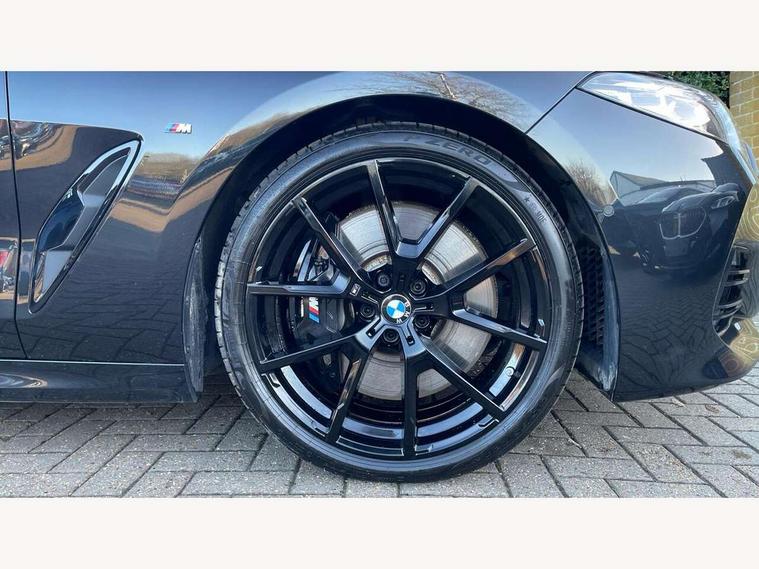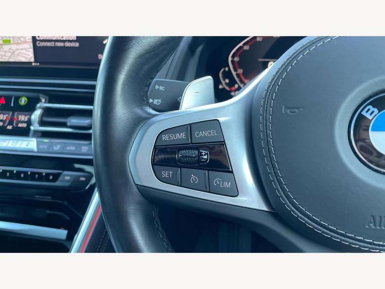 Automatic tailgate operation, remote opening with key, closing by tailgate button or remote control including tailgate in LED technology, Bluetooth hands free facility with USB audio interface, voice control and enhanced bluetooth + Wireless charging, BMW ConnectedDrive online services, BMW legal emergency call, BMW Teleservices, Brake pad wear indicator, Check control system, Condition based service, Drive experience control with Sport, Comfort, Eco Pro and Adaptive modes, Electric bootlid, Head up Display, iDrive controller with shortcut buttons, Instrument and upper door panel in walknappa leather, Integrated owners handbook, Light on warning, Oil sensor for level and grade, On board computer, Outside temperature display, Run flat indicator, Service interval indicator, Servotronic system, Speed limiter, Wi-Fi hotspot, Adaptive M suspension, Double wishbone front axle, Dynamic Damper Control, Eight speed sport automatic transmission, M Sport differential, Petrol Particulate Filter, Sport exhaust system, DAB Digital radio, Favourite buttons, Air breather inlay in pearl chrome, frame in black high gloss, Automatic windscreen wipers and automatic headlight, Carbon core, Climate comfort windscreen, Daytime driving lights front and rear active, Dynamic brake lights, Exterior mirrors - Floating design mirror, electric adjust/heated/folding, aspherical, Follow me home headlight function, Frameless interior mirror, Front and rear bumper system with replaceable deformation elements, Front electric windows, Front ornamental grille with kidney grille bars, Heat protection, sun protection glazing, Heated rear window, glass, Heated windscreen washer jets, High beam assistant, Illuminated door handles, Illuminated radiator grille iconic glow, LED rear lights, M emblem on front side panel in light chrome, Model logo on right tailgate, Radiator grille frame in pearl chrome, Radiator grille struts in aluminium matt, Rain sensor and automatic driving lights control, Rear boot, Rear side wing doors, sDrive designation on left tailgate, Sun protection glass, Thermally insulated windscreen, Third LED technology brake light in rear window, Welcome lights in interior and door handle area, Window frame and mirror base in black high gloss, 2 cup holders in front, 2 rear head restraints, 2 X front 12v power sockets, 3 spoke M sport leather multifunction steering wheel with shift paddle, 4 zone control automatic air conditioning, 5 seats, 50/50 split folding rear seat, Ambient light with dynamic interior light, BMW ID, Front and rear seat heating, Front centre armrest with light, 12V socket and USB and storage compartment, Front door pockets, Front entry lights doors, Front reading lights, Front sun visors with ticket holder and illuminated mirror, Interior lighting - Interior light front centre above interior mirror, luggage compartment light, automatic interior light system soft on/soft off, Lashing eyelets, Lockable glove compartment with light, Microfilter and active carbon filter, Steering column with adjustable height and length and activation via control on the steering column, Through loading function, BMW Live cockpit professional pack - 8 Series, Connected professional pack - 8 Series, Exterior items pack - 8 Series, M sport exterior styling aerodynamics pack - 8 Series, 18" M Sport braking system with blue painted brake calipers, 3x3 point rear seatbelts, ABS/EBD, Active protection, Airbags - Driver and front passenger airbag with seat occupancy detection, knee, side and front passenger seat airbag deactivation, Brake discs, compound structure, Child locks on rear doors, Cornering brake control (CBC), Crash sensor activating central locking release, hazard warning lights, fuel cut off, interior lighting, safety battery terminal clamp and airbags, DSC - Dynamic Stability Control, Dynamic brake control, Dynamic Traction Control - DTC, Electromechanical parking brake with automatic drive away release and auto hold function, Front three point with pyrotechnical belt latch tensioner seat belts, belt force limiter and belt stopper, Head airbags for 1st and 2nd seat row, Hill start assist, Integrated brake system, ISOFIX child seat mounting for the two outer rear seats, Rear three point with pyrotechnical belt latch tensioner seat belts and belt force limiter, Side impact protection, Tyre pressure monitoring system (TPMS), Warning triangle and first aid kit, Alarm system (Thatcham 1) with electronic engine immobiliser, Centre lock switch, Closing system with central locking, Comfort access system, Keyless entry with start/stop button, Locking wheel bolts, Vehicle key with exclusive M designation,