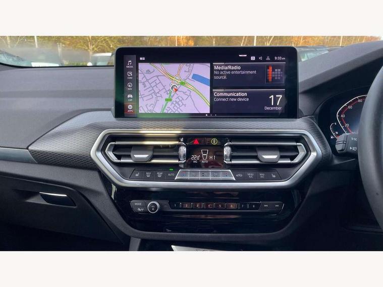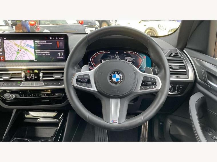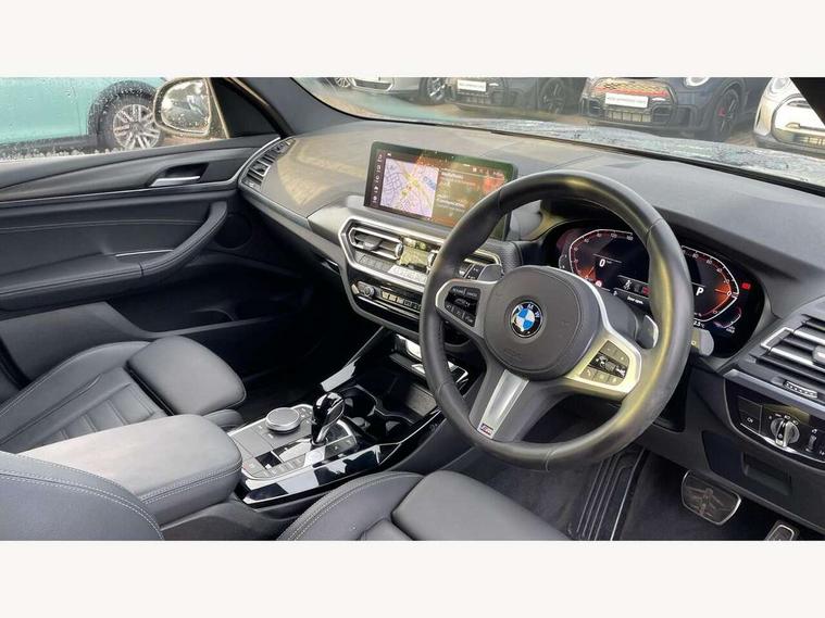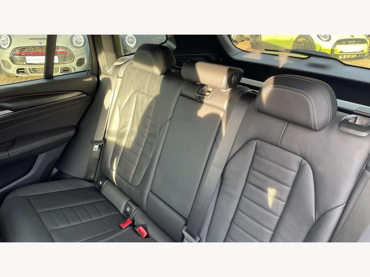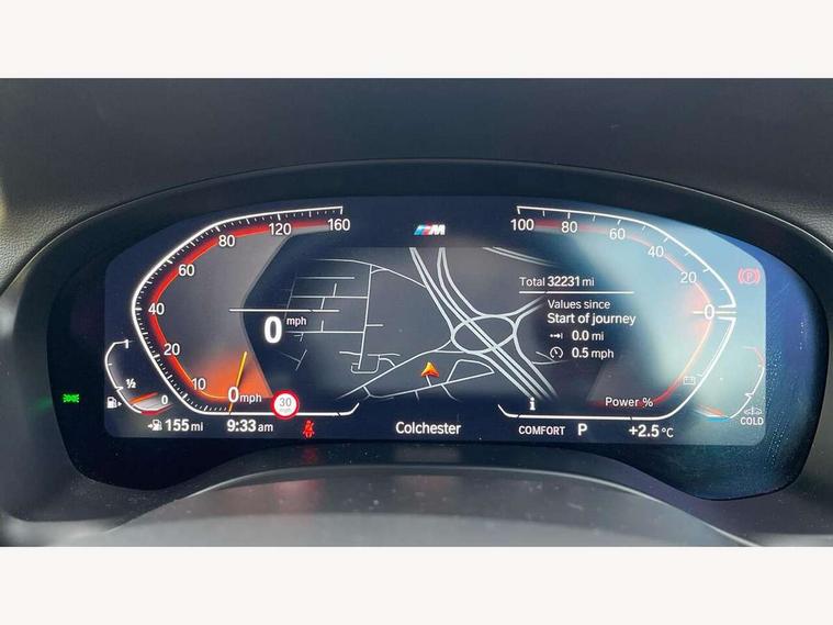 Active Guard, Attentiveness assist, BMW Live Cockpit Professional nav system including 12.3" instrument display + 12.3 high resolution control display, BMW Online services, BMW Teleservices, Brake pad wear indicator in front and rear, Check Control warning system for monitoring of lights and door/luggage compartment open warning, Condition based service - BMW service history, electronic service booklet, integrated owner's handbook, Connected drive services, Cruise control with brake function + speed limiter, Electric boot lid, Front/rear Parking distance control, iDrive touch controller with 8 favourite buttons, Instrument cluster with speedometer with mph readout, tachometer, fuel gauge and oil temperature gauge, Lights on warning by audio warning signal when ignition is switched off, Oil sensor for level and grade, warning by check control system, On board computer - average speed+fuel consumption, service interval, clock/date, odometer/trip meter, outside temperature display and ice warning, Optimum shift indicator, Personal Profile - automatic lock when driving away selectable, Run flat indicator, Stop/start system, Variable sports power steering with drive performance control Sport+ mode, Automatic transmission with gearshift paddles, Incorrect fuelling protection, M sport suspension, Multi-link rear suspension, BMW professional radio/CD/MP3, DAB tuner, Acoustic glazing, Automatic windscreen wipers and automatic headlight, Black finish on B pillars, Body colour door handles, Body colour electric adjust heated aspherical door mirrors, Body colour roof mouldings, Body coloured bumpers, Direction indicator, side repeaters, integrated in exterior mirrors, Dynamic brake lights, Exhaust tailpipes - dual, round, split left and right with chrome finisher, Fingertip control / anti-trap function on electric window, Folding wing mirrors with auto dimming, Follow me home headlights, Front and rear bumper system with replaceable deformation elements, Front and rear electric windows, Gloss chrome tailpipes finishers, Green tinted heat insulating glass, Heated windscreen washer jets, High beam assistant, High gloss black shadow line roof rails, High gloss shadowline exterior trim in decorative moulding side frame/recess cover/guide rail/B, C pillars/mirror frame and triangle with mirror base, High level 3rd brake light incorporating LED Technology, Interior rear view electrochromatic mirror with automatic anti dazzle function, LED tail lights, Lightweight engineering, M aerodynamic bodystyling, M Sport entry door sill strips, Model designation, Rain sensor, Rear side wing doors, Rear wing door, Rear wiper, Shark fin antenna, Side exterior M designation badges, Visible VIN plate, Welcome lighting, Windscreen wipers with adjustable interval, 12V power point in luggage area, 12V power socket in front centre console, 2 x USB Type C ports for charging and data transmission (front centre console) and 2 x USB Type C ports for charging (rear centre console), 3 rear headrests, 3 seat bench in 2nd row, 3 zone automatic air conditioning, 4 lashing points to secure luggage, 40:20:40 split folding rear seat with loading system, Ambient lighting, Anthracite headlining, Automatic interior light when door is opened/ignition switched off or via remote key, Floor mats in velour, Foldable storage floor with compartment, Four grab handles integrated in roof lining, Front and rear bottle holders integrated into door trim storage compartments, Front and rear side armrests integrated into door trim, Front centre armrest with storage compartment, Front footwell lights, Front head restraints, Front passenger seat, Front sports seats, Front/rear courtesy lights with soft on/off dimming, Front/rear reading lights, Heated front seats, Isofix rear child seat preparation, Leather gear knob, Lockable glove compartment, Luggage area underfloor compartment, Luggage compartment lighting, M sport leather steering wheel, Multifunction steering wheel, Parcel shelf removeable and storable under boot floor, Reach and rake adjustable steering column, Rear centre armrest with 2 cupholders, Removable / retractable luggage cover, Slope adjustable rear seats, Storage compartment in rear centre console and front/rear door trims, Sun visors with vanity mirrors and ticket pocket, Toolkit located in luggage compartment, Two front cupholders with removable oddments tray/lid, Connected pro pack - X3, Driving assistant pack - X3, ADB - Automatic Differential Brake, Anti-lock braking system (ABS) with brake assist, Automatic Stability Control (ASC), Battery safety cut-off, BMW emergency call, Brake drying, Brake energy regeneration, Braking pre-tensioning, Child locks on rear doors, Cornering brake control (CBC), Crash Sensor - activation of central locking release, hazard warning light and interior lighting, Deactivation of fuel pump in the event of a crash, Driver and front passenger front and side airbags with passenger deactivation and ITS front and rear head airbags, Driver and front passenger knee airbag, DSC+, Dynamic brake control, Dynamic Traction Control - DTC, Electromechanical parking brake, Hill descent control, Hill start assist, Seatbelt security check for front seats, Side impact protection, Three point seatbelts to all seats with front and outer rear pyrotechnic belt tensioners and seat belt force limiters, Two tone horn, Tyre pressure sensor, Ventilated front and rear disc brakes, Warning triangle and first aid kit, Central locking switch for all doors, fuel filler cap and luggage compartment, Electronic engine immobiliser, Locking wheel nuts, Remote control including two integrated key - one button for open/close all lockable content, windows and separate button for open luggage compartment, Remote control Thatcham category 1 alarm, Start/stop button with Comfort Go keyless engine start and auto Start/stop deactivation button, Low rolling resistance tyres,