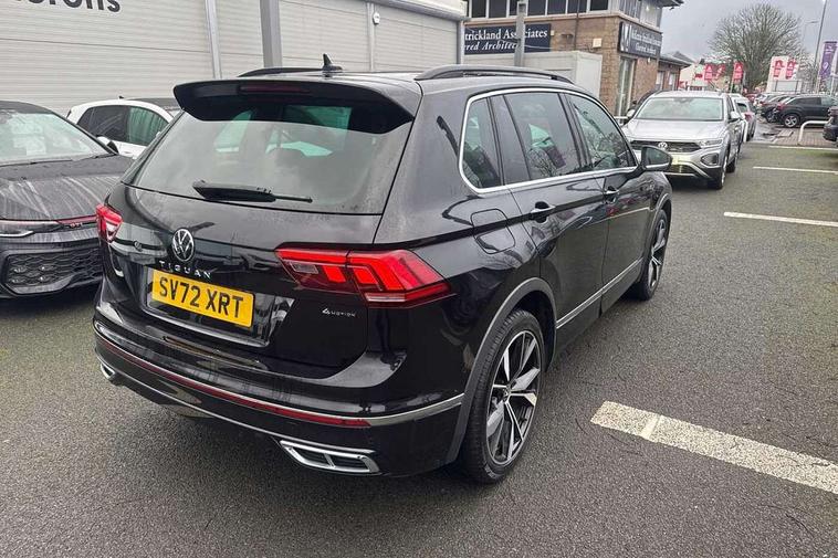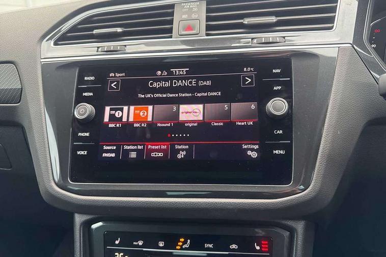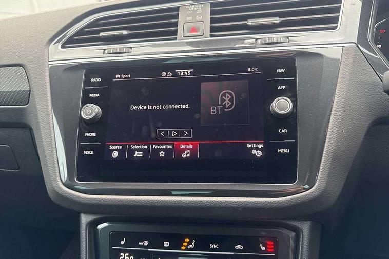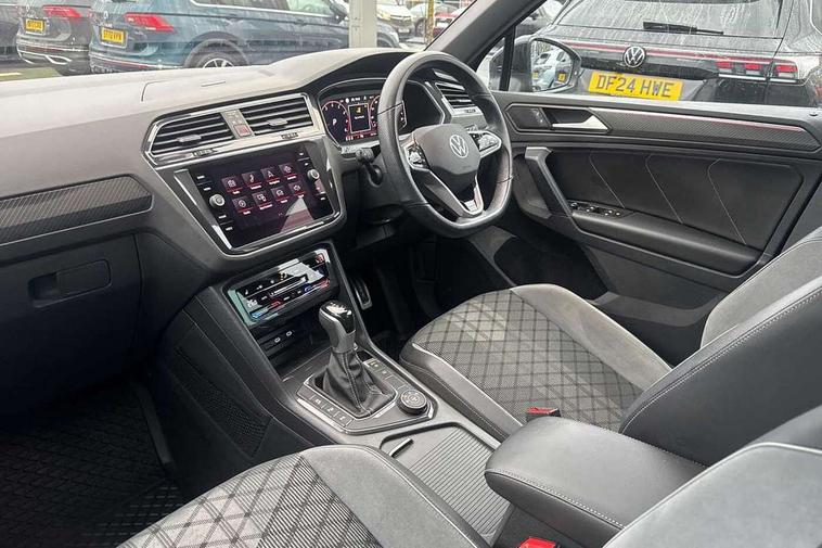 Adaptive cruise control ACC stop and go including speed limiter, App-Connect incl. App-Connect Wireless for Apple CarPlay and Android Auto, Bluetooth phone integration system, Distance control assist, Driver alert system, Driver profile selection, Dynamic road sign display, eCall emergency call system, Electromechanical speed sensitive power steering, Engine start/stop button, Lane keeping system Lane Assist, Lights on warning, Multifunction front facing camera, Outside temperature display, Premium multifunction display with multi colour display, Remote control boot opening, Rev counter, Revision / skills operating concept travel assistant, Service interval indicator, Speed limit display, Start/stop system with regenerative braking, Trip computer, Warning sound and light for doors and tailgate open, All wheel drive - 4Motion, Battery regeneration during braking, XDS electronic differential lock for improved traction and handling, 4 X 20 watt output, 8 Speakers, Diversity antenna for FM reception, Radio, SD card slot, Simultaneous pairing of 2 compatible mobile devices, SMS functionality - read, compose and send SMS messages using touch-screen display, Title and cover art display, USB C ports, Auto dimming interior rear view mirror, Automatic headlight control system, Body colour door handles, Chrome moldings on the side windows, Coming/leaving home lighting function, Dynamic headlight range control, Front and rear electric windows, Heated rear window, High level 3rd brake light, Laminated safety glass windshield, heat and sound insulating, LED headlamps with LED separate daytime running light and dynamic cornering light, LED rear combination lamps, LED rear number plate lights, License plate carrier in front and rear, Poor weather light and cornering light, R Line body kit, R Line side sills, Rain sensor windscreen wipers, Rear exhaust tailpipe, Rear fog lamp, Rear side wing doors, Rear spoiler in R style, Rear windscreen washer and wiper with interval delay, Side and rear windows in heat insulating glass, Trailer Stability Programme, Unique R Line badging, Windscreen wipers/ intermittent wipe + 4 position delay, 12V outlet in center console rear and in luggage compartment, 12V outlet in front and tray, 2 cup holders in front, 2 LED front reading lights, 2 LED rear reading lights, 3 bench rear seats in 2nd row, 3 rear headrests, 4 load lashing points, 40:20:40 split folding rear seats, Air Care Climatronic 3 zone automatic climate control with enhanced air filter and controls in the rear, Backrest release for left front seat, Black headlining, Brushed stainless steel pedals and footrest, Carpet mats in front and rear with decorative stitching in Gray, Climate control unit rear with touch function, Door and side trim panel in foam film, insert in leatherette, Front centre armrest, Front footwell illumination, Front seats head restraints (x-adjustment), Height adjustable front seats, Height/reach adjust steering wheel, Instrument lighting white adjustable panel illumination, Interior light with delay, Isofix Preparation 2 Rear child seats, Leather gear knob, Lockable cooled glovebox, Luggage compartment lighting, Luggage net, Rear bench seat asymetrically split folding, longitudinally movable and folding with load-through hatch and center armrest, Remote unlocking for rear seat backrest, Removable luggage cover, Removable rear headrests, Safety optimised front head restraints, Single front passenger seat, Sliding/reclining rear seats, Standard rear seat release, Storage compartment in driver's door, Storage compartment in passenger's door, Storage compartment in rear doors, Storage compartments in luggage area left and right, Storage tray on dashboard, Sun visors with illuminated vanity mirrors, Top front comfort seats, Variable boot floor, height adjustable and removable, Driver assistance pack plus - Tiguan DSG, 3 point seat belt for centre rear seats, 3 point seat belts with seat belt pretensioners for the outer rear seats, Active bonnet, Curtain airbags for front and rear passengers, Driver/Front Passenger airbags, Drivers knee airbag, Electronic parking brake with auto hold, Electronic Stability Control with driver steering recommendation, ABS, ASR, EDL, EDTC and trailer stabilization, Front assist with autonomous emergency braking (for Adaptive Cruise Control ACC up to 130 mph), Front disc brakes, Front passenger airbag deactivation, Front side airbags, Height adjustable front 3 point seatbelts + pretensioners, Hill hold control, Manual child proof rear door locks, Pedestrian monitoring system, Power assisted brakes, Proactive passenger protection system in combination with front assist, Rear disc brakes, Rigid safety cell with front and rear crumple zones, Two tone horn, Warning sound and light for front seat belts if unfastened, Anti theft alarm system with interior monitoring, backup horn and towing protection, Anti theft wheel bolts, Electronic engine immobiliser, Tool kit,
