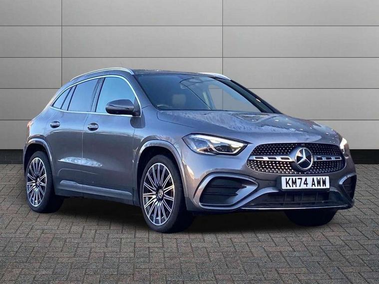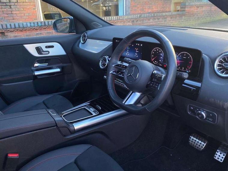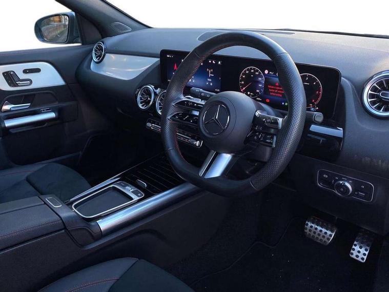 10.25 inch touchscreen central media display, 10.25" Digital instrument cluster display screen, Attention assist, Direct steering, DYNAMIC SELECT with a choice of driving modes (ECO, Comfort, Sport and Individual), Easy-pack tailgate, ECO start/stop function, Fingerprint scanner, Fluid level warning indicator for fuel, oil, coolant and washer fluid, Full color head up display, Hard-disk navigation, Hey Mercedes Voice activation, Lamp failure indicator, Lane keeping assist (LKA), Mercedes me connect including emergency call system, accident recovery, breakdown and maintenance management, Mercedes me remote services, Multi function trip computer, Outside temperature gauge, Owners manual and service booklet in English, Pre-installation of private car share, Radio aerial integrated into front and rear windshields, Service indicator (ASSYST), Smartphone integration with Apple CarPlay and Android auto, Traffic sign assist, Wireless charging, Lowered comfort suspension, Rear axle multi-link, Suspension with adaptive damping system, Bluetooth connectivity including audio streaming, DAB Digital radio, MBUX multimedia system, Mercedes-Benz (225w) sound system with 10 speakers, Adaptive brake lights, Adaptive full LED rear lights with automatic adjustment of light intensity to the surroundings, Aluminium roof rails, AMG front apron with front splitter in the colour of the vehicle with chrome trim element, AMG rear apron with visible tailpipe trim and chrome trim element, AMG specific/dual flow exhaust pipes in chrome (non-functional), Automatic headlamp activation, Beltline trim and window line trim strip in high gloss black, Black grained side sill trim with chrome inlay, Body coloured door handles with chrome insert for keyless entry, Car wash function, Cornering light function with activated high beam, Dark privacy glass from B-pillar backwards, Electric front windows, Electric rear windows, Electrically adjustable and heated door mirrors with integrated LED indicators, Exhaust system with 2 Visible tailpipe trim elements and rear apron with trim in chrome, Heat insulating dark tinted glass, Heated glass rear windscreen + timer control, Illuminated door sill panels with Mercedes-Benz lettering, Interior mirror with black reading lamps and frameless, LED daytime running lights, LED third brake light, Multibeam LED headlamps with adaptive highbeam assist plus, Panoramic sunroof, Rain sensor windscreen wipers, Rear fog lights, Rear side wing doors, Rear wiper, Wheel arch liners in the colour of the vehicle, 3 seat bench in 2nd row, 3 spoke flat bottom multifunction nappa leather steering wheel, 40:20:40 split folding rear seat backrests, Adjustable head restraints, Air conditioning - air vents with silver chrome surround, Air conditioning - Two zone thermotronic luxury automatic climate control with display, AMG floor mats, Auto Mercedes-Benz child seat recognition sensor, Black roof lining, Courtesy light in boot, Electrically adjustable front memory seats with four way lumbar support, Fluorescent jacket, Front centre armrest with stowage, Galvanished gear shift paddles on steering wheel in silver chrome, Heated front seats, Illuminated glovebox, Interior lighting - 64 colour Ambient lighting, Luggage net on driver/front passenger seat backrest, Manually height and reach adjustable steering column, Single front passenger seat, Sports pedals in brushed stainless steel with black rubber studs, Sports seats, Sports steering wheel, Stowage compartment in centre console, Stowage compartment with retractable cover, Sunvisors with illuminated vanity mirrors, Twin front cup holders, Two outer rear seat isofix and top tether child seat fixing points, Comfort seat pack - GLA Class, Driving assistance package - GLA, Interior lighting with light and sight pack - GLA, Keyless go comfort package - GLA, Mirror pack - GLA Class, Night package - GLA, Off road engineering pack - GLA, Parking package with 360-degree camera - GLA, USB package plus - GLA, 3 rear 3 point seatbelts, ABS with Brake Assist, Active bonnet pedestrain safety measure which detects an impact and raises bonnet by 65mm, Active brake assist includes forward collision warning system with autonomous braking, Adaptive brake assist with hold function and hill start assist, Black seatbelts, Bonnet with power domes, Brake pad wear warning indicator, Braking system with larger brake discs on the front axle, Childproof locks manually operated for rear doors and electrically operated for rear power windows, Crash responsive emergency lighting, Driver and passenger head and side airbags, Drivers knee airbag, Dual stage driver/passenger airbags, Electronic parking brake, ESP curve dynamic assist, ESP with ASR, Exit warning, Front and rear seatbelt reminder, Front brake callipers with Mercedes Benz logo lettering on front, Front brake discs internally ventilated and perforated, Front passenger seat occupancy sensor, Sports braking system, Tyre pressure monitoring system, Warning triangle and first aid kit, Window airbags, Alarm system with immobiliser and interior protection -Thatcham category 1, Guard 360 degree vehicle protection, Keyless Go starting function, Remote central locking and crash sensor with emergency opening function, Light longitudinal grain aluminium trim, 20" AMG multi spoke light alloy wheels aerodynamically optimised and painted in black with a high-sheen rim flangle RVT, Summer tyres, Tirefit tyre sealant kit,