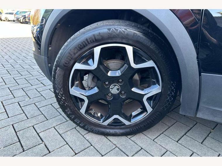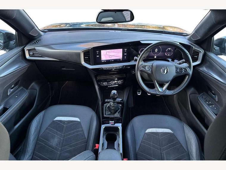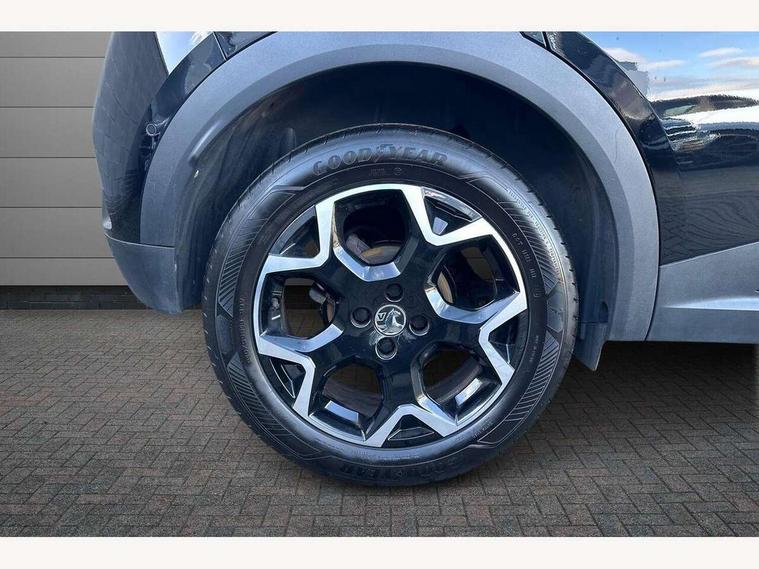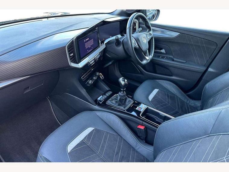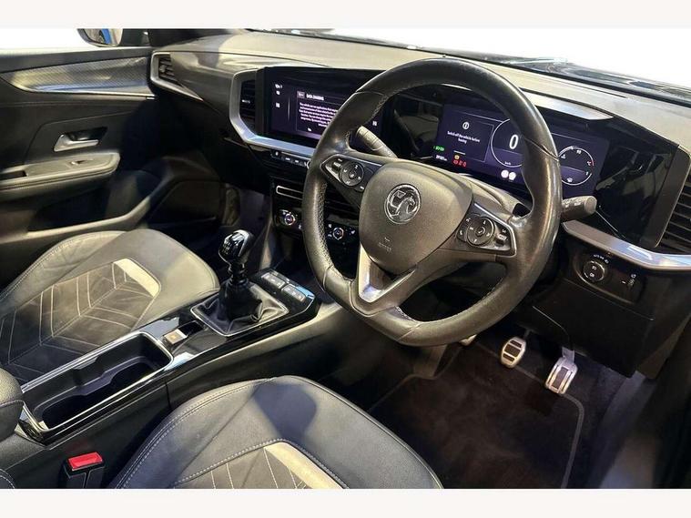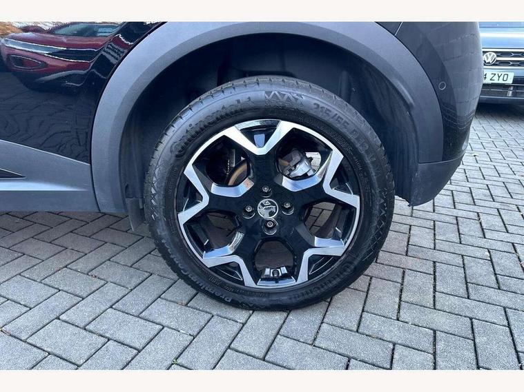 12" digital instrument cluster, Adaptive cruise control with speed limiter, Advanced Park Assist, Digital instrumentation with digital speedometer, rev counter, fuel and water temperature gauge, Driver drowsiness alert system, Driver information display with multi function trip computer, audio info, digital clock and outside air temperature with ice warning function, Engine start/stop button, EV information display, Front and rear parking distance sensors, Front camera and radar system, Gearshift up/down indication light, Lane keep assist system (LAS) with Lane departure warning system (LDWS), Lights on audible warning, Panoramic rear view camera, Power assisted speed sensitive steering, RDS with traffic programme, Side blind spot alert and flank guard, Smartphone integration compatible with Apple CarPlay and Android Auto, Speed sign recognition, Sports switch with engine sound enhancement, Start/stop system, Traffic sign recognition, Vauxhall connect with e-Call, Wireless charging for smartphone, 6 speed manual transmission, 6 speakers, AM/FM stereo radio with 36 station presets, DAB Digital radio, Flexible Roof Mounted Radio Aerial, Front USB connection, Mobile phone portal - bluetooth connect, vehicle microphone, handsfree calls, SMS read out and reply, phone book access, Multimedia Navi Pro with 10" colour touchscreen, Steering wheel mounted controls, Two rear USB sockets, Adaptive brake lights, Automatic headlamp levelling, Automatic lighting control with tunnel detection, Automatically dimming anti dazzle rear view mirror, Black door mirror housings, Black front and rear bumper inserts, Black Griffin logo and vizor frame, Black roof, Black upper window moulding, Body colour door handles, Body colour front and rear bumpers, Dark tinted rear side windows + tailgate window, Electric adjustable/heated/folding door mirrors + puddle lights, Electrically operated front and rear windows with safety auto reverse and one touch up/down facility, Hazard warning lights, Heated rear window+rear wash/wipe, High beam assist with anti glare, Integrated black tailgate spoiler, IntelliLux Matrix LED headlights with adaptive forward lighting, LED 3rd brake light, LED daytime running lights, LED front fog lamps, LED side repeat indicators, LED tail lights, Rear foglight, Rear side wing doors, Reversing light, Solar heat absorbing windscreen and windows, Two speed rain-sensitive windscreen wipers with variable intermittent wipe, Windscreen and side window demist vents, 12V Accessory socket, 3 seat bench in 2nd row, 3 spoke flat bottomed leather steering wheel with satin chrome bezel, 4 speed fan with illuminated controls, 6 way manual adjustable driver fore/aft, up/down with reclining seatback, 6 way manual adjustable front passenger fore/aft, up/down with reclining seatback, 60/40 split folding rear seat, Air recirculation system, Alcantara/leather upholstery, Alloy sports pedals, Black headliner, Cabin particulate filter - removes dust, airborne particles and pollen, Centre console with two cup holders at front and one in rear, Chrome effect interior door handles, Door pockets with two litre capacity, Driver and passenger sun visors with vanity mirror, Driver seat lumbar support and massage function, Electronic climate control (ECC), Four adjustable facia vents, Four load restraint lashing eyes, Front centre armrest with storage, Front head restraints, Front map reading lights, Front seat back storage pockets, Fully carpeted load area, Heated front seats, Heated steering wheel, Interior courtesy light, Interior tailgate handle, Luggage compartment cover, Luggage compartment lighting, Movable boot floor, Reach + rake adjustable steering column, Single front passenger seat, Three height adjustable rear seat head restraints, Twin gas assisted tailgate struts, Black Pack with badge - Mokka, 2x Isofix child seat fitting on outer rear seats, 3x3 point rear seat belts, Anti-lock braking system (ABS), Child proof locks on rear doors, Cornering brake control, Deactivation switch for front passenger front and side impact airbags, Drag torque control, Driver and front passenger airbags, front seat side impact airbags, full size curtain airbags, Electronic brake force distribution, Electronic Stability Programme (ESP), Emergency brake assist, Enhanced automatic emergency braking with pedestrian detection, Forward collision alert at all speed, Hill start assist, Inertia reel lap and diagonal seatbelts for all seats, Seatbelt unfastened audible warning and warning light, Straight line stability control, Traction control, Tyre pressure monitoring system, Electronically protected audio equipment, Engine deadlock immobiliser, Freewheeling door locks, Key left in ignition audible warning, Keyless entry and start, Locking wheel nuts, Remote control central locking, Remote control ultrasonic security alarm system, Visible vehicle identification number, Atlantis black trim inserts of front doors, Black facia with silver trim insert, Instrument panel bar in polar silver, 18" bi colour alloy wheels,