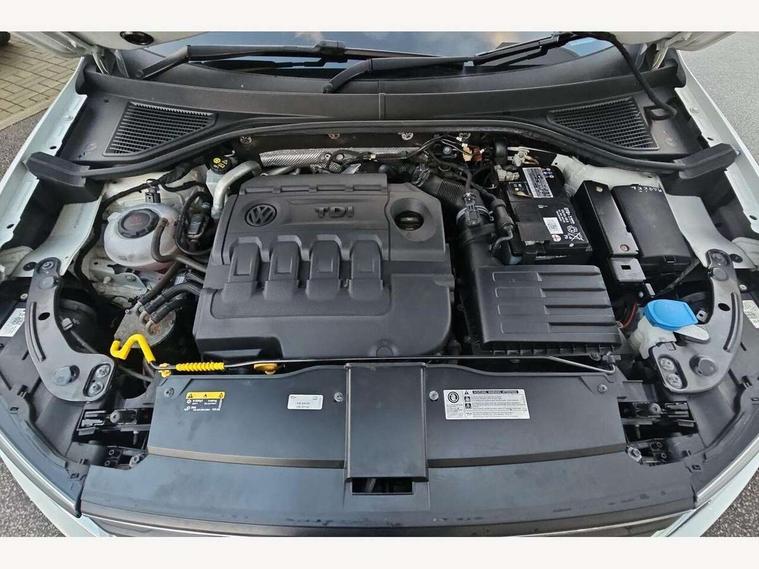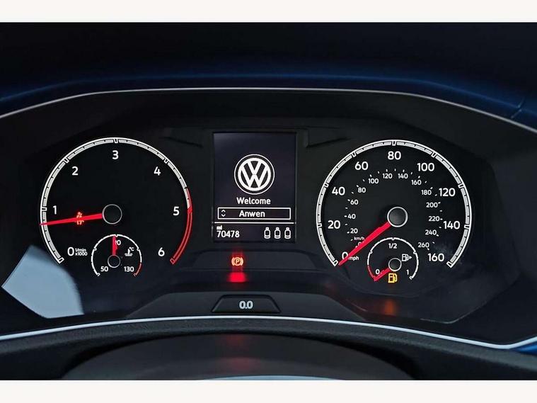 2 USB connection charging sockets, Adaptive cruise control, App-Connect, Automatic start/stop system, Bluetooth telephone and audio connection for compatible devices, Car information display, Driver alert system with audible and visual fatigue detection system, Front assist, radar sensor controlled distance monitor, city emergency braking + predictive pedestrian protection, Lane assist, Multifunction computer with visual gear change recommendation for fuel consumption, Power assisted speed sensitive steering, Service interval indicator, Think blue trainer driver tips and journey analysis, Warning sound and light for doors and tailgate open, Warning sound and light for front seatbelts unfastened, Battery regeneration during braking, Misfuel prevention device for diesel engine, Bluetooth - Simultaneous pairing of 2 compatible mobile devices, DAB Digital radio, Multi device interface (MDI) with USB connection, Music playback - MP3, WMA and AAC files, Premium USB cable in choice of either Apple or Android smartphone compatibility, SD card slot, SMS functionality - read, compose and send SMS messages using touch-screen display, Title and cover art display, Auto dimming interior rear view mirror, Automatic hazard lights activation under emergency braking, Black grained lower door protectors, Black grained wheel arches, Body colour door handles, Body colour sports bumpers with silver metallic underbody fascia, Chrome effect left and right trapezoid exhaust tailpipe fascia surround, Chrome trim on upper and lower radiator grille, Door mirror integrated indicators, Dusk sensor, Electrically foldable, adjustable and heated door mirrors with puddle lights and reverse activated kerb-view adjustment on passenger's door mirror, Front and rear electric windows, Front windscreen wiper with intermittent wipe and 4 position delay, Fully galvanised body, Heated rear window, High level 3rd brake light, LED rear number plate lights, Manual coming/automatic leaving home lighting function, Rain sensor, Rear tinted glass from B-pillar backwards approx 65% tinted, Rear windscreen washer and wiper with interval delay, 12V socket in centre console storage area, 2 LED front and rear reading lights, 3 rear head restraints, 4 load lashing points in luggage compartment, Ambient lighting in front footwell and light strips below trim in front doors, Climate control - 2 zone electronic air conditioning with automatic air recirculation and allergy filter, Drawer under drivers seat, Front centre armrest with storage compartment, longitudinal and height adjustable and two rear air vents, Front cupholders x 2, Front footwell illumination, Front seat back storage pockets, Glovebox, Height adjustable front seats, Height/reach adjust steering wheel, Illuminated vanity mirrors, Instrument lighting, white adjustable panel illumination, Interior light delay, Isofix easy fit child seat preparation for 2 outer rear seats, Load through provision with single cup holder when folded down, Luggage compartment cover, removable, Luggage compartment lighting, Split folding rear seat backrests with centre armrest, Storage compartment in left and right luggage area, Storage compartment in rear doors, Storage compartments in driver and front passenger doors, 3 rear three point seatbelts, ABS, Driver and front passenger safety-optimised head restraints, Electronic parking brake with auto hold, ESC with EDL, ASR, EDTC and trailer stabilisation function, Front and rear curtain airbags, driver and front passenger airbags with passenger deactivation switch and front side impact airbags, Rigid safety cell with front and rear crumple zones, Three point height adjust front seatbelts + pretensioners, Tyre pressure loss indicator, Ventilated front and rear disc brakes, Volkswagen roadside assistance, Alarm with remote central locking and interior protection, Electronic engine immobiliser, Remote central locking with 2 remote folding keys, Space and weight saver spare wheel,