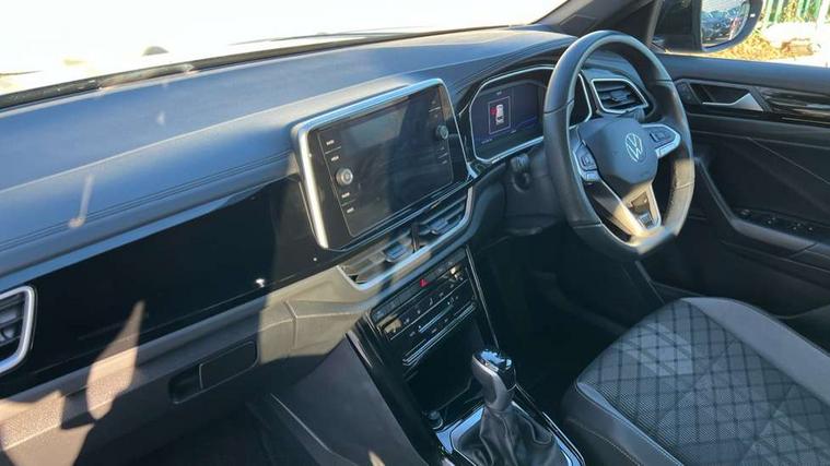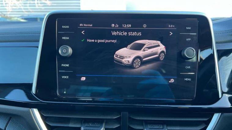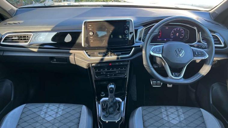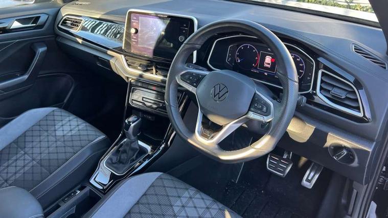 10.25" Digital cockpit pro, Advanced driver attention and drowsiness monitor, Dynamic road sign display, Emergency call service, Lane keeping system Lane Assist, Mobile phone interface, Modified key software - reduce switch off time for key status change to Long no motion, Online services, Park assist including front and rear parking sensors, Service interval indicator, Tailgate/trunk lid release from outside, Think blue trainer driver tips and journey analysis, Warning sound and light for front seatbelts unfastened, Wireless app connect, Battery regeneration during braking, Start/stop function with battery regeneration, DAB Digital radio, Diversity antenna for FM reception, Front and rear 6 speakers, Music playback - MP3, WMA and AAC files, Premium USB cable in choice of either Apple or Android smartphone compatibility, SD card slot, Simultaneous pairing of 2 compatible mobile devices, Title and cover art display, We Connect and We Connect Plus functionality, Auto dimming interior rear view mirror, Automatic hazard lights activation under emergency braking, Automatic headlight control with LED separate daytime running lights with coming/leaving home function, Body coloured exterior mirror housings and door handles, Electrically adjustable and heated door mirrors, Extended roof spoiler, Exterior mirrors aspherical on driver side, convex on front passenger side, External USB type C socket and charging sockets, Front windscreen wiper with intermittent wipe and 4 position delay, Heated rear window, LED 3rd brake light, LED rear combination lamps, LED rear number plate lights, Power windows with comfort operation and circuit breaker, Privacy glass for rear side windows and rear window, R-Line design body coloured bumpers, Rain sensor, Rear exhaust tailpipe, Rear fog light on one side and reversing lights on both sides, Rear side wing doors, Rear wash/wipe with intermittent wipe setting, Remote electrically foldable door mirrors, puddle lights and reverse activated passenger's door mirror, 12V power socket in centre console, 3 rear head restraints, 3 seat bench in 2nd row, 4 load lashing points in luggage compartment, Air care climatronic air conditoning system with active combination filter and 2-zone temperature control, Black roof lining, Chrome plated decorative trims, Chrome plated radiator grille inserts, air vent surrounds and light switch surrounds, Door and side trim panel with leatherette insert, Front + rear carpet mats, Front centre armrest, Front cupholders x 2, Front footwell illumination, Front reading light, Front scuff plates with R Line logo, Front seat back storage pockets, Glove compartment door with light, Instrument lighting, white adjustable panel illumination, Interior ambient lighting and surround lighting, Interior light delay, Isofix child seat preparation, Leather gearshift handle, Load-through provision with cup holder when folded down ('Unsplit rear seat bench, split folding backrest, with centre armrest), Luggage compartment lighting, Single front passenger seat, Stainless steel pedals, Storage compartment in left and right luggage area, Storage compartment in rear doors, Storage compartments in driver and front passenger doors, Sunvisors with illuminated vanity mirrors, Variable boot floor, height adjustable and removable, Driver assistance pack without proactive passenger protection - T-Roc, 3 point height adj front seatbelts + pretensioners, 3 point seatbelts in outer rear with ECE label, ABS, Child locks on rear doors, City emergency braking and pedestrian monitoring, Driver and front passenger airbag with front passenger airbag deactivation, Driver and front passenger safety-optimised head restraints, Drivers seatbelt reminder, Electronic parking brake, Electronic Stability Control (ESC) inc EDL (Electronic Differential Lock) and ASR (Traction Control), Front and rear passengers curtain airbag system including front side airbags, Hill start assist, Predictive pedestrian protection, Rear disc brakes, Two tone horn, Tyre pressure loss indicator, Volkswagen roadside assistance, Piano black decorative inserts in dashboard and front door trim panels, Trims for alloy wheels,