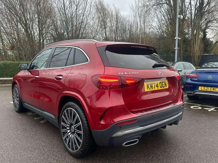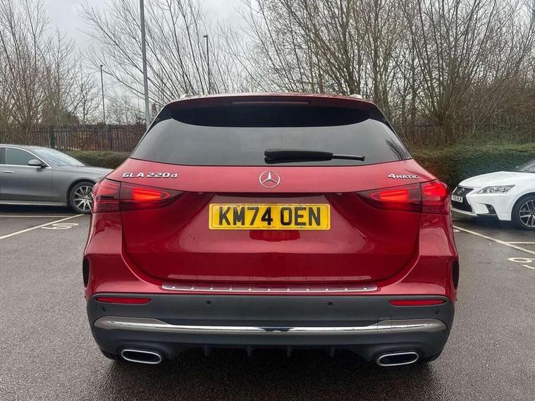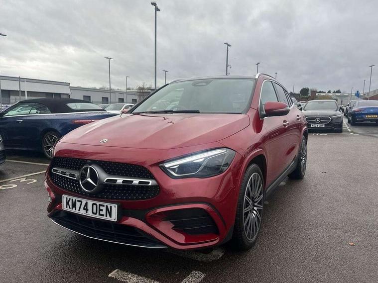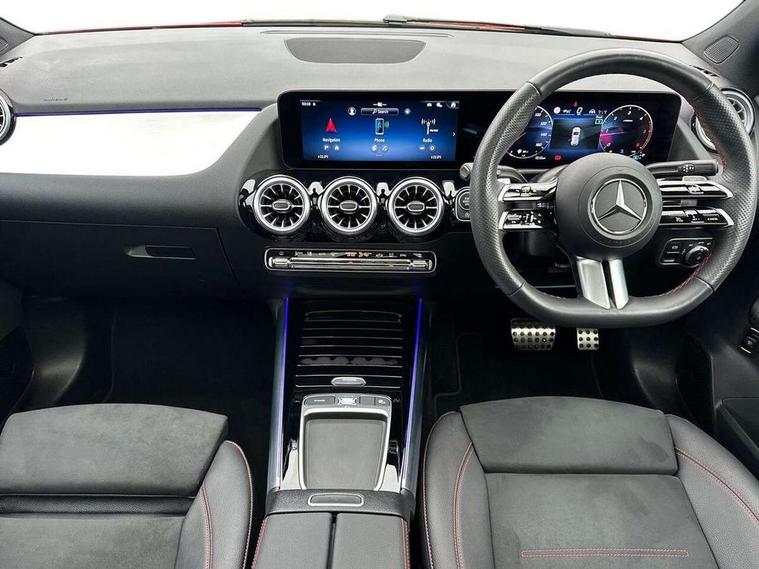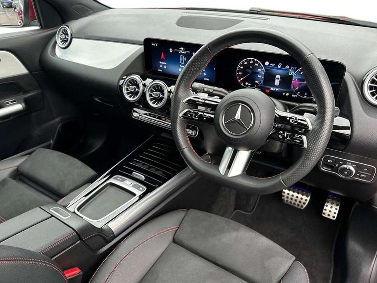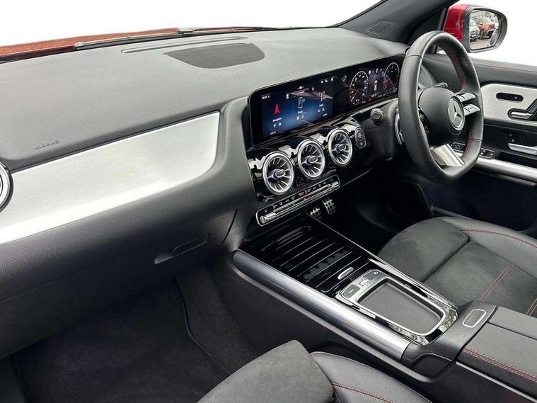 10.25 inch touchscreen central media display, 10.25" Digital instrument cluster display screen, Attention assist, Direct steering, DYNAMIC SELECT with a choice of driving modes (ECO, Comfort, Sport and Individual), Easy-pack tailgate, ECO start/stop function, Fingerprint scanner, Fluid level warning indicator for fuel, oil, coolant and washer fluid, Full color head up display, Hard-disk navigation, Hey Mercedes Voice activation, Lamp failure indicator, Lane keeping assist (LKA), Mercedes me connect including emergency call system, accident recovery, breakdown and maintenance management, Mercedes me remote services, Multi function trip computer, Outside temperature gauge, Owners manual and service booklet in English, Pre-installation of private car share, Radio aerial integrated into front and rear windshields, Service indicator (ASSYST), Smartphone integration with Apple CarPlay and Android auto, Traffic sign assist, Wireless charging, Lowered comfort suspension, Rear axle multi-link, Suspension with adaptive damping system, Bluetooth connectivity including audio streaming, DAB Digital radio, MBUX multimedia system, Mercedes-Benz (225w) sound system with 10 speakers, Adaptive brake lights, Adaptive full LED rear lights with automatic adjustment of light intensity to the surroundings, Aluminium roof rails, AMG front apron with front splitter in the colour of the vehicle with chrome trim element, AMG rear apron with visible tailpipe trim and chrome trim element, AMG specific/dual flow exhaust pipes in chrome (non-functional), Automatic headlamp activation, Beltline trim and window line trim strip in high gloss black, Black grained side sill trim with chrome inlay, Body coloured door handles with chrome insert for keyless entry, Car wash function, Cornering light function with activated high beam, Dark privacy glass from B-pillar backwards, Electric front windows, Electric rear windows, Electrically adjustable and heated door mirrors with integrated LED indicators, Exhaust system with 2 Visible tailpipe trim elements and rear apron with trim in chrome, Heat insulating dark tinted glass, Heated glass rear windscreen + timer control, Illuminated door sill panels with Mercedes-Benz lettering, Interior mirror with black reading lamps and frameless, LED daytime running lights, LED third brake light, Multibeam LED headlamps with adaptive highbeam assist plus, Panoramic sunroof, Rain sensor windscreen wipers, Rear fog lights, Rear side wing doors, Rear wiper, Wheel arch liners in the colour of the vehicle, 3 seat bench in 2nd row, 3 spoke flat bottom multifunction nappa leather steering wheel, 40:20:40 split folding rear seat backrests, Adjustable head restraints, Air conditioning - air vents with silver chrome surround, Air conditioning - Two zone thermotronic luxury automatic climate control with display, AMG floor mats, Auto Mercedes-Benz child seat recognition sensor, Black roof lining, Courtesy light in boot, Electrically adjustable front memory seats with four way lumbar support, Fluorescent jacket, Front centre armrest with stowage, Galvanished gear shift paddles on steering wheel in silver chrome, Heated front seats, Illuminated glovebox, Interior lighting - 64 colour Ambient lighting, Luggage net on driver/front passenger seat backrest, Manually height and reach adjustable steering column, Single front passenger seat, Sports pedals in brushed stainless steel with black rubber studs, Sports seats, Sports steering wheel, Stowage compartment in centre console, Stowage compartment with retractable cover, Sunvisors with illuminated vanity mirrors, Twin front cup holders, Two outer rear seat isofix and top tether child seat fixing points, Comfort seat pack - GLA Class, Driving assistance package - GLA, Interior lighting with light and sight pack - GLA, Keyless go comfort package - GLA, Mirror pack - GLA Class, Night package - GLA, Off road engineering pack - GLA, Parking package with 360-degree camera - GLA, USB package plus - GLA, 3 rear 3 point seatbelts, ABS with Brake Assist, Active bonnet pedestrain safety measure which detects an impact and raises bonnet by 65mm, Active brake assist includes forward collision warning system with autonomous braking, Adaptive brake assist with hold function and hill start assist, Black seatbelts, Bonnet with power domes, Brake pad wear warning indicator, Braking system with larger brake discs on the front axle, Childproof locks manually operated for rear doors and electrically operated for rear power windows, Crash responsive emergency lighting, Driver and passenger head and side airbags, Drivers knee airbag, Dual stage driver/passenger airbags, Electronic parking brake, ESP curve dynamic assist, ESP with ASR, Exit warning, Front and rear seatbelt reminder, Front brake callipers with Mercedes Benz logo lettering on front, Front brake discs internally ventilated and perforated, Front passenger seat occupancy sensor, Sports braking system, Tyre pressure monitoring system, Warning triangle and first aid kit, Window airbags, Alarm system with immobiliser and interior protection -Thatcham category 1, Guard 360 degree vehicle protection, Keyless Go starting function, Remote central locking and crash sensor with emergency opening function, Light longitudinal grain aluminium trim, 20" AMG multi spoke light alloy wheels aerodynamically optimised and painted in black with a high-sheen rim flangle RVT, Summer tyres, Tirefit tyre sealant kit,