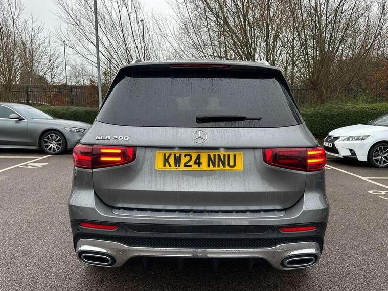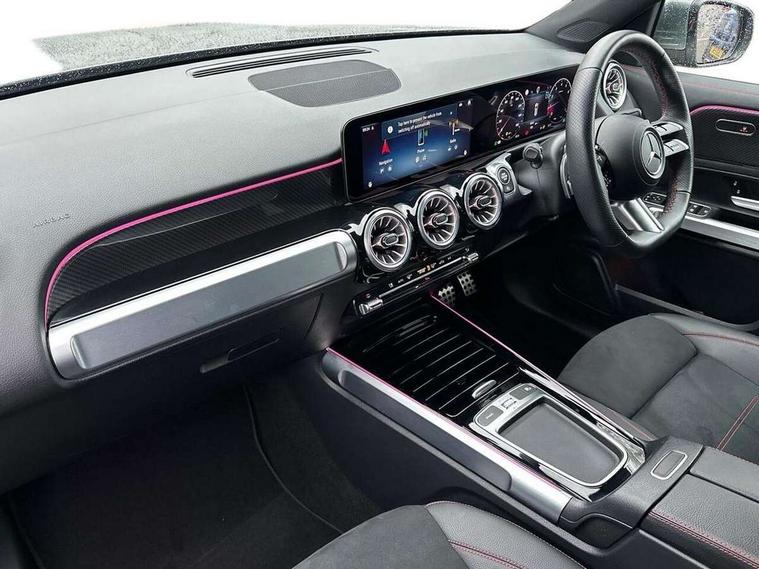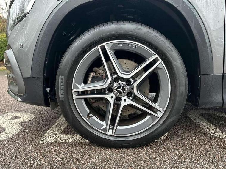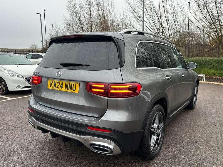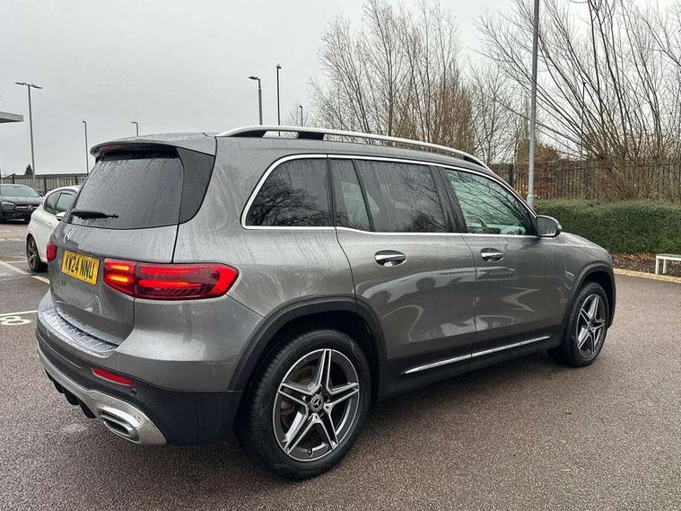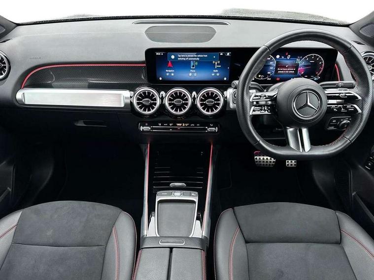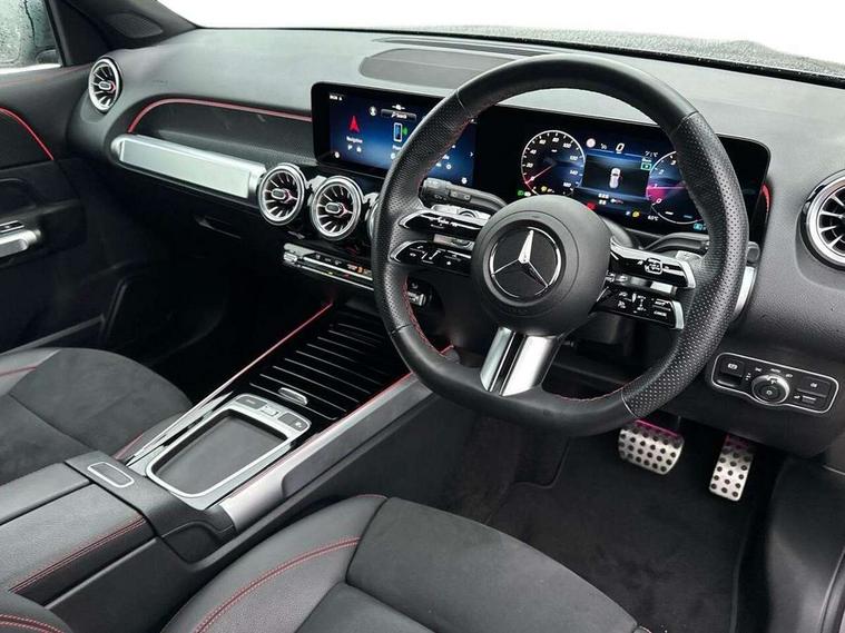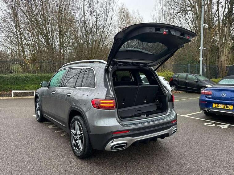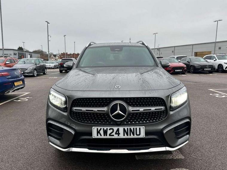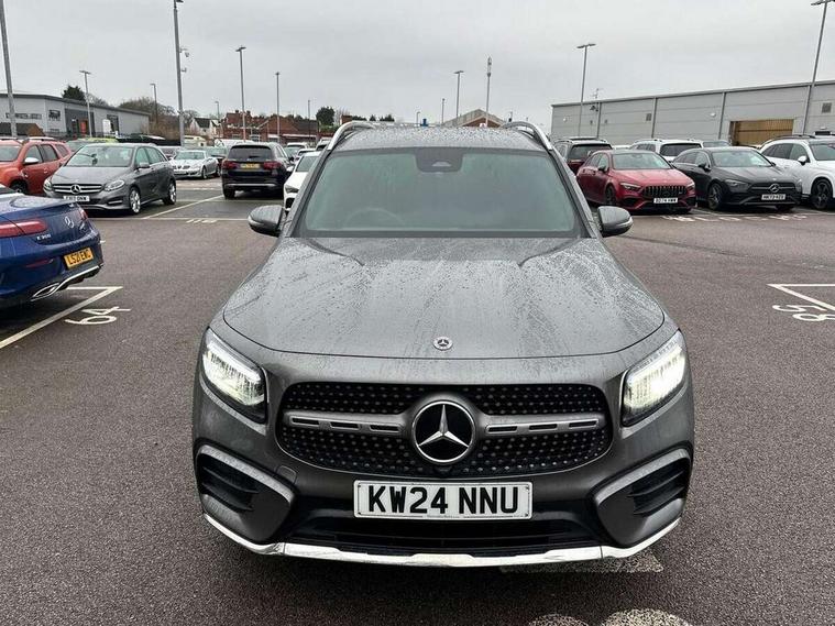10.25 inch touchscreen central media display, 10.25" Digital instrument cluster display screen, 12 ultrasonic sensors in front and rear bumpers, 180 degree reversing camera with parking guidelines, Assisted parking: reversing backwards into perpendicular and parallel parking spaces, Attention assist - Monitors steering behaviour and long journey fatigue, Bluetooth connection, Brake pad wear indicator warning light, Car wash mode, Convenience opening and closing, Direct steering, DYNAMIC SELECT with a choice of driving modes (ECO, Comfort, Sport and Individual), ECO start/stop function, Engine start/stop button, Fluid level warning indicator for fuel, oil, coolant and washer fluid, Hard disk navigation, Hey Mercedes Voice activation, Lamp failure indicator, Lane keep assist, MBUX navigation premium, Mercedes me connect including emergency call system, accident recovery, breakdown and maintenance management, Mercedes me remote services, Outside temperature gauge, Owners manual and service booklet in English, Pre-installation of private car share, Preinstallation for parking damage notification, Radio aerial integrated into front and rear windshields, Remote boot closing, Service indicator (ASSYST), Smartphone integration with Apple CarPlay and Android auto, Speed limit assist, Tailgate, Trip computer in multifunction display with current consumption indicator, Ultrasound sensors - positioned in the handle of the tailgate, Wireless charging, Comfort suspension with ride height lowering, Rear axle multi-link, 1 USB-C port in the oddments compartment (Charge + Data transfer), 2 USB-C ports for the rear on the centre armrest (Charge only), 2 USB-C ports under the front centre armrest (Charge + Data transfer), DAB digital radio tuner, MBUX multimedia system, Mercedes Benz sound system (100 W) with 6 speakers, Pre installation for Mercedes Benz Link, Adaptive brake lights, Adaptive high beam assist, AMG front apron with front splitter in the colour of the vehicle with chrome trim element, AMG rear apron with visible tailpipe trim and chrome trim element, AMG specific/dual flow exhaust pipes in chrome (non-functional), Auto dimming rear view mirror, Beltline trim and window line trim strip in high gloss aluminium, Black grained side sill trim with chrome inlay, Body coloured door handles, Electric adjustable and heated door mirrors with integrated LED side indicators, Electric folding door mirrors, Front and rear electric windows, Headlamp assist automatic headlamp activation, Heat insulating dark-tinted glass starting from B-pillar, Heated glass rear windscreen + timer control, High level LED third brake light, Interior mirror with black reading lamps and frameless, LED high performance headlamps with integrated LED daytime running lights, LED tail lamp, Polished aluminium roof rails, Radiator grille as a diamond grille with chrome pins and central Mercedes star, Rain sensor windscreen wipers, Rear fog lamp, Rear side wing doors, Rear wiper, Single louvre in matt grey with chrome inserts and black highlights, Two visible tailpipe trim elements exhaust, Ultrasonic sensors - positioned in the front and rear bumpers, Wheel arch liners in the colour of the vehicle, 12V socket in the oddments compartment, 3 seat bench in 2nd row, 3 twin spoke flattened multifunction steering wheel in nappa leather - horizontal twin spoke in high gloss black, vertical twin spoke in silver chrome, 4 way adjustable lumbar support, 40:20:40 split folding rear seats, Air vents with silver chrome surrounds, AMG floor mats, AMG sports pedals with brushed stainless steel surfaces and black rubber studs, Automatic child seat recognition sensor, Black roof lining, Door handles with chrome inserts, Fluorescent jacket, Front and rear headrests, Front centre armrest with stowage, Galvanised steering wheel gearshift paddles in silver chrome, Handle recess lighting, Heated front seats, Height adjustable head restraints, Height/reach adjustable steering column, Interior lighting - 64 colour Ambient lighting, Luggage net on driver/front passenger seat backrest, Single front passenger seat, Sports seats, Stowage compartment with retractable cover, Sun visors with illuminated vanity mirrors, THERMATIC automatic climate control, Third row of seats for two people on rear seat, Twin front cup holders, Two outer rear seat isofix and top tether child seat fixing points, Easy pack tailgate, Interior lighting with light and sight pack - GLB, Seat comfort package - GLB, 3 rear 3 point seatbelts, Active bonnet pedestrain safety measure which detects an impact and raises bonnet by 65mm, Active brake assist includes forward collision warning system with autonomous braking, Adaptive brake assist with hold function and hill start assist, Airbags - kneebag for driver, Anti-lock braking system (ABS) with brake assist, Black seatbelts, Bonnet with power domes, Childproof locks manually operated for rear doors and electrically operated for rear power windows, Crash responsive emergency lighting, Curve dynamic assist, Driver and front passenger head and sidebags, Driver and front passenger windowbags, Dual stage driver and front passenger airbags, Electric parking brake, Electronic stability programme with acceleration skid control, Front and rear seatbelt reminder, Front brake callipers with Mercedes Benz lettering, Front passenger seat occupancy sensor, Perforated front brake discs, Tyre pressure monitoring system, Warning triangle and first aid kit, Guard 360 degree vehicle protection - Anti theft alarm system, tow away protection with visual, acoustic warning and alarm, Interior monitoring system, Keyless Go Access and drive authorisation system, KEYLESS-GO starting function, Remote central locking and crash sensor with emergency opening function, Thatcham category 1 alarm system with immobiliser and interior protection, Vehicle key with KEYLESS GO functionality, Carbon structure trim, 19" AMG 5 twin spoke light alloy wheels aerodynamically optimise