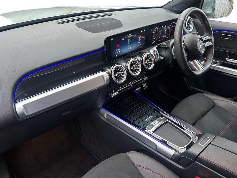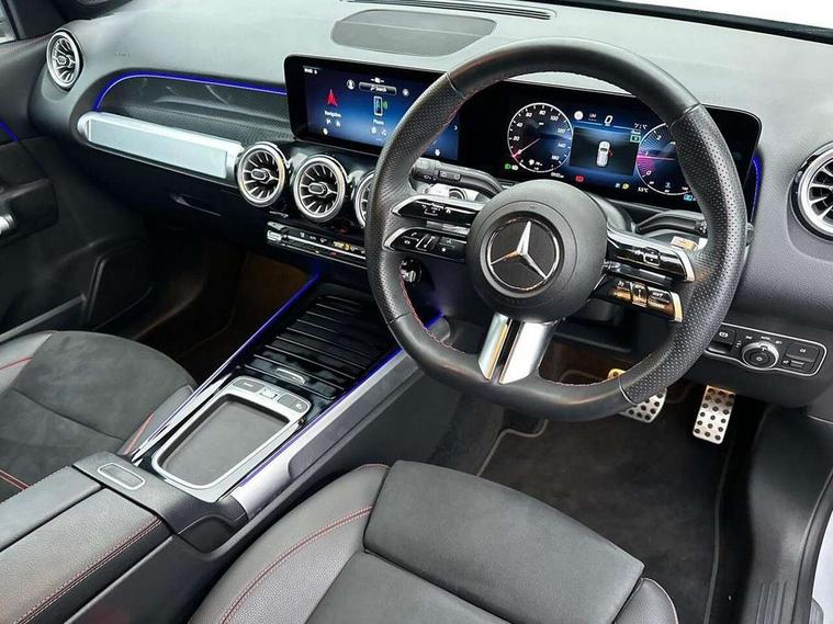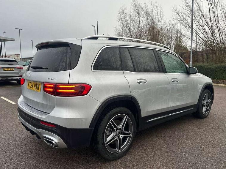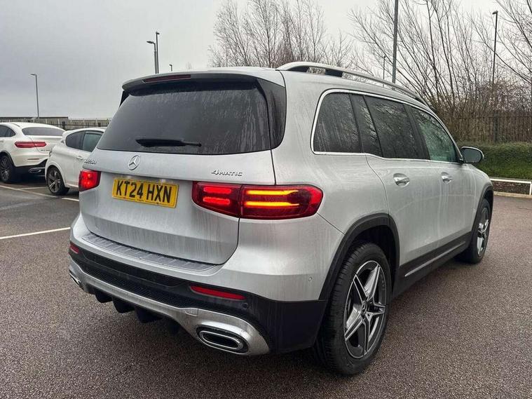 10.25 inch touchscreen central media display, 10.25" Digital instrument cluster display screen, 12 ultrasonic sensors in front and rear bumpers, 180 degree reversing camera with parking guidelines, Additional drive program "OFF-ROAD", Assisted parking: reversing backwards into perpendicular and parallel parking spaces, Attention assist - Monitors steering behaviour and long journey fatigue, Bluetooth connection, Brake pad wear indicator warning light, Car wash mode, Convenience opening and closing, Direct steering, DYNAMIC SELECT with a choice of driving modes (ECO, Comfort, Sport and Individual), ECO start/stop function, Engine start/stop button, Fluid level warning indicator for fuel, oil, coolant and washer fluid, Hard disk navigation, Hey Mercedes Voice activation, Lamp failure indicator, Lane keep assist, MBUX navigation premium, Mercedes me connect including emergency call system, accident recovery, breakdown and maintenance management, Mercedes me remote services, Outside temperature gauge, Owners manual and service booklet in English, Pre-installation of private car share, Preinstallation for parking damage notification, Radio aerial integrated into front and rear windshields, Remote boot closing, Service indicator (ASSYST), Smartphone integration with Apple CarPlay and Android auto, Speed limit assist, Tailgate, Trip computer in multifunction display with current consumption indicator, Ultrasound sensors - positioned in the handle of the tailgate, Wireless charging, Comfort suspension with ride height lowering, Rear axle multi-link, 1 USB-C port in the oddments compartment (Charge + Data transfer), 2 USB-C ports for the rear on the centre armrest (Charge only), 2 USB-C ports under the front centre armrest (Charge + Data transfer), DAB digital radio tuner, MBUX multimedia system, Mercedes Benz sound system (100 W) with 6 speakers, Pre installation for Mercedes Benz Link, Adaptive brake lights, Adaptive high beam assist, AMG front apron with front splitter in the colour of the vehicle with chrome trim element, AMG rear apron with visible tailpipe trim and chrome trim element, AMG specific/dual flow exhaust pipes in chrome (non-functional), Auto dimming rear view mirror, Beltline trim and window line trim strip in high gloss aluminium, Black grained side sill trim with chrome inlay, Body coloured door handles, Electric adjustable and heated door mirrors with integrated LED side indicators, Electric folding door mirrors, Front and rear electric windows, Headlamp assist automatic headlamp activation, Heat insulating dark-tinted glass starting from B-pillar, Heated glass rear windscreen + timer control, High level LED third brake light, Interior mirror with black reading lamps and frameless, LED high performance headlamps with integrated LED daytime running lights, LED tail lamp, Polished aluminium roof rails, Radiator grille as a diamond grille with chrome pins and central Mercedes star, Rain sensor windscreen wipers, Rear fog lamp, Rear side wing doors, Rear wiper, Single louvre in matt grey with chrome inserts and black highlights, Two visible tailpipe trim elements exhaust, Ultrasonic sensors - positioned in the front and rear bumpers, Wheel arch liners in the colour of the vehicle, 12V socket in the oddments compartment, 3 seat bench in 2nd row, 3 twin spoke flattened multifunction steering wheel in nappa leather - horizontal twin spoke in high gloss black, vertical twin spoke in silver chrome, 4 way adjustable lumbar support, 40:20:40 split folding rear seats, Air vents with silver chrome surrounds, AMG floor mats, AMG sports pedals with brushed stainless steel surfaces and black rubber studs, Automatic child seat recognition sensor, Black roof lining, Door handles with chrome inserts, Fluorescent jacket, Front and rear headrests, Front centre armrest with stowage, Galvanised steering wheel gearshift paddles in silver chrome, Handle recess lighting, Heated front seats, Height adjustable head restraints, Height/reach adjustable steering column, Interior lighting - 64 colour Ambient lighting, Luggage net on driver/front passenger seat backrest, Single front passenger seat, Sports seats, Stowage compartment with retractable cover, Sun visors with illuminated vanity mirrors, THERMATIC automatic climate control, Third row of seats for two people on rear seat, Twin front cup holders, Two outer rear seat isofix and top tether child seat fixing points, Easy pack tailgate, Interior lighting with light and sight pack - GLB, Seat comfort package - GLB, 3 rear 3 point seatbelts, Active bonnet pedestrain safety measure which detects an impact and raises bonnet by 65mm, Active brake assist includes forward collision warning system with autonomous braking, Adaptive brake assist with hold function and hill start assist, Airbags - kneebag for driver, Anti-lock braking system (ABS) with brake assist, Black seatbelts, Bonnet with power domes, Childproof locks manually operated for rear doors and electrically operated for rear power windows, Crash responsive emergency lighting, Curve dynamic assist, Downhill speed regulation (DSR), Driver and front passenger head and sidebags, Driver and front passenger windowbags, Dual stage driver and front passenger airbags, Electric parking brake, Electronic stability programme with acceleration skid control, Front and rear seatbelt reminder, Front brake callipers with Mercedes Benz lettering, Front passenger seat occupancy sensor, Perforated front brake discs, Tyre pressure monitoring system, Warning triangle and first aid kit, Guard 360 degree vehicle protection - Anti theft alarm system, tow away protection with visual, acoustic warning and alarm, Interior monitoring system, Keyless Go Access and drive authorisation system, KEYLESS-GO starting function, Remote central locking and crash sensor with emergency opening function, Thatcham category 1 alarm system with immobiliser and interior protection, Vehicle key with KEYLESS GO functionality, Carbon structure 
