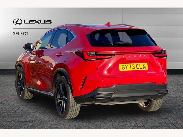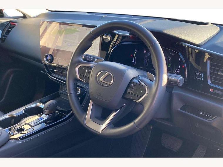 4 driving modes EV/Eco/Normal/Sport, 7" display in instrument binnacle, Blind spot monitoring with rear cross traffic alert, Bluetooth telephone connectivity, eCall emergency system, Electric speed sensitive power steering, Intelligent parking sensors - 4 front and 4 rear, Lane change flasher function, Lexus link connect - Cloud based navigation, cloud based voice assistant, always online and 9.8" VGA touchscreen, Push button starter, Reversing camera with back guidelines, Service interval indicator, Tailgate, Wireless Apple CarPlay and wired Android Auto, Wireless Smartphone charger, 6.6 kW onboard charger, All Wheel Drive (AWD), Hybrid automatic transmission, Vehicle Dynamics Integrated Management (VDIM), Vehicle Stability Control (VSC), 10 speakers, 4 USB ports - 2 front, one USB C, 2 rear USB C, DAB Digital radio, Auto dimming interior rear view mirror, Automatic headlights, Bi LED headlights, Double hidden exhaust pipes, Front and rear one touch power windows, with anti-jam protection, Heated, auto-folding, auto-dimming outside mirrors with reverse tilt function and turn indicators, Illuminated door handles with puddle light, LED brake lights and rear lights with emergency brake signal, LED cornering lights, LED daytime running lights, LED front fog lights, LED Indicators, Power back door with kick sensor, Privacy glass, rear doors and tailgate, Rain sensor windscreen wipers, Rear side wing doors, Rear wiper, Roof rails, 12V accessory port centre console and luggage compartment, 2 cupholders in front centre console, 2 way electrical lumbar adjustment for driver, 2 x fixed shopping bag hooks in boot, 2 x sun visors with vanity mirror and lamp, 3 seat bench in 2nd row, 4 x tie down hooks in the boot, 60/40 split folding rear seat, 8 way driver/passenger electrically adjustable front seats, Adjustable rear seat backrest, Card holder installed in driver and passengers sun visors, Centre armrest with storage box, Dual climate control air conditioning system, Front and rear head restraints, Front and rear textile carpet mats, Front passenger seat, Heated front seats, Heated steering wheel, Leather gear lever, LED interior illumination, Power adjustable leather steering wheel with paddle shifts, Premium Tahara leather upholstery, Rear centre armrest with 2 cupholders, Whiplash Injury Lessening (WIL) feature (active headrest) for seats, 2 x Isofix child rear seat restraints, 3 point ELR front seatbelts with pretensioners, 3x3 point rear seat belts, ABS, Adjustable seat belt anchor points, Driver and front passenger 2 stage airbag, Driver/front passenger side airbags, Drivers knee airbag, E-Latch with safe exit assist, EBD + Brake Assist, ECB (Electronically Controlled Brake System), Electronic parking brake, Front and rear curtain shield airbags, Front center airbag, Front passenger seat cushion airbag, Hill assist control, Lexus safety system - dynamic radar cruise control, pre collision system day and night, lane tracing assist, road sign, automatic high beam, OTA, Manual rear child locks, Passenger airbag cut-off device, Traction control, Tyre pressure warning, Anti-theft system with alarm, intrusion sensor, glass breakage sensor, tilt sensor and engine immobiliser, Locking wheel nuts, Smart keyless entry, Speed sensitive auto door locking, Two motion door lock with double lock, Ultra Wide Band (UWB) Anti-theft system, VIN Window etching, 3D prism black Inlay, Organic inlay, Tyre repair kit,