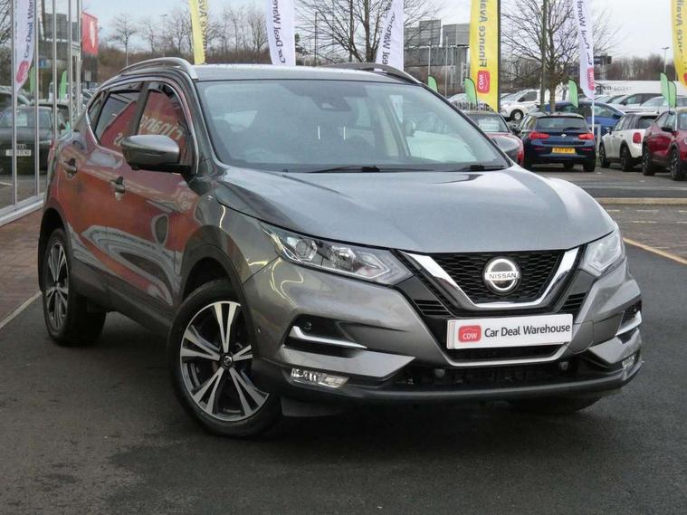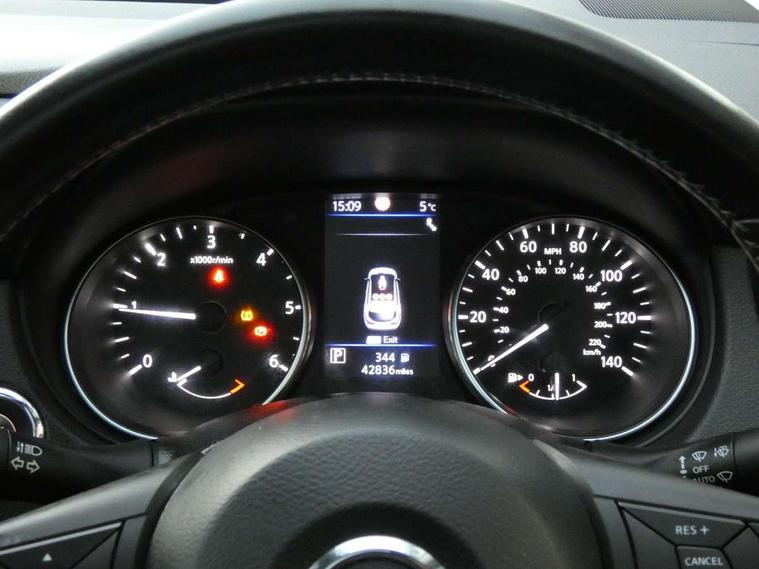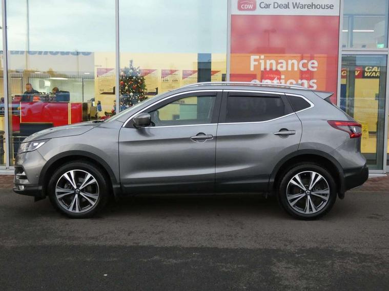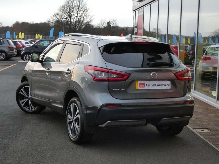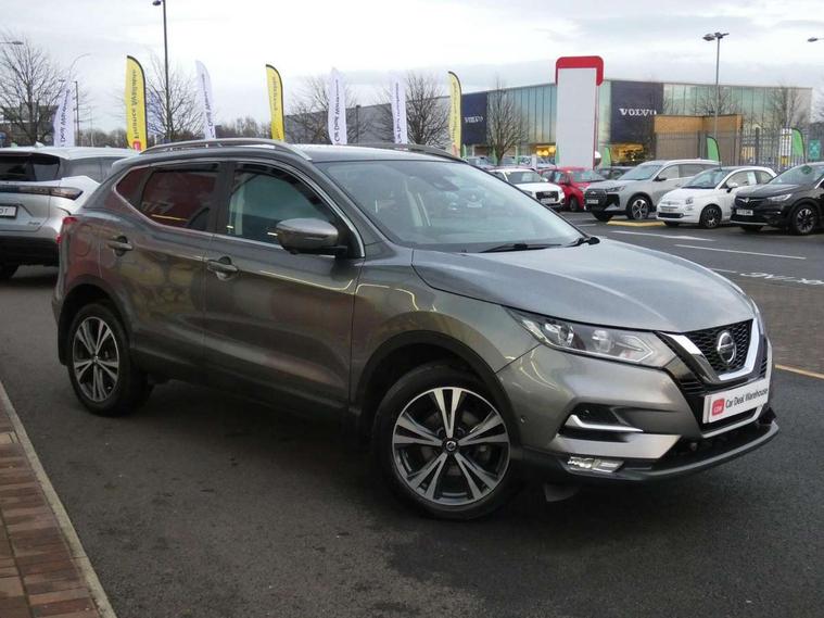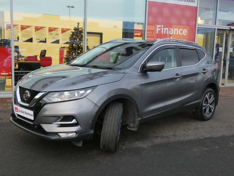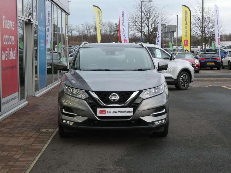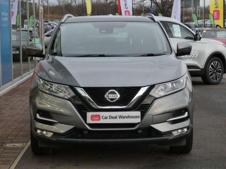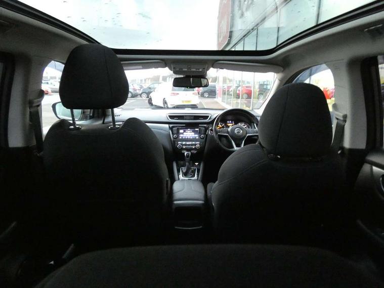 Advanced drive assist display 5'' TFT coloured screen, Android Auto, Apple CarPlay preparation, Bluetooth connectivity, Cruise control + speed limiter, Electric speed sensitive power steering, Front parking sensors, Intelligent around view monitor, Intelligent parking assist, Lane departure warning system, Nissan connect evo 7" touchscreen navigation and entertainment system, Normal or sport selectable steering, Outside temperature sensor, Push button starter, Rear parking sensors, Rear view camera, Service interval indicator, Smartphone integration, Stop/start system, Tomtom connected services, Traffic sign recognition, Trip computer, Voice control system, Diesel particulate filter, Nissan chassis control (intelligent ride control, intelligent trace control, intelligent engine brake), 6 speakers, AM/FM radio, CD audio system, Aux-in socket, DAB Digital radio, Steering wheel mounted audio controls, USB port, Anti dazzle rear view mirror, Auto wipers, Body colour bumpers, Body coloured door handles, Body coloured door mirrors, Chrome window surround, Daytime running lights dip function when turn signal applied, Electric folding door mirrors, Electric front and rear windows with one touch illuminated window controls, Electric front/rear windows, Electrically adjustable door mirrors, Front fog lights, Heated door mirrors, High beam assist, Intelligent auto headlights, LED indicators in door mirrors, Matt silver roof rails, Privacy glass, Rear roof spoiler, Rear wiper with reverse link, Shark fin antenna, Underbody vortex generators, 2 X front 12v power sockets, 3 height adjustable rear headrests, 60/40 split folding rear seat, Ambient lighting in centre console, Boot lighting, Centre console storage box/armrest, Chrome interior door handles, Cloth upholstery, Configurable luggage board system, Driver's seat manual height adjust, Dual zone climate control, Front and rear door pockets with bottle holders, Front and rear seat belt pre-tensioners with load limiters, Height adjustable front headrests, Leather D shaped steering wheel, Leather gear lever, Leather knee pad, Manual height adjustable front passenger seat, Manual lumbar support on driver seat, Manual lumbar support on passenger seat, Monoform front seats with plastic backboard, Parcel shelf stow function under luggage board, Pollen filter, Rear armrest with 2 cupholders, Synthetic leather wrapped door handle with contrasting stitching, Tilt/telescopic adjustable steering wheel, Safety shield plus pack - Qashqai, 6 airbags - Driver, front passenger, curtain and side airbags, ABS, ESP, EBD and brake assist, Auto hold function, Child locks on rear doors, Electronic parking brake, Front and rear seat belt warning, Front passenger airbag deactivation, Height adjustable front seatbelts, Hill start assist, Intelligent emergency braking with pedestrian recognition, Three 3 point rear seatbelts, Tyre pressure monitoring system, Anti-theft immobiliser, Intelligent Key, Remote central locking, Thatcham Cat.1 alarm, Carbon graphite dash trim, Tyre puncture repair kit,
