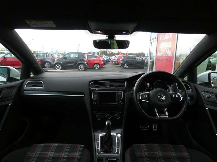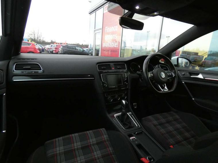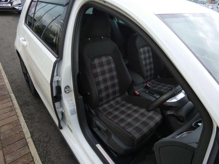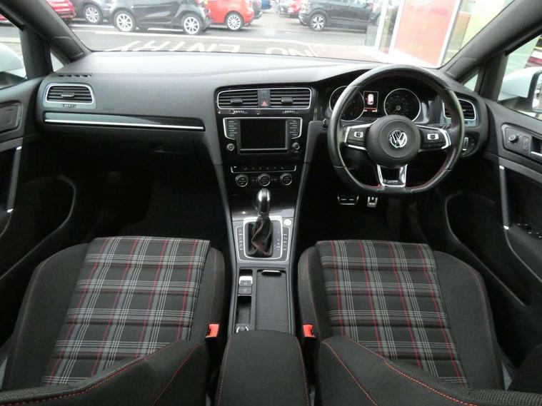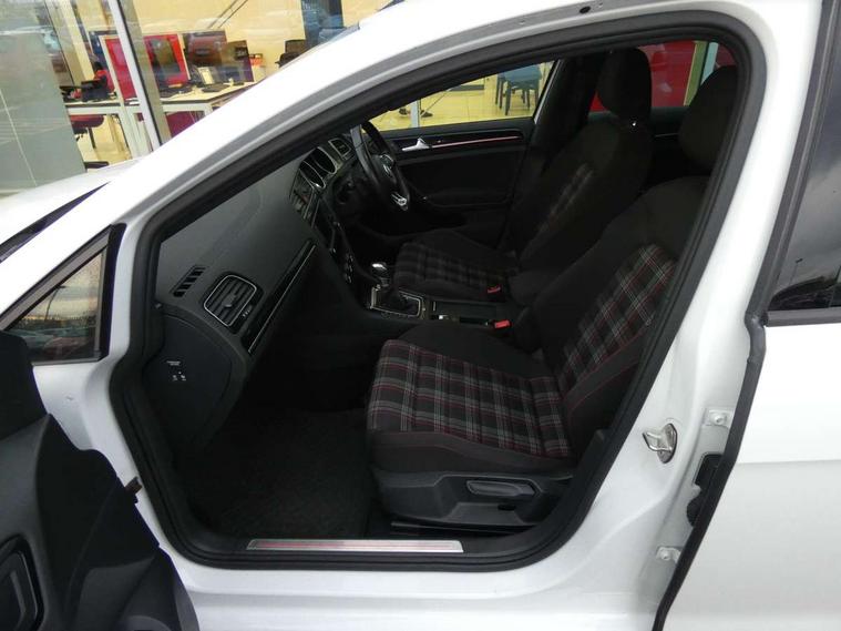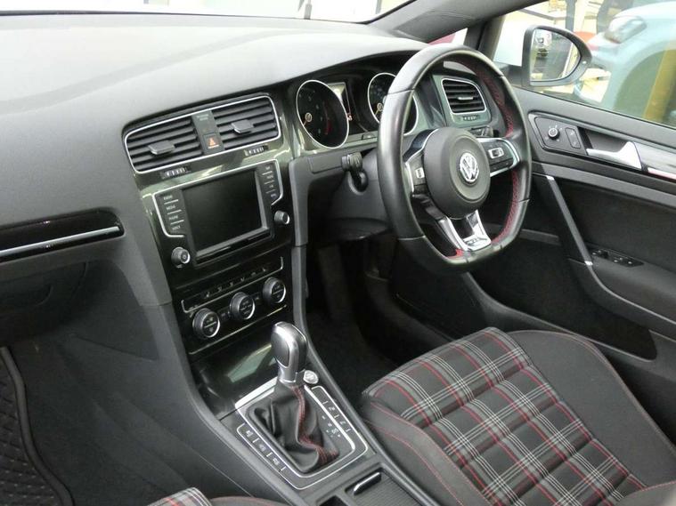 'Lights On' Reminder warning buzzer, ACC - Adaptive cruise control with front assist, forward collision warning, distance monitoring, city emergency brake and speed limiter, Bluetooth Telephone preparation, Brake pad wear indicator warning light, Driver alert system, Driver profile selection, Exterior temperature gauge, Flat tyre indicator, Instrument cluster in white, Low fuel level warning light, Multi function display colour screen, Multifunction computer, Oil level gauge, Progressive power assisted steering, Rev counter, Trip and service interval display, Ultrasonic front and rear optical and audible parking sensors, Warning buzzer and light for front seatbelts unfastened, Limited slip differential, Lowered sports suspension, CD/MP3/WMA, USB and SD card reader, aux-in, Composition media system, DAB Digital radio, MDI with USB/iPod connection cables, Auto dimming rear view mirror, Automatic coming/leaving home lighting function, Automatic headlights, Bi-xenon headlights/wash + dynamic cornering lights + LED daytime running lights, Body colour bumpers, Body colour door handles, Body colour door mirrors with integral indicators, Cherry red rear light cluster, Chrome trimmed front air intake surrounds, Dusk sensor + auto driving lights, Electric folding door mirrors with puddle lamps, Electric front windows, Electric rear windows, Electrically adjustable and heated door mirrors, Flared body colour side sills, Heated rear windscreen, Honeycomb radiator grille - black, LED front fog lights, LED rear lights, Rain sensor, Range adjustable headlights, Rear diffuser, Rear roof spoiler, Rear windscreen washer and wiper with interval delay, Red radiator grille louvres, Reverse activated kerb-view adjustment on passenger's door mirror, Twin chrome exhaust tailpipes, Windscreen wipers/ intermittent wipe + 4 position delay, 12V socket in luggage compartment, 3 rear headrests, 3 spoke steering wheel, 60/40 split folding rear seat, Adjustable dashboard illumination, Air conditioning - 2 zone electronic climate control, Ambient lighting, Bag hook in luggage compartment, Black headlining, Boot lashing points, Chrome-plated electric mirror adjustment switch surround, Chrome-plated electric window button surround, Courtesy light delay, Cover for storage compartment in centre, Driver/front passenger seat height adjustment, Dust/pollen filter, Front + rear carpet mats, Front centre armrest with storage box and rear air vents, Front footwell illumination, Front seat back storage pockets, Gearshift paddles, Grab handles, Height/reach adjust steering wheel, Illuminated door sills, Illuminated vanity mirrors, Isofix preparation for 2 rear child seats, LED reading lights, Load through provision with rear centre armrest and cupholders x2, Lockable, illuminated, cooled glovebox, Luggage compartment cover, Luggage compartment lighting, Multifunction leather steering wheel with leather gear knob/handbrake grip, Passenger underseat drawer, Stainless steel pedals, Storage box in luggage compartment, Storage compartments in doors, Variable boot floor, height adjustable and removable, White adjustable panel illumination, Winter pack - Golf, 3 point height adj front seatbelts + pretensioners, 3 rear 3 point seatbelts, ABS, Automatic post collision braking, Child locks on rear doors, Door open warning reflectors, Driver/Front Passenger airbags, Driver/Passenger whiplash optimised head restraints, Drivers knee airbag, Electronic parking brake with auto hold, Electronic tyre pressure monitoring, ESP with EDL + ASR, Front and rear curtain airbags, Front passenger airbag deactivation, Front side airbags, Fuel cut off safety device, Hydraulic Brake Assist (HBA), Pre crash system, Red brake calipers, Warning triangle and first aid kit holder, Alarm with interior protection, Anti-theft wheel bolts, Electronic engine immobiliser, Keyless entry, Keyless Start, Remote central locking with 2 remote folding keys, Chrome air vent surrounds, Chrome-plated light switch surround, Cyclone decorative inserts, Gloss black decorative inserts in centre console, Steel space saver spare wheel,