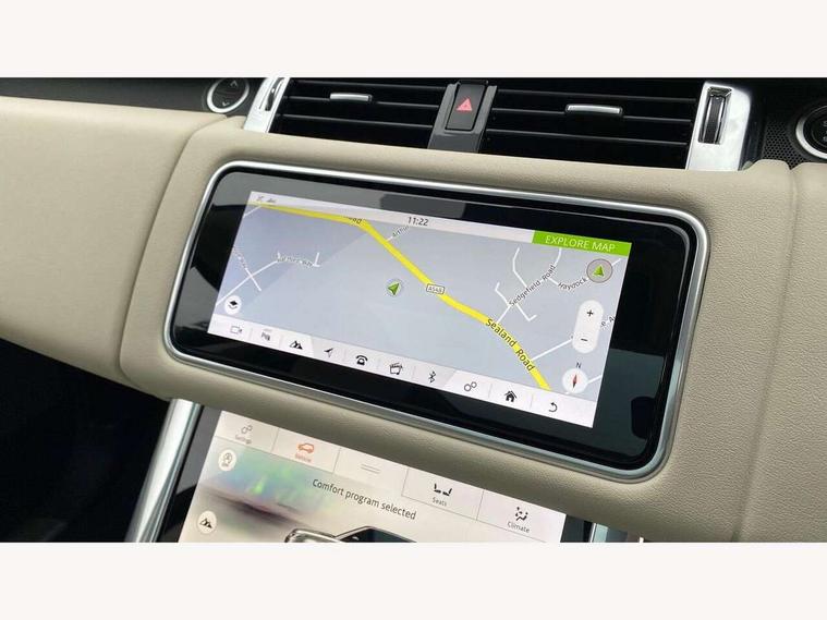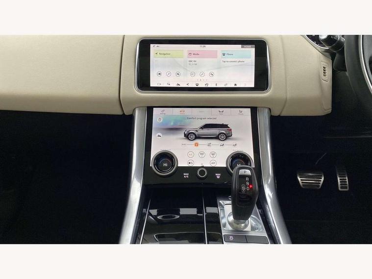 All Terrain Info Centre, Android Auto, Apple car play, Bluetooth connectivity, Electric power assisted steering (EPAS), Incontrol apps in vehicle touchscreen, Interactive Driver display instrument cluster, Mist sensor, Navigation pro system with 10" touch screen, app interface and media storage, Pro services and wifi hotspot, Push button start, Remote premium - Upgraded Incontrol remote app including remote climate control (engine dependent), remote lock + Unlock and remote beep + flash, TFT Virtual Instrument Panel, Touch pro duo system, Trip computer, Gradient release control (GRC), Bluetooth audio streaming, DAB Radio (Digital Audio Broadcasting), Incontrol protect - SOS emergency call with automatic collision detection, optimised assistance call and Incontrol remote app essential, USB/aux input socket, Acoustic front and toughened rear side glass, Acoustic laminated front windows, Adaptive brake lights, Auto dimming interior rear view mirror, Automatic headlights, Body coloured bumpers, Body coloured door mirrors, Centre high mounted stop light, Electric windows with one touch open/close and anti trap, Electrical towing preparation, Engine cover, Follow me home lighting, Front and rear recovery eyes, Front fog lights, Headlight power wash, Heated rear window, Heated windscreen includes heated washer jets, LED rear lamps, Privacy glass (Tinted glass rear of B pillar), Rain sensing windscreen wipers, Rear fog lights, Rear side wing doors, Rear wash/wipe, Remote window closing, Side repeater indicators in mirror, Sport Badge in silver, Standard bonnet, Trailer stability assist, 2 way active front head restraints, 2 way rear head restraints, 3 seat bench in 2nd row, 60/40 load through rear seats, Auto air recirculation, Bright metal foot pedals, Centre console with armrest, Climate control memory, Customer configurable single point entry, Driver's footrest, Front and rear cupholders, Front door storage space, Front map lights, Front seat back map pockets, Front stowage pocket, Front/rear passenger grab handles, Heated steering wheel, Isofix child seat preparation, Leather steering wheel with Atlas inserts, Loadspace light, Loadspace mounting provisions, Lockable glovebox, Multifunction steering wheel, Pollen filter, Power socket, Reach/rake electric adjustable steering column + entry/exit tilt away, Rear centre armrest, Rear ISOFIX, Roller blind loadspace cover, Satin chrome gearshift paddles, Single front passenger seat, Three 12V accessory power outlets, Smartphone pack - Range Rover Sport, 3 point seatbelts on all seats, Anti-lock braking system (ABS), Brake pre-fill technology, Cornering brake control (CBC), Curtain airbags, Customer configurable autolock, DSC - Dynamic Stability Control, Dual stage driver/passenger airbags, EBD - Electronic brakeforce distribution, Electric parking brake, Electronic traction control, Emergency braking includes city, urban AEB and pedestrian, Front seatbelt pretensioners, Gradient acceleration control, Grey anodised brake calipers, Height adjustable front seatbelts, Hill descent control, Hill launch assist, Low traction launch, Passenger seat occupant detector with front airbags, Power operated child locks, Roll stability control, Seatbelt warning, TPMS (Tyre pressure monitoring system), Immobiliser, Intrusion sensor, Keyless entry, Locking wheel nuts, Perimetric and volumetric anti theft alarm, Remote locking, Grand black veneer,
