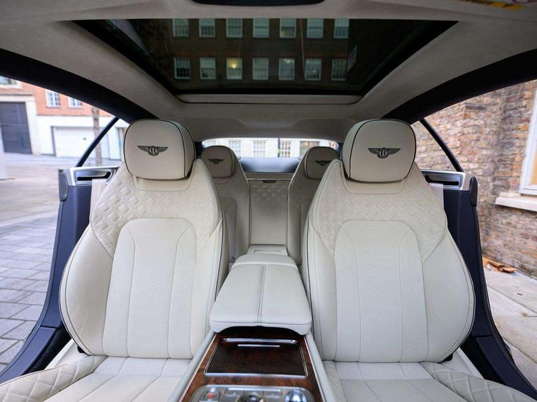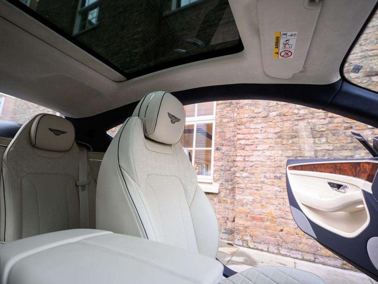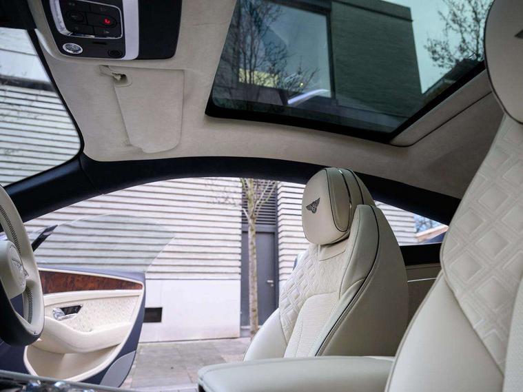 Apple car play, Blind spot warning, Bluetooth and Wi-Fi audio streaming, Brake pad wear indicator warning light, City assist, Collision prevention assist, E-call, Front/rear park distance control, Hands free boot opening, Infotainment system with 12.3 high resolution touch screen retina disp + proximity sensors + advance music interface, single DVD/CD, 2 SD card slots, Navigation system, Park assist system, PAS, Power latching to all doors for easy entry, Reversing camera, Reversing traffic warning, Top view camera, Traffic sign recognition, Trip computer, 3 Chamber air suspension with continuous damping control, Battery charger, Dynamic ride height control + ground clearance function, 60GB hard drive, Acoustic and heat insulating front windscreen, Acoustic glass, Adaptive brake lights, Auto dimming door mirrors, Auto dimming rear view mirror, Automatic headlights, Black and Chrome bonnet and boot Bentley wing badges, Bright boot finisher, Daytime running lights, Deployable rear boot spoiler, Electrically adjustable door mirrors with heating, power fold, memory and dip on reverse functions, Full LED Matrix headlamps with high-beam assist, Full LED tail lamps, Heated rear windscreen, LED third brake light, Rain sensing windscreen wipers, Rear boot, Treadplates inner with "Handbuilt in Crewe, England" inserts, Twin oval exhaust finishers, 12v power sockets 2 in cabin and 1 in boot, 2 cupholders in front centre console, 2 individual seats in 2nd row, Bentley hide upholstery, Black seat belt buckles, Boot carpet in Beluga, Boot lid down lighters, Deep Pile Carpets to match upholstery, Electric tilt and reach adjustment steering column with memory and easy entry functions, Four occupant seating positions, Leather trimmed gearshift lever, Lockable cooled glovebox, Metal bulls eye vents with organ stop, Multi-zone automatic climate control - two zone, Rear headrests, Seats with straight fluted style hide cover, Single front armrest with fore/aft adjust and stowage, Single front passenger seat, Ski hatch, Steering wheel gearshift paddles, Stowage to front doors, centre console and under centre armrest, Sunvisors with illuminated vanity mirrors, Two rear seats with centre stowage and cup holders including 12v socket and 2 USB charging points, Driver and passenger airbags, Electronic parking brake with drive away assist, Electronic stability programme with traction control, Anti lock braking System , Electronic brake force distribution, HBA + drag torque control, Electronic tyre pressure monitoring, Exit warning, Front vented 420x40mm disc brakes with Bentley branded black brake callipers, Multicollision braking system, Pedestrian warning, Pre crash system, Pre sense braking system, Rear vented 380x30mm disc brakes with Bentley branded black brake callipers, Side airbags, Torque vectoring brake, Alarm, Bentley GPS advanced tracking system, Immobiliser, Keyless entry and start, 21" Summer tyres, Tyre inflation kit,