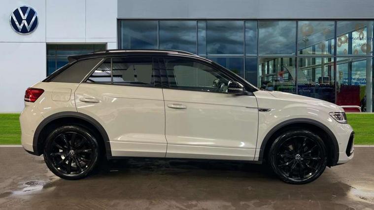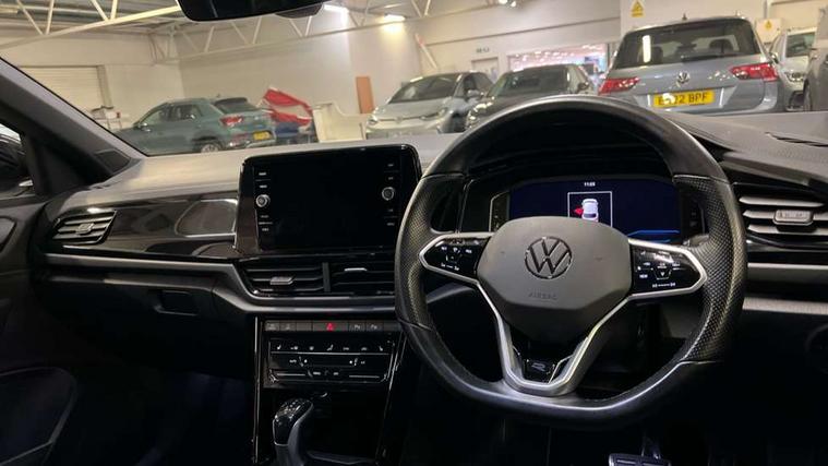10.25" Digital cockpit pro, Bluetooth mobile phone interface, Driver alert system with fatigue detection, Driver tips and journey analysis, Emergency call service, Lane keeping system Lane Assist, Modified key software - reduce switch off time for key status change to Long no motion, Online services, Park assist including front and rear parking sensors, Service interval indicator, Tailgate/trunk lid release from outside, Think blue trainer driver tips and journey analysis, Warning sound and light for front seatbelts unfastened, Wireless app connect, Battery regeneration during braking, Start/stop function with battery regeneration, Diversity antenna for FM reception, Front and rear 6 speakers, Music playback - MP3, WMA and AAC files, Premium USB cable in choice of either Apple or Android smartphone compatibility, SD card slot, Simultaneous pairing of 2 compatible mobile devices, Title and cover art display, We Connect and We Connect Plus functionality, 3rd brake light, Auto dimming interior rear view mirror, Automatic hazard lights activation under emergency braking, Automatic headlight control with LED separate daytime running lights with coming/leaving home function, Extended roof spoiler, Exterior mirrors aspherical on driver side, convex on front passenger side, External USB type C socket and charging sockets, Front windscreen wiper with intermittent wipe and 4 position delay, Heated rear window, LED Plus headlamps, LED rear combination lamps, LED rear number plate lights, LED tail lamp rear comination lamps, Power windows with comfort operation and circuit breaker, R-Line design body coloured bumpers, Rain sensor, Rear exhaust tailpipe, Rear fog light on one side and reversing lights on both sides, Rear side wing doors, Rear wash/wipe with intermittent wipe setting, Remote electrically foldable door mirrors, puddle lights and reverse activated passenger's door mirror, 12V power socket in centre console, 3 rear head restraints, 3 seat bench in 2nd row, 4 load lashing points in luggage compartment, Air care climatronic air conditoning system with active combination filter and 2-zone temperature control, Black roof lining, Chrome plated radiator grille inserts, air vent surrounds and light switch surrounds, Door and side trim panel with leatherette insert, Drawer under drivers seat, Front + rear carpet mats, Front centre armrest, Front cupholders x 2, Front footwell illumination, Front reading light, Front scuff plates with R logo, Instrument lighting, white adjustable panel illumination, Interior ambient lighting and surround lighting, Interior light delay, Isofix child seat preparation, Leather gearshift handle, Load-through provision with cup holder when folded down ('Unsplit rear seat bench, split folding backrest, with centre armrest), Luggage compartment lighting, Single front passenger seat, Stainless steel pedals, Storage compartment in left and right luggage area, Storage compartment in rear doors, Storage compartments in driver and front passenger doors, Sunvisors with illuminated vanity mirrors, Variable boot floor, height adjustable and removable, Driver assistance pack without proactive passenger protection - T-Roc, 3 point height adj front seatbelts + pretensioners, 3 point seatbelts in outer rear with ECE label, ABS, Child locks on rear doors, Driver and front passenger airbag with front passenger airbag deactivation, Driver and front passenger safety-optimised head restraints, Drivers seatbelt reminder, Electronic parking brake, Electronic Stability Control (ESC) inc EDL (Electronic Differential Lock) and ASR (Traction Control), Front and rear passengers curtain airbag system including front side airbags, Front assist with city emergency braking and pedestrian monitoring, Front seat side impact airbags, Hill start assist, Predictive pedestrian protection, Rear disc brakes, Single tone horn, Tyre pressure loss indicator, Volkswagen roadside assistance, Alarm with interior protection, Anti-theft alarm system with interior monitoring, backup horn, and towing protection, Remote central locking with SAFELOCK, radio remote control with 2 remote control folding keys, Trims for alloy wheels,