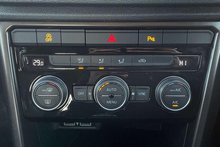 2 USB connection charging sockets, Adaptive cruise control, App-Connect, Automatic start/stop system, Bluetooth telephone and audio connection for compatible devices, Car information display, Front assist, radar sensor controlled distance monitor, city emergency braking + predictive pedestrian protection, Lane assist, Multifunction computer with visual gear change recommendation for fuel consumption, Power assisted speed sensitive steering, Service interval indicator, Think blue trainer driver tips and journey analysis, Warning sound and light for doors and tailgate open, Warning sound and light for front seatbelts unfastened, Battery regeneration during braking, Bluetooth - Simultaneous pairing of 2 compatible mobile devices, DAB Digital radio, Multi device interface (MDI) with USB connection, Music playback - MP3, WMA and AAC files, Premium USB cable in choice of either Apple or Android smartphone compatibility, SD card slot, SMS functionality - read, compose and send SMS messages using touch-screen display, Title and cover art display, Auto dimming interior rear view mirror, Automatic hazard lights activation under emergency braking, Black grained lower door protectors, Black grained wheel arches, Body colour bumpers with silver metallic underbody fascia, Body colour door handles, Chrome trim on upper and lower radiator grille, Door mirror integrated indicators, Dusk sensor, Electrically foldable, adjustable and heated door mirrors with puddle lights and reverse activated kerb-view adjustment on passenger's door mirror, Front and rear electric windows, Front windscreen wiper with intermittent wipe and 4 position delay, Fully galvanised body, Heated rear window, High level 3rd brake light, LED rear number plate lights, Manual coming/automatic leaving home lighting function, Rain sensor, Rear windscreen washer and wiper with interval delay, 12V socket in centre console storage area, 2 front reading lights, 3 rear head restraints, 4 load lashing points in luggage compartment, Climate control - 2 zone electronic air conditioning with automatic air recirculation and allergy filter, Drawer under drivers seat, Front centre armrest with storage compartment, longitudinal and height adjustable and two rear air vents, Front cupholders x 2, Front seat back storage pockets, Glovebox, Height adjustable front seats, Height/reach adjust steering wheel, Illuminated vanity mirrors, Instrument lighting, white adjustable panel illumination, Interior light delay, Isofix easy fit child seat preparation for 2 outer rear seats, Load through provision with single cup holder when folded down, Luggage compartment cover, removable, Luggage compartment lighting, Split folding rear seat backrests with centre armrest, Storage compartment in left and right luggage area, Storage compartment in rear doors, Storage compartments in driver and front passenger doors, 3 rear three point seatbelts, ABS, Driver and front passenger safety-optimised head restraints, Electronic parking brake with auto hold, ESC with EDL, ASR, EDTC and trailer stabilisation function, Front and rear curtain airbags, driver and front passenger airbags with passenger deactivation switch and front side impact airbags, Rigid safety cell with front and rear crumple zones, Three point height adjust front seatbelts + pretensioners, Tyre pressure loss indicator, Ventilated front and rear disc brakes, Volkswagen roadside assistance, Alarm with remote central locking and interior protection, Electronic engine immobiliser, Remote central locking with 2 remote folding keys, Dark oak brown decorative inserts in dash and door panel,