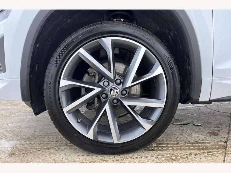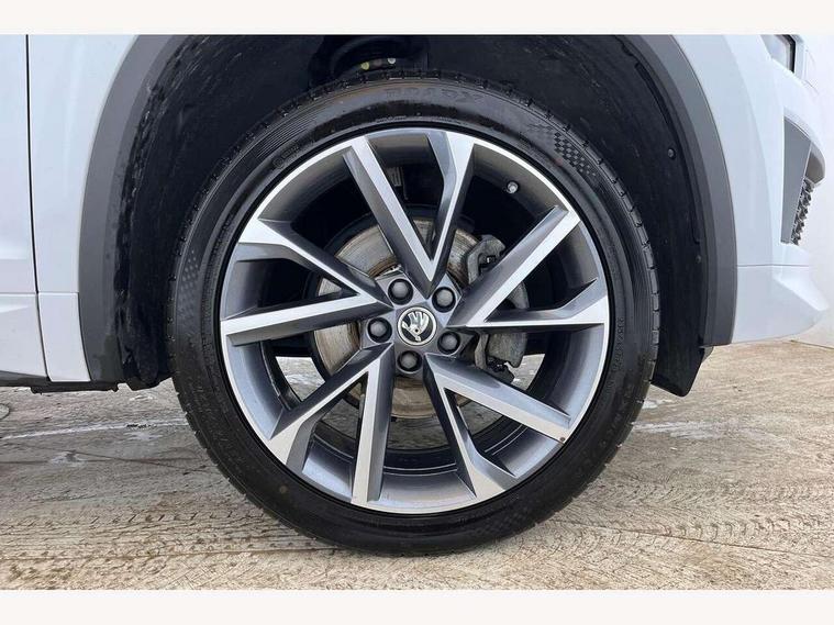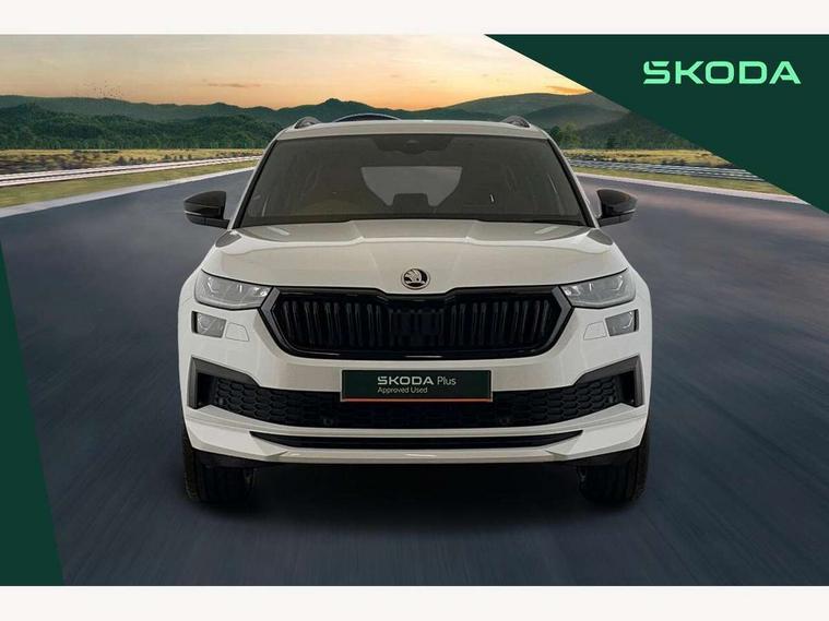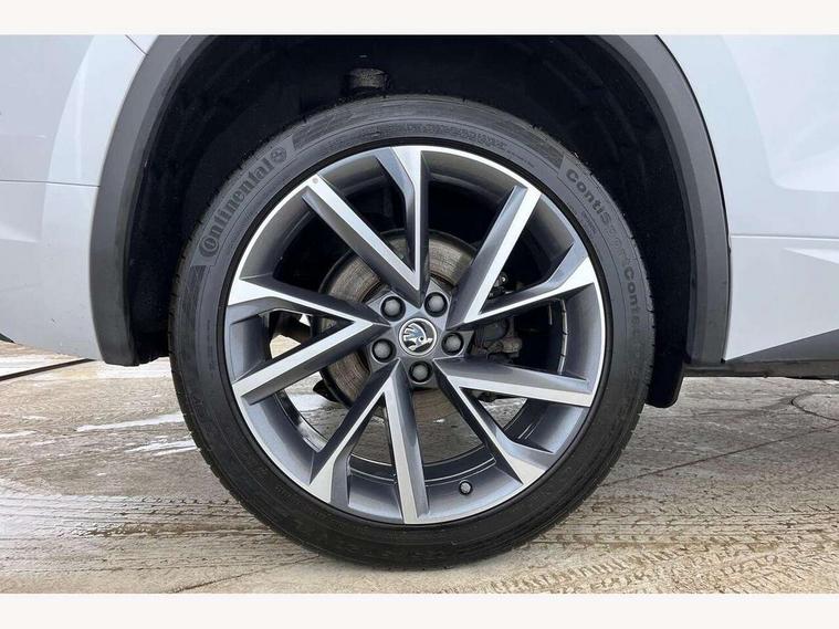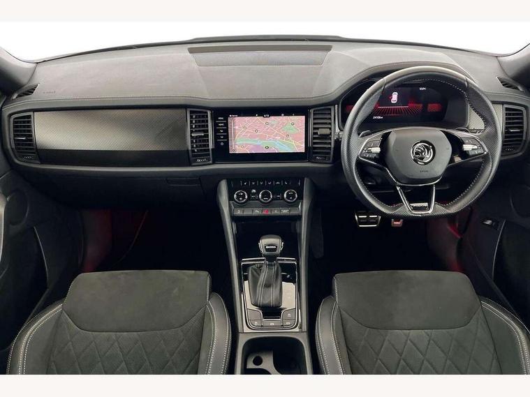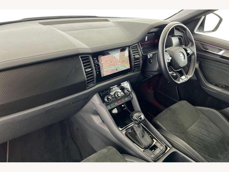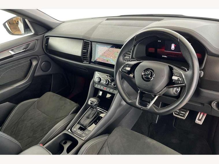 Bluetooth system, Columbus satellite navigation with 9.2" touchscreen, integrated Wi-Fi, web radio, Digital voice enhancement, e call+, ECO Stop/start function, Exterior temperature indicator, Progressive steering, Rear view camera, Smartlink wireless for apple carplay and wired for android auto, Speed limiter, USB C Port x 2 in front centre console, Virtual Cockpit - 10.25" digital display with additional sports design, Wireless charging, 8 speakers, DAB Digital radio, Aero front windscreen wipers with intermittent function, Aero rear window wiper, Auto dimming rear view mirror, Black roof rails, Black sports styling including front grille and window surrounds, Black wheel arch surrounds, Body colour bumpers, Body colour door handles, Electric adjustable/heated/folding door mirrors, driver side auto dimming with boarding sports and memory function, Electric front and rear windows, Extended rear spoiler with finlets in gloss black, Front fog lights, Full LED matrix headlights with AFS (adaptive front light system), cornering function and AWL (all weather lighting system), Gloss black door mirrors, Headlight washers, Heated rear window, Invisible tailpipe, LED daytime running lights, LED rear fog light, LED third brake light in rear spoiler, Light assistant (coming/leaving home/tunnel light), Off-road style lower front bumper element, Privacy glass, Rain and light sensors, Rear diffuser, Rear LED lights (high functionality) with welcome effect and dynamic indicators, Rear side wing doors, Safety reflectors on front and rear doors, Sportline badge on front fender, Sports front and rear bumpers including lower rear chrome strip, Tailgate lettering in Black, Window control switches with black trim, 12V socket in boot, 2 rails with 2 hooks, 2 seat bench in 3rd row, 3 seat bench in 2nd row, 4 foldable roof handles with rear coat hooks, 60:40 foldable rear seat with sliding adjustment and backrest angle adjustment, Aluminium pedals, Black roof headlining, Bottle holders in door panel in the 1.5 litre front and 1 litre rear, Cargo storage compartments, Chrome headlight control button, Chrome interior door handles, Coat hooks on B pillar, Covered storage compartment on driver side, Decorative door sill covers, Front centre armrest with storage compartment, cup holder and 12V socket, Front courtesy lights, Gear shift lever with chrome frame and black gloss insert, Grey stitching in front and rear armrests and door armrests + door inserts, Height adjustable front headrests, Illuminated and cooled glovebox, Illuminated luggage compartment, Isofix child seat fittings in outer rear seats with top tether, Manually adjustable steering column, Microsuede door panels, Net programme in boot (1x horizontal Net, 2x vertical Nets), Overhead glasses storage compartment, Pollen filter, Rear centre armrest with cupholders, Single front passenger seat, Sliding trunk cover, Small Bags on the inner sides of the front backrests, Sports seats, Sunvisors with illuminated vanity mirrors, Three rear height adjustable headrests, Ticket holder on A Pillar, Umbrella in door panel, Variable boot floor, LED Interior light pack - Kodiaq, Auto door release and activation of warning lights, Child locks on rear doors, Driver and front passenger airbag with knee airbag and front passenger airbag deactivation, Electronic parking brake with hill start assist, Emergency rear braking signal, ESC (incl. ABS+MSR+ASR+EDS+HBA+DSR+RBS+MKB), Front assist with autonomous emergency braking, Front side airbags with curtain airbags, Fuel cut off safety device, Height adjustable front 3 point seatbelts + pretensioners, Hill hold control, Rear disc brakes, Safety vest holder in door, Seat belt reminder for all seats, Tailgate unlocking from outside, Three point rear seat belts, Two tone horn, Tyre pressure monitor, Alarm with interior monitoring and tilt sensor with safe function, Anti-theft wheel bolts, Immobiliser, Keyless entry and start system (KESSY), Remote central locking with 2 keys, Black air vent surround, Carbon finish dashboard and door inserts, Grey stitching in dashboard, 20" Vega Anthracite alloy wheels, Temporary spare wheel (space saver),