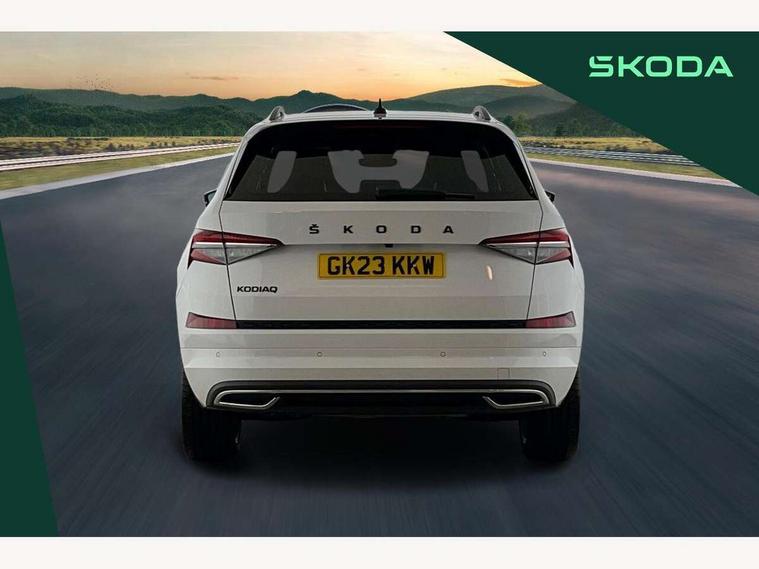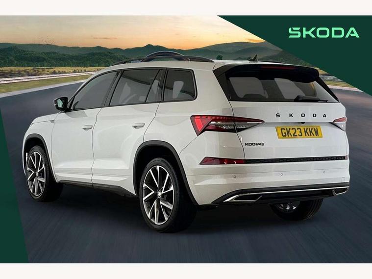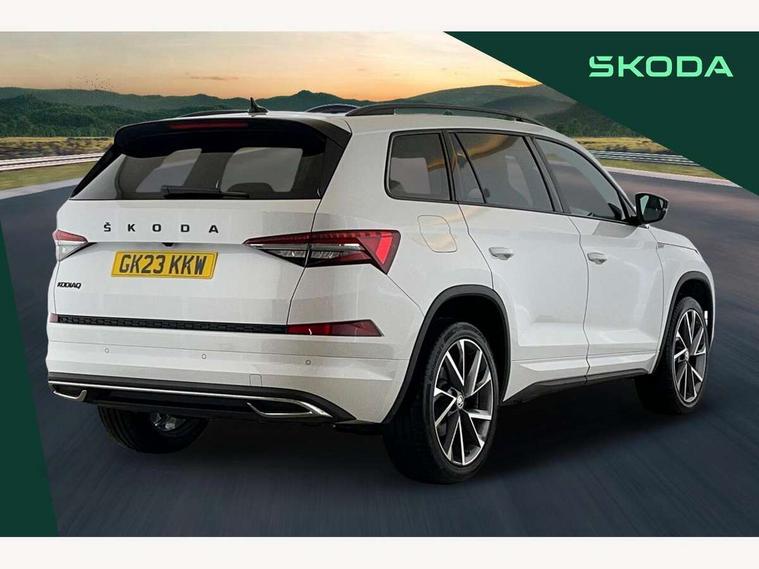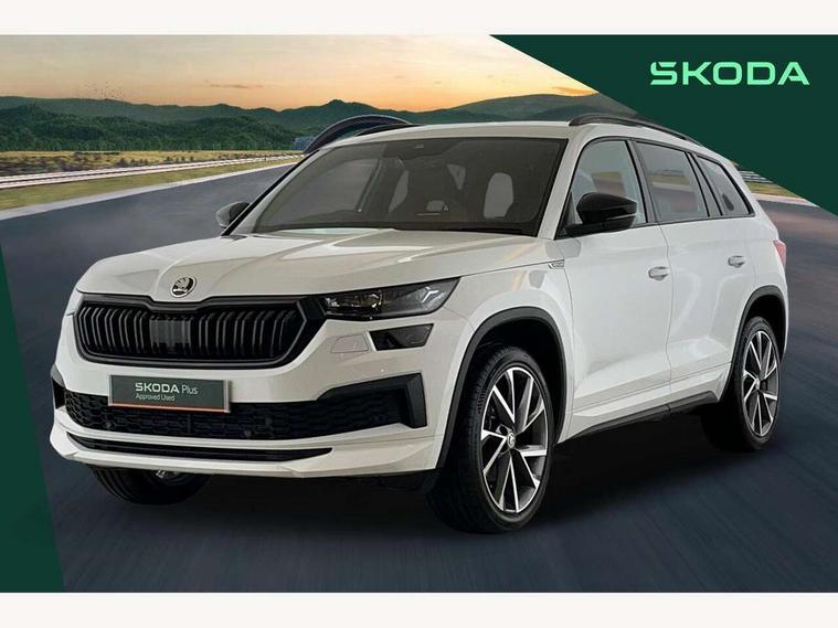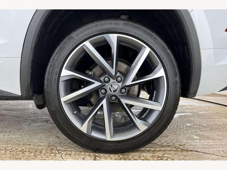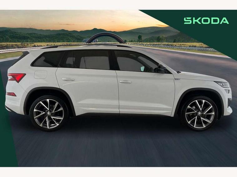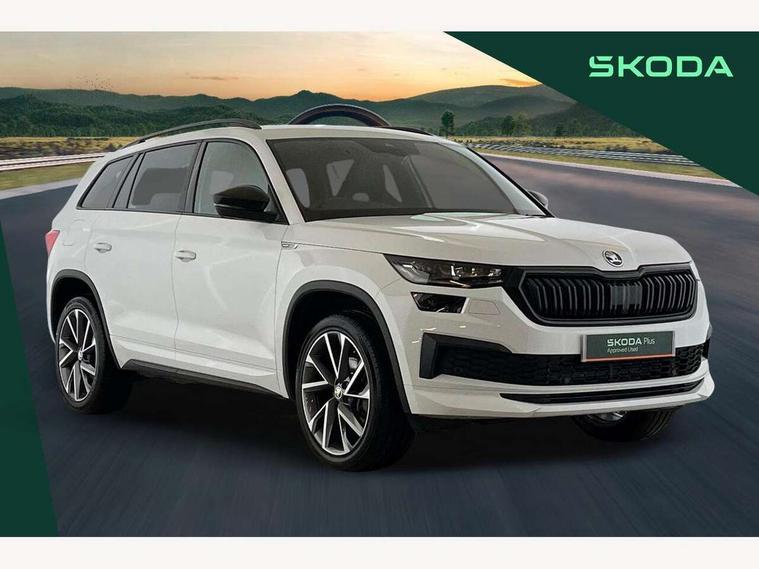 Bluetooth system, Columbus satellite navigation with 9.2" touchscreen, integrated Wi-Fi, web radio, Digital voice enhancement, e call+, ECO Stop/start function, Exterior temperature indicator, Progressive steering, Rear view camera, Smartlink wireless for apple carplay and wired for android auto, Speed limiter, USB C Port x 2 in front centre console, Virtual Cockpit - 10.25" digital display with additional sports design, Wireless charging, 8 speakers, DAB Digital radio, Aero front windscreen wipers with intermittent function, Aero rear window wiper, Auto dimming rear view mirror, Black roof rails, Black sports styling including front grille and window surrounds, Black wheel arch surrounds, Body colour bumpers, Body colour door handles, Electric adjustable/heated/folding door mirrors, driver side auto dimming with boarding sports and memory function, Electric front and rear windows, Extended rear spoiler with finlets in gloss black, Front fog lights, Full LED matrix headlights with AFS (adaptive front light system), cornering function and AWL (all weather lighting system), Gloss black door mirrors, Headlight washers, Heated rear window, Invisible tailpipe, LED daytime running lights, LED rear fog light, LED third brake light in rear spoiler, Light assistant (coming/leaving home/tunnel light), Off-road style lower front bumper element, Privacy glass, Rain and light sensors, Rear diffuser, Rear LED lights (high functionality) with welcome effect and dynamic indicators, Rear side wing doors, Safety reflectors on front and rear doors, Sportline badge on front fender, Sports front and rear bumpers including lower rear chrome strip, Tailgate lettering in Black, Window control switches with black trim, 12V socket in boot, 2 rails with 2 hooks, 2 seat bench in 3rd row, 3 seat bench in 2nd row, 4 foldable roof handles with rear coat hooks, 60:40 foldable rear seat with sliding adjustment and backrest angle adjustment, Aluminium pedals, Black roof headlining, Bottle holders in door panel in the 1.5 litre front and 1 litre rear, Cargo storage compartments, Chrome headlight control button, Chrome interior door handles, Coat hooks on B pillar, Covered storage compartment on driver side, Decorative door sill covers, Front centre armrest with storage compartment, cup holder and 12V socket, Front courtesy lights, Gear shift lever with chrome frame and black gloss insert, Grey stitching in front and rear armrests and door armrests + door inserts, Height adjustable front headrests, Illuminated and cooled glovebox, Illuminated luggage compartment, Isofix child seat fittings in outer rear seats with top tether, Manually adjustable steering column, Microsuede door panels, Net programme in boot (1x horizontal Net, 2x vertical Nets), Overhead glasses storage compartment, Pollen filter, Rear centre armrest with cupholders, Single front passenger seat, Sliding trunk cover, Small Bags on the inner sides of the front backrests, Sports seats, Sunvisors with illuminated vanity mirrors, Three rear height adjustable headrests, Ticket holder on A Pillar, Umbrella in door panel, Variable boot floor, LED Interior light pack - Kodiaq, Auto door release and activation of warning lights, Child locks on rear doors, Driver and front passenger airbag with knee airbag and front passenger airbag deactivation, Electronic parking brake with hill start assist, Emergency rear braking signal, ESC (incl. ABS+MSR+ASR+EDS+HBA+DSR+RBS+MKB), Front assist with autonomous emergency braking, Front side airbags with curtain airbags, Fuel cut off safety device, Height adjustable front 3 point seatbelts + pretensioners, Hill hold control, Rear disc brakes, Safety vest holder in door, Seat belt reminder for all seats, Tailgate unlocking from outside, Three point rear seat belts, Two tone horn, Tyre pressure monitor, Alarm with interior monitoring and tilt sensor with safe function, Anti-theft wheel bolts, Immobiliser, Keyless entry and start system (KESSY), Remote central locking with 2 keys, Black air vent surround, Carbon finish dashboard and door inserts, Grey stitching in dashboard, 20" Vega Anthracite alloy wheels, Temporary spare wheel (space saver),