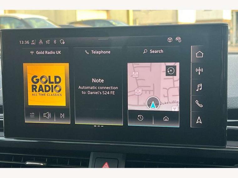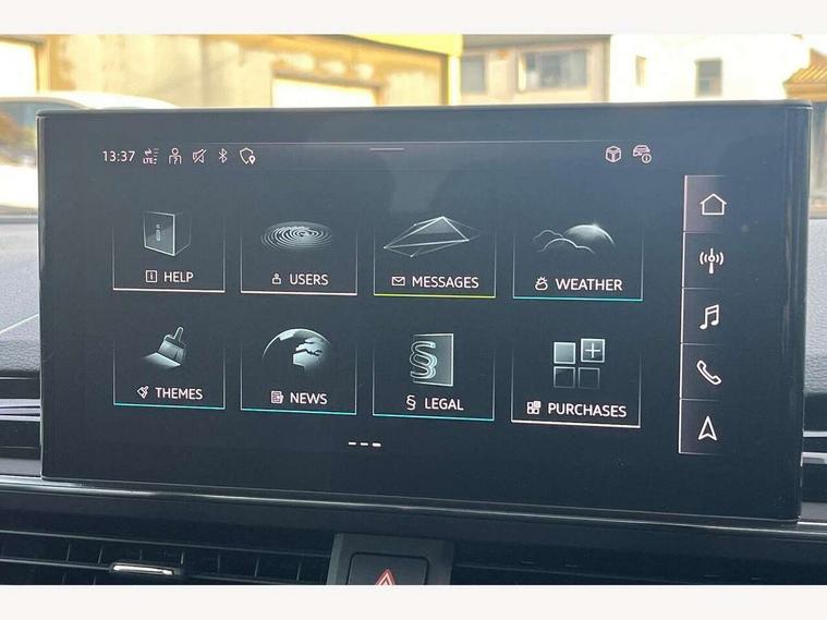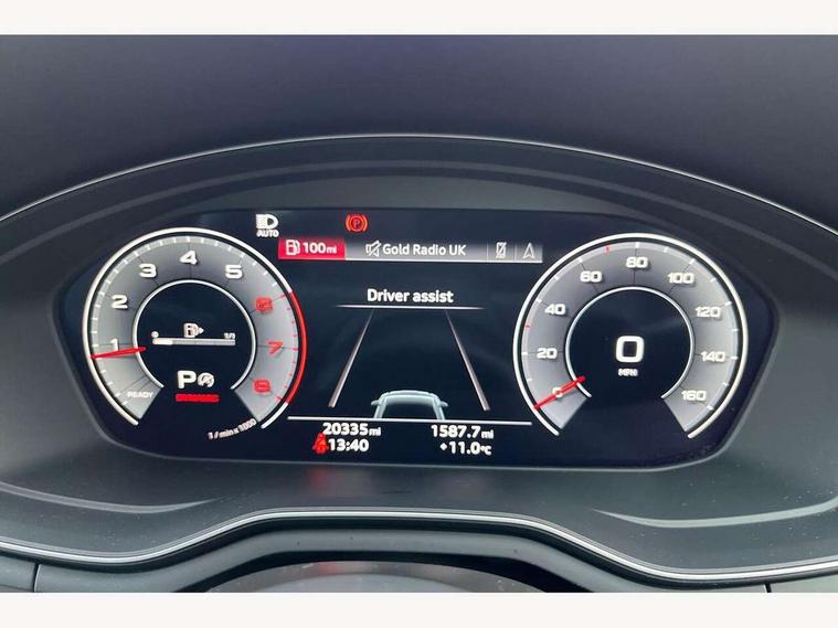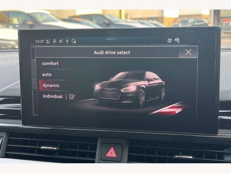 Audi connect safety and service (e-call), Audi drive select (Auto, Comfort, Dynamic and Individual), Audi smartphone interface, Audi virtual cockpit - 12.3" full colour digital instrument cluster, vehicle/engine speed, Radio/media information+Driver assistance systems, Automatic start-stop system with coasting functionality and efficiency programme, Bluetooth interface, Camera based traffic sign recognition, Electro-mechanical power steering, Email, calendar and text messages displayed via MMI, Front and rear parking sensors, Lane departure warning, MMI nav+ with MMI touch - 10.1" high resolution MMI display, touch sensitive, 3D map, route/country info, dynamic route guide, personal route assist, Power operated tailgate, Rear view camera, Service interval indicator, Voice control system, 54 litre fuel tank, Sports suspension lowered by 23mm, 8 passive loudspeakers, CD player, DAB digital radio reception, Two additional USB ports for rear passenger in rear centre console, Two SDXC card slots, Auto dimming door mirrors, Auto dimming rear view mirror, Body colour bumpers, Body colour door handles, Body colour front spoiler lip, Body colour side sill trim, Body coloured door mirrors, Electric adjustable heated door mirrors, Electric folding door mirrors, Electric front windows, Front fog lights, Honeycomb structure radiator grille in grained matt black, Kerb-view function for passenger side, LED headlights and rear lights with LED daytime running lights, LED side indicator lights integrated into door mirrors, LED third brake light, Matt aluminium silver tailpipe trim, Privacy glass, Rain and light sensors, Rear side wing doors, Rear wiper, S line badges on front wings, S line front and rear bumpers with side skirts, S Line rear diffuser in matt anthracite black with trim strip in matt aluminium silver, Side air inlets in grained matt black with matt aluminium silver inlay, Variable front intermittent wipers, Windscreen with acoustic glazing, 3 seat bench in 2nd row, 3 spoke high multifunction leather sport steering wheel with paddle shfit and S badging perforated leather grips, 4 way electric lumbar support for driver and front passenger, 40/20/40 split folding 3 seater rear bench seat, Adjustable steering column, Black cloth headlining, Black perforated leather gearknob, Contrast stitching on seats, steering wheel and gear lever gaiter, Deluxe 3 zone electronic climate control, Front centre armrest, Front head restraints, Front/rear floor mats, Heated front seats, Illuminated door sill trim with S logo, ISOFIX child seat mounting and top tether, Luggage compartment mat, Manual seat adjustment, Rear centre armrest, Rear headrests, Single front passenger seat, Stainless steel pedals and footrest, Sunvisors with vanity mirrors, LED interior light pack - A5/RS5, 3x3 point rear seatbelts, 6 airbags - Driver, front passenger, curtain and side airbags, Attention and drowsiness assist, Electromechanical parking brake, Electronic Stabilisation Control (ESC) including ABS, ASR and EDL, Front passenger airbag deactivation, Height adjustable front seatbelts, Hill hold assist, Manual child lock in rear doors, Multi collision brake assist, Pop-up bonnet for pedestrian protection, Pre sense city, Seatbelt monitoring, Tyre pressure warning, Variable restraint system, Warning triangle and first aid kit, Anti theft alarm system, Anti theft wheel bolts, Immobiliser, Keyless Go, Remote central locking, Matt brushed aluminium inlays, Tool kit, Tyre repair kit,