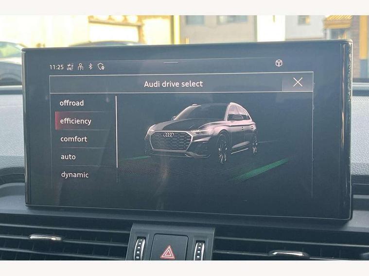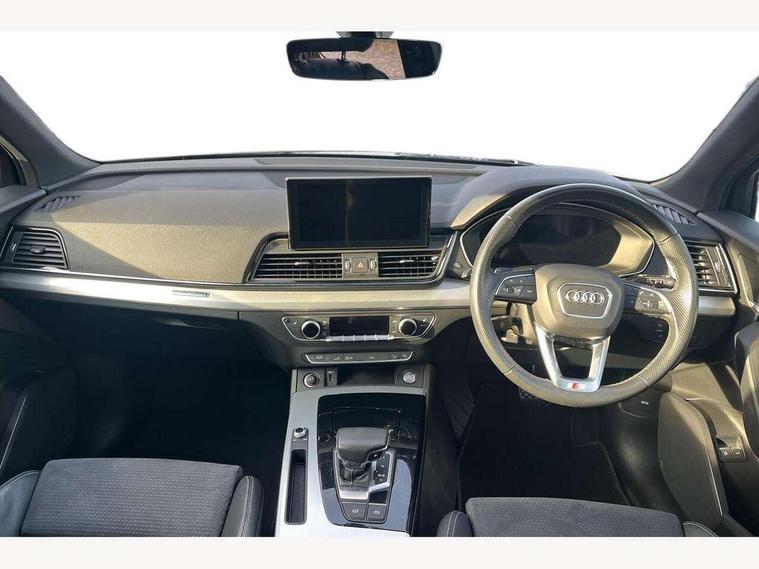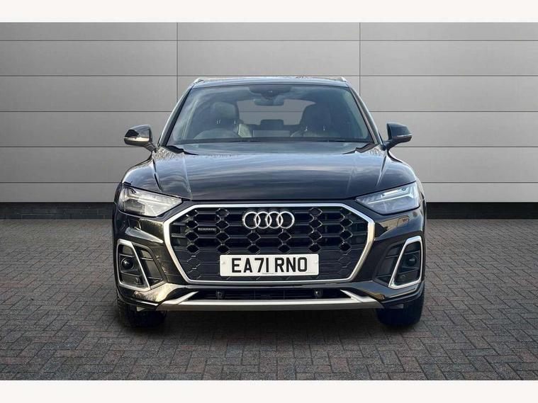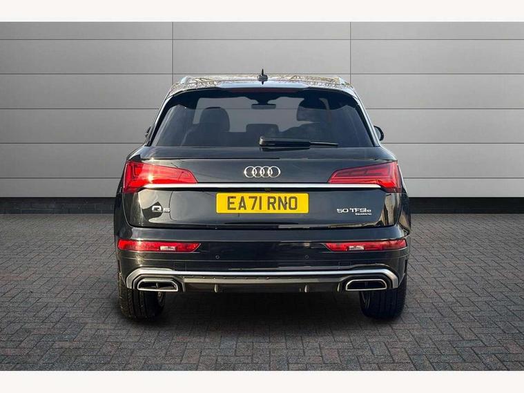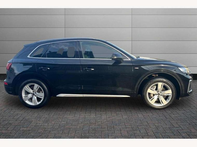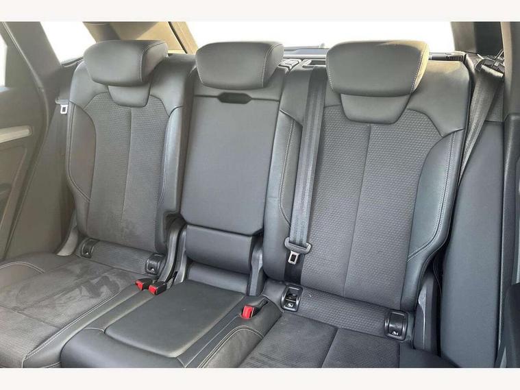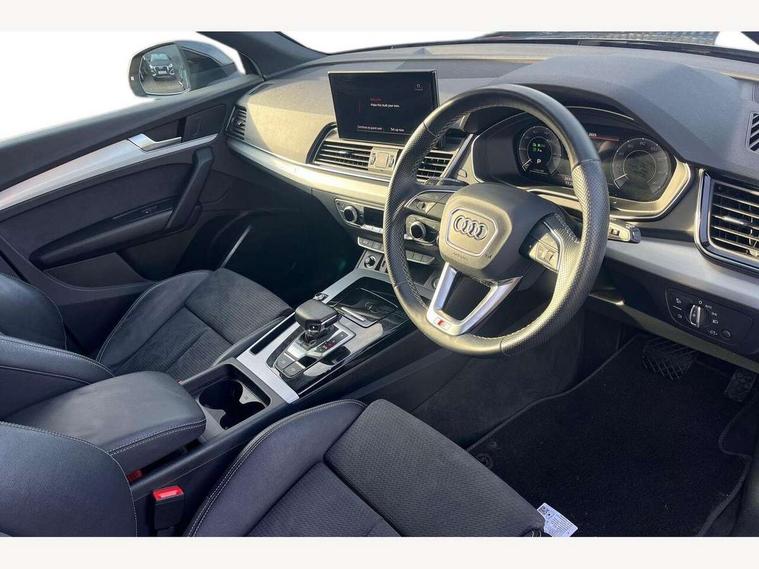 Audi connect safety and service (e-call), Audi connect with Amazon Alexa Integration, Audi drive select, Audi virtual cockpit plus with 12.3" screen and three different layout designs, Audi wireless smartphone interface, Automatic start-stop system with coasting functionality and efficiency programme, Bluetooth interface, Electro - mechanical power assisted steering, MMI navigation plus with 10.1" touch screen, Power tailgate, Reversing camera, Service interval indicator, Voice control system with Audi hotword activation "Hey Audi", 3 pin 10 amp domestic charging cable, Dynamic suspension, Quattro on demand, Type 2 mode 3 22kW 32 amp charging cable, Type 2 socket for AC charging, 2 x USB charging port with aux input socket, DAB Digital radio, Acoustic windscreen, Aluminium roof rails, Audi matrix LED headlights with dynamic front and rear indicators, Auto dimming rear view mirror, Automatic headlights and windscreen wipers, Body colour bumpers, Body colour door mirrors, Body colour rear diffuser with matt aluminium silver surrounds, Body colour underbody protection, Chrome plated exhaust trims, Door sills in Selenite silver, Electric adjustable/heated/folding door mirrors, Front air inlet surrounds in aluminium, Front and rear electric windows, Front radiator grille in honeycomb design, Headlight washers, Lower bumpers painted in contrast Manhattan grey, Rear chrome trim strip below lights, Rear privacy glass and rear side windows, Rear spoiler, Rear wiper, Roof bars, S Line badges on the front wings, S Line front and rear bumpers, S Line side skirts, 3 rear headrests, 40:20:40 split folding rear seat with rear centre armrest, Black cloth headlining, Comfort front centre armrest, Contrast stitching on seats, steering wheel and gear lever gaiter, Deluxe 3 zone electronic climate control, Front/rear floor mats, Gear lever in black leather, Heated front seats, Height adjustable front head restraints, Height/reach adjustable steering column, Illuminated door sill trims with S logo, ISOFIX child seat mounting and top tether, Manual seat adjustment with 4-way electric lumbar support, Rear seat bench plus, Sunvisors with vanity mirrors, Trunk roller cover, High gloss pack - Q5, LED interior light pack - Q5, 3 point seatbelts on all seats, 6 airbags - Driver, front passenger, curtain and side airbags, Electrically operated child locks on rear doors, Electromechanical parking brake, Electronic stabilisation control including ABS, ASR and EDL, Front passenger airbag deactivation, Hill descent control, Hill hold assist, Multi collision brake assist, Pop-up bonnet for pedestrian protection, Pre sense city, Seat belt force limiter, Seatbelt monitoring, Tyre pressure warning, Warning triangle and first aid kit, Anti theft alarm, Anti-theft wheel bolts, Keyless Go access/ignition system, Matt brushed aluminium inlays, Tool kit, Tyre repair kit,