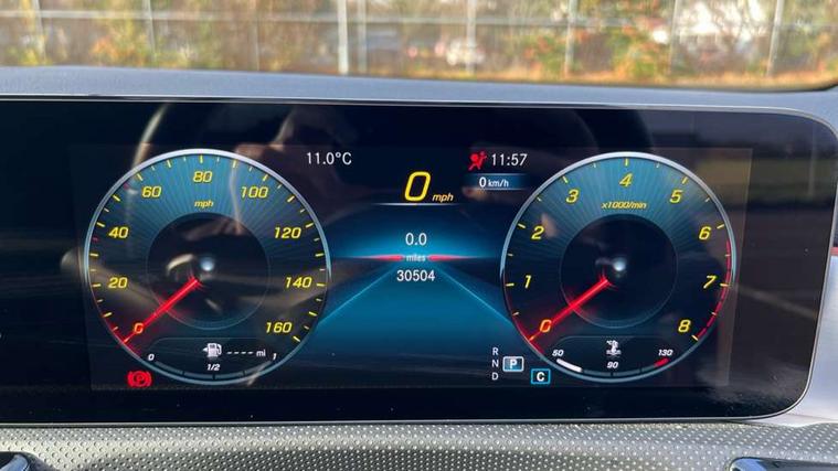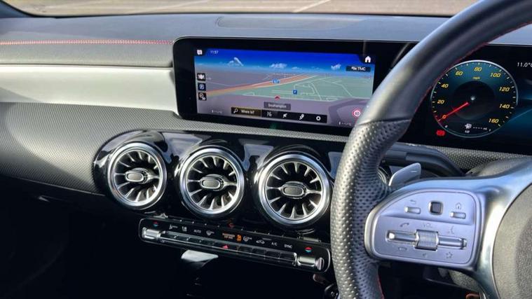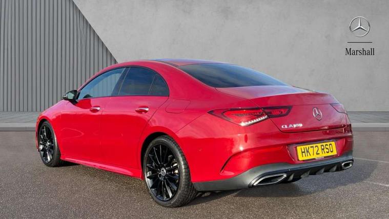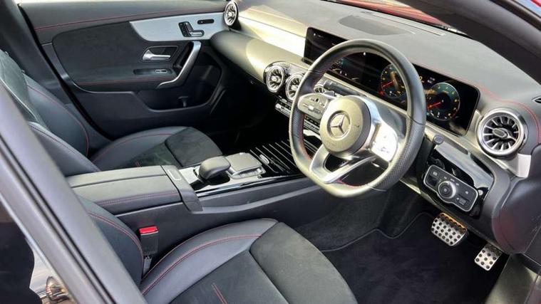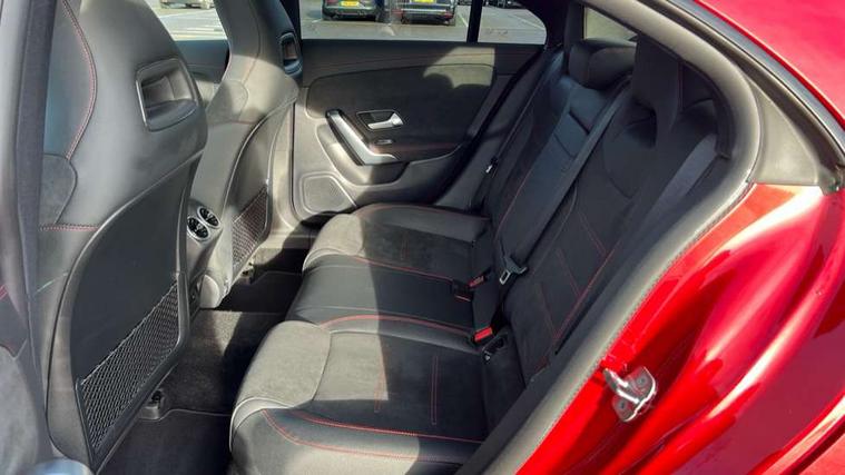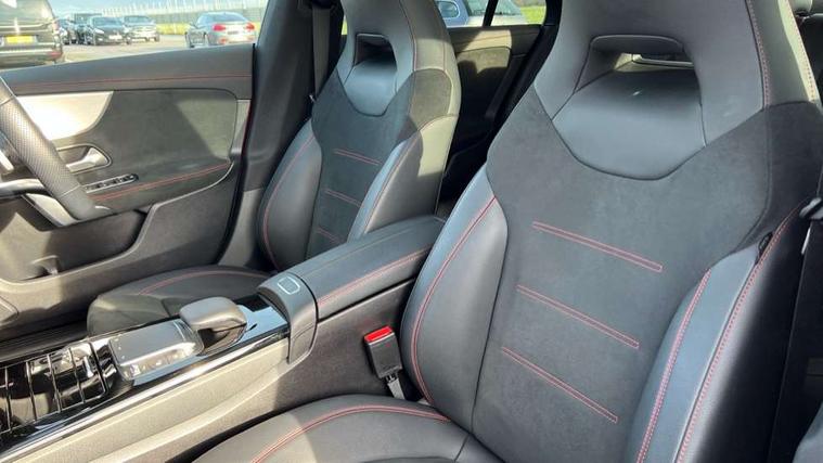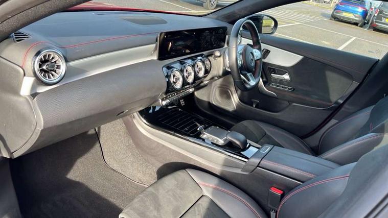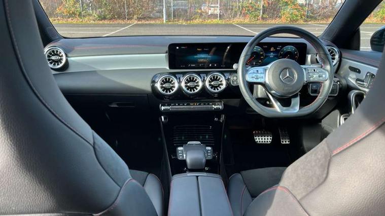 10.25 inch Instrument display with digital cockpit, 10.25 inch touchscreen central media display, Active lane keeping assist, Attention assist - Monitors steering behaviour and long journey fatigue, Blind spot assist, Bluetooth connection, Car wash mode, Cruise control with limiter, Direct steer system with speed sensitive power steering, DYNAMIC SELECT with a choice of driving modes (ECO, Comfort, Sport and Individual), ECO start/stop function, Fluid level warning indicator for fuel, oil, coolant and washer fluid, Hard-disk navigation, Hey Mercedes Voice activation, Lamp failure indicator, Mercedes me connect including emergency call system, accident recovery, breakdown and maintenance management, Mercedes me remote services, Outside temperature gauge, Owners manual and service booklet in English, Pre-installation of private car share, Preinstallation for Mercedes Benz link, Radio aerial integrated into front and rear windshields, Service indicator (ASSYST), Smartphone integration with Apple CarPlay and Android auto, Speed limit assist, Traffic sign assist, Trip computer in multifunction display with current consumption indicator, Lowered comfort suspension, Rear axle multi-link, DAB digital radio tuner, MBUX multimedia system, Mid-range sound system, USB (type C) ports (2) in stowage compartment and 1 in front of centre console, Adaptive brake lights, AMG body styling with AMG front apron and rear apron and visible exhaust tailpipe in chrome trim elements, AMG bodystyling side skirts, Body colour bumpers, Body colour door handles, Chrome beltline strips, Diamond radiator grille pins in chrome, Electric panoramic sunroof with automatic tilt and convenience closing fuinctions, rain sensor auto closing and electronic roller sunblind, Electric windows, Electrically adjustable and heated door mirrors with integrated LED indicators, Exhaust system with 2 Visible tailpipe trim elements and rear apron with trim in chrome, Headlamp assist automatic headlamp activation, Heated glass rear windscreen + timer control, High level LED third brake light, Integrated LED daytime running lights, Interior mirror with black reading lamps and frameless, LED tail lamp, Multibeam LED headlamps with adaptive highbeam assist plus, Privacy glass with dark tinting on rear side windows and rear window, Rain sensing windscreen wipers with two sensitivity settings, Rear boot, Rear fog lamp, Rear side wing doors, Variable front intermittent wipers, Window line trim strip in chrome, 3 seat bench in 2nd row, 3 spoke flattened bottom nappa leather multifunction steering wheel with perforated leather in grip area, 40:20:40 split folding rear seat backrests, Air conditioning - Two zone thermotronic luxury automatic climate control with display, Air vents with surround in silver chrome, Artico man-made leather upholstery, Automatic child seat recognition sensor, Black roof lining, Brushed stainless steel sports pedals with rubber studs, Electrically adjustable front memory seats including lumbar support, Floor mats with stitched AMG lettering, Front centre armrest with stowage, Galvanished gear shift paddles on steering wheel, Heated front seats, Illuminated front door sills with changeable cover, Illuminated glove compartment stowage, Interior lighting - 64 colour Ambient lighting, Luggage net on driver/front passenger seat backrest, Manually adjustable front seats, Manually height and reach adjustable steering column, Rear armrest with two integral cup holders for drinks, Rear head restraints, Single front passenger seat, Sport seats with fixed head restraints, Stowage compartment in centre console with retractable cover, Sunvisors with illuminated vanity mirrors, Touchpad on center console, Twin front cupholders, Two outer rear seat isofix and top tether child seat fixing points, Keyless go comfort pack - CLA, Light and sight pack - CLA, Mirror pack - CLA, Night package - CLA, Parking package - CLA, Active bonnet pedestrain safety measure which detects an impact and raises bonnet by 65mm, Active brake assist includes forward collision warning system with autonomous braking, Adaptive brake assist with hold function and hill start assist, Anti lock braking system (ABS) with brake assist, Black seat belts, Bonnet with power domes, Brake pad wear warning indicator, Childproof locks manually operated for rear doors and electrically operated for rear power windows, Crash responsive emergency lighting, Driver and front passenger head and sidebags, Driver and front passenger windowbags, Drivers knee airbag, Dual stage driver and front passenger airbags, Electric parking brake, Electronic stability programme with acceleration skid control, ESP curve dynamic assist, Exit warning, Front and rear seatbelt reminder, Front passenger seat occupancy sensor, Three point rear seat belts, Tyre pressure monitoring system, Warning triangle and first aid kit, Guard 360 degree guard vehicle protection system with immobiliser and interior protection, Remote central locking and crash sensor with emergency opening function, Light aluminium with longitudinal grain interior trim, 19" AMG multi-spoke black painted light alloy wheels with high sheen rim finish, Summer tyres, Tirefit tyre sealant kit,