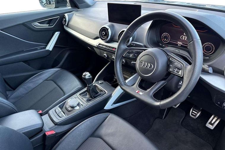 Audi connect navigation and infotainment includes innovative services, Audi connect remote and control connects your vehicle to your smartphone, Audi drive select, Audi drive select with efficiency, Audi smartphone interface, Audi virtual cockpit, Automatic start/stop system with recuperation, Bluetooth interface includes bluetooth audio streaming, Cruise control, E-call, MMI navigation plus with MMI touch, Power operated tailgate, Progressive steering, Rear parking sensors, 2 x SDXC card reader, 6 passive loudspeakers, DAB Digital radio, DVD Drive, Auto dimming rear view mirror, Black window trims, Bumper in full body colour paint finish, Electrically adjustable, folding, auto dimming and heated door mirrors with integrated LED side indicators, Front windscreen with grey tinted sunband, LED daytime running lights, LED headlights with LED rear lights, LED third brake light, Privacy glass - dark tinted rear and rear side windows from B-pillar backwards, Rear side wing doors, Rear wiper, Variable front intermittent wipers, Wheel arch trims in manhattan grey, 12V socket in front, 3 seat bench in 2nd row, 3 spoke flat bottomed multi-function leather sport steering wheel, 4-way electric lumbar support for front seats including seat height adjustment for both front seat, 60/40 split folding rear seat bench, Black cloth headlining, Front and rear head restraints, Front centre armrest, Front/rear floor mats, Height/reach adjust steering wheel, Illuminated door sill trims with S logo, Single front passenger seat, Stainless steel pedals, Black styling pack - Q2, 3x3 point rear seatbelts, 6 airbags - Front, curtain and front side airbags, Electromechanical parking brake, Electronic stabilisation control including ABS, ASR and EDL, Front passenger airbag deactivation, Hill hold assist, Pre-sense front with pedestrian recognition, Seatbelt monitoring, Tyre pressure warning light, Warning triangle and first aid kit, Anti theft alarm, Anti theft wheel bolts, Manual child locks, Remote central door locking, Aluminium interior element, Matt brushed aluminium trim inlays, Tool kit,