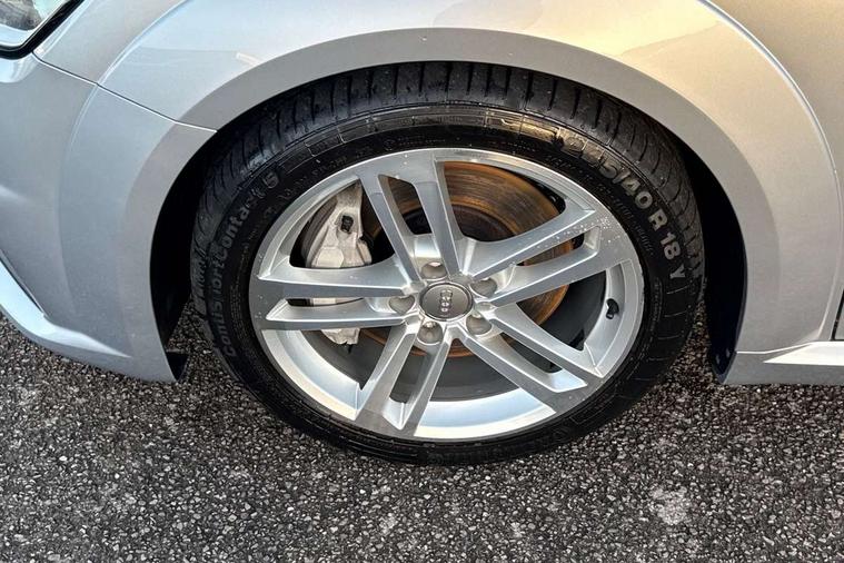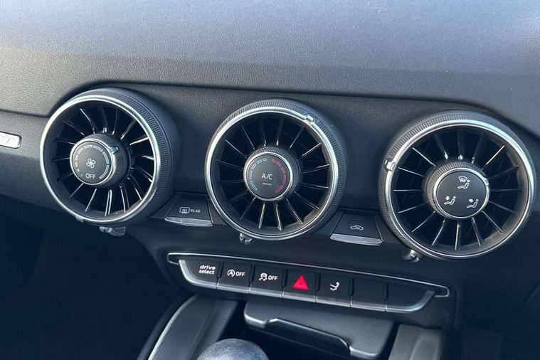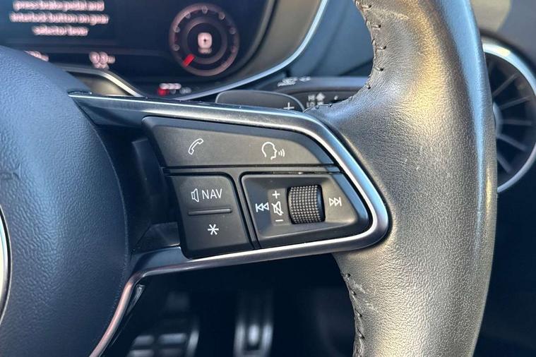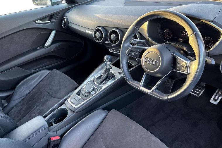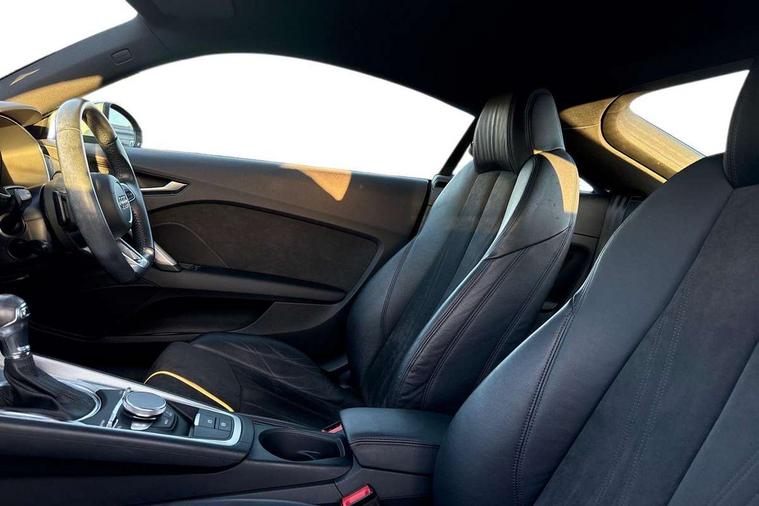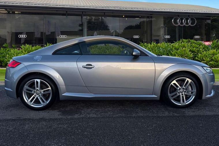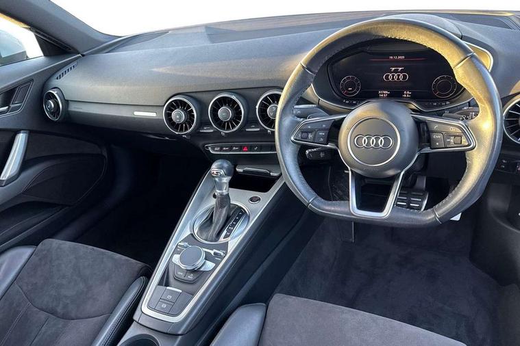 Audi drive select with 4 Pre configured modes, Audi smartphone interface, Audi virtual cockpit - 12.3" high-resolution LCD display with fully customisable instrument cluster, Cruise control + speed limiter, MMI touch panel, Mobile phone preparation with bluetooth interface, Progressive power assisted steering, Service interval indicator, Start/Stop system with energy recuperation, TP memo, Sports suspension, AM/FM radio, Bluetooth audio streaming, DAB Digital radio, MMI Radio with CD player and SD/XC card slot, Auto dimming rear view mirror, Body colour bumpers, Body colour electrically adjustable and heated door mirrors with built in LED side indicators, Electric folding door mirrors, Electric front windows, Front fog lights, Green tinted heat insulating glass, Light and rain sensors, Retractable rear spoiler, Sunband for windscreen, Xenon headlights with LED daytime running lights with automatic headline range control + LED rear lights, brake lights and rear indicators, 12V socket, 3 spoke flat bottomed high multi-function leather sport steering wheel with gearshift paddles, Alcantara/Leather upholstery includes seat centre panels, door trim inserts in black Alcantara with side bolsters, head restraints in black leather, Aluminium door sill trims, Front centre armrest, Front sports seats, Heated front seats, Height adjustable driver's seat, Height adjustable front head restraints, Height/reach adjust steering wheel, ISOFIX child seat mounting for front passenger seat with airbag deactivation, Rear head restraints, Rear top tether child seat ISOFIX attachment, Split folding rear seat, Tool kit, Non smoking pack - TT/TT RS, 3 point front seat belts, ABS, ASR traction control, Curtain airbags, Driver and front passenger airbag with front passenger airbag deactivation, EDL traction control, Electromechanical parking brake, ESP, First aid kit, Front side airbags, Head airbags, Hill hold assist, Seatbelt warning, Tyre pressure loss indicator, Warning triangle, Anti theft alarm, Anti theft wheel bolts, Immobiliser, Keyless Go, Remote central locking, Aluminium design inlays, Tyre repair kit,