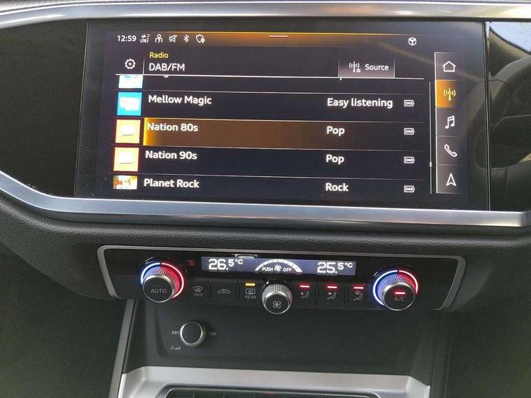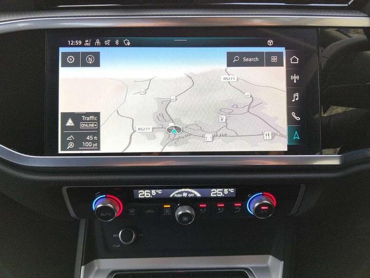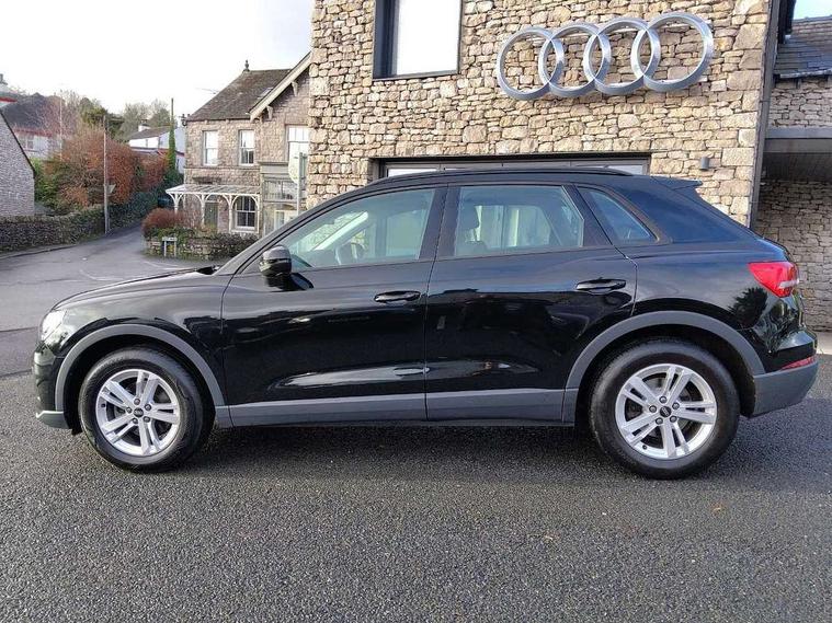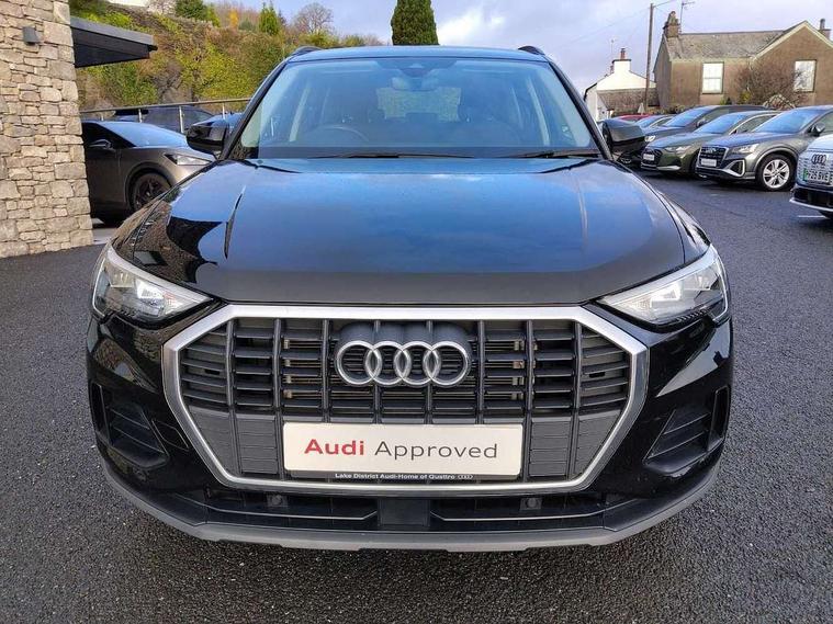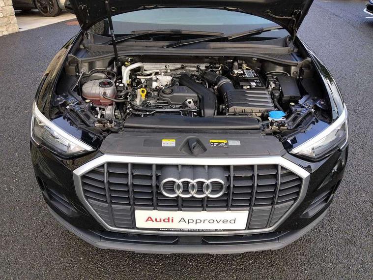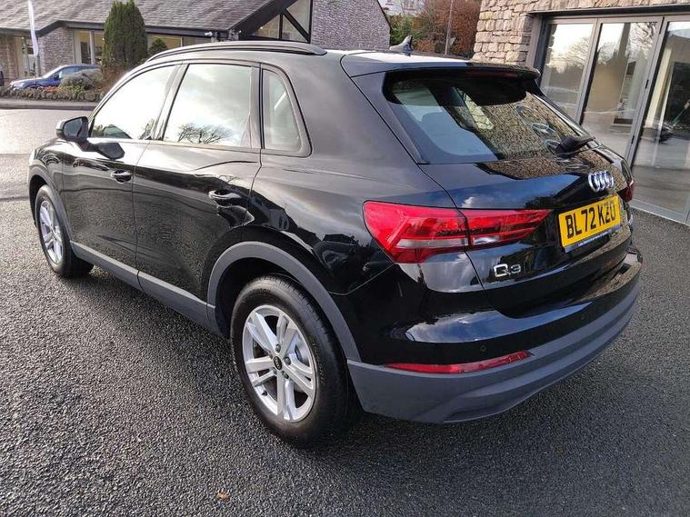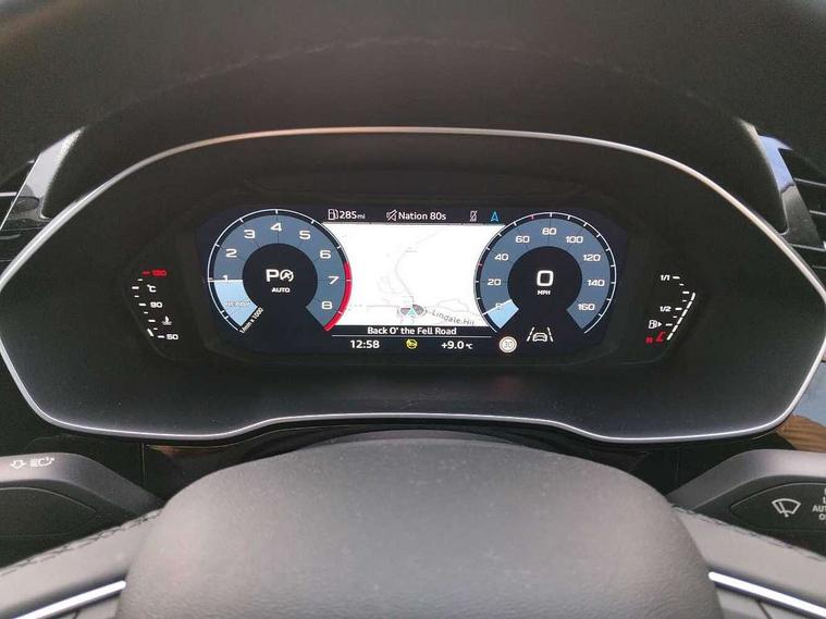 Amazon alexa Integration, Audi drive select, Audi lane departure warning, Audi Virtual Cockpit - 10.25" display, Bluetooth interface, Camera based traffic sign recognition, Legal emergency call, MMI Navigation Plus with high resolution 10.1 inch touchscreen colour display, Power operated tailgate, Progressive steering, Service interval indicator, Smartphone interface includes wireless Apple carplay/Android Auto, Start stop system with recuperation, Voice control system with natural language interaction, Standard suspension, 2 USB-C ports with charge and data functions, 6 passive loudspeakers, DAB digital radio module, Acoustic windscreen, Auto dimming frameless rear view mirror, Black roof rails, Body colour door mirrors, Diffuser in grained anthracite, Electrically folding, adjustable and heated door mirrors with integrated LED side indicators and kerb view function for passenger side, Exterior bumper with wheel arch trims and side sill trims in grained black matt, Front and rear electric windows, Grained radiator protective grille, Halogen rear lights, LED headlights with LED daytime running lights, Rain and light sensors, Rear side wing doors, Rear wiper, Third brake light, Variable front intermittent wipers, 12V socket in rear centre console, 3 seat bench in 2nd row, 3 spoke multi-function leather steering wheel, 40:20:40 folding with manual adjustment for 60:40 forwards/backwards position and backrest angle, Dual zone electronic climate control, Front and rear floor mats, Front and rear headrests, Front and rear roof module including reading lights, Front centre armrest, Glove compartment lighting, Height and reach adjustable steering wheel, ISOFIX child seat mounting for front passenger with airbag deactivation and outer rear seat including top tether attachment point for outer rear seats, Luggage compartment light, Lunar silver cloth headlining, Manual front seats with height adjustment, Single front passenger seat, Stainless steel luggage compartment sill finisher, Non smoking pack - Q3, 3x3 point rear seatbelts, 6 airbags - Driver, front passenger, curtain and side windows, Audi pre-sense front with pedestrain and cyclist recognition, Electrically operated child locks on rear doors, Electromechanical parking brake, Electronic stabilisation control including ABS, ASR and EDL, Front seatbelt reminder, Hill descent control, Hill hold assist, Pre sense basic, Seatbelt monitoring, Tyre pressure warning, Warning triangle and first aid kit, Anti theft alarm, Anti theft wheel bolts, Immobiliser, Remote central locking, Detail dashboard around MMI touch colour display in glass look, black with surround in aluminium look, Micrometallic silver inlay, 17" 5 twin spoke design alloy wheels,
