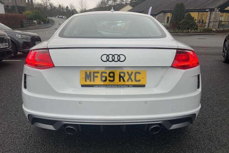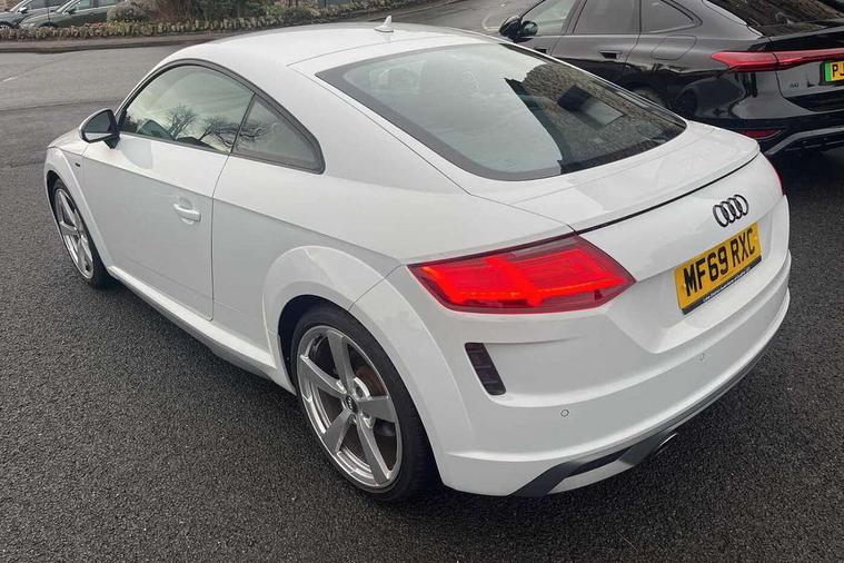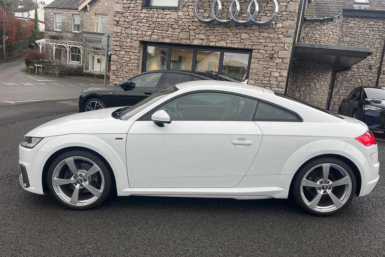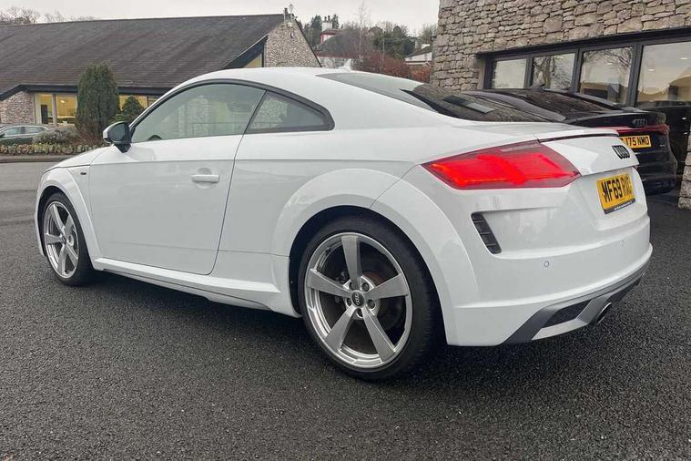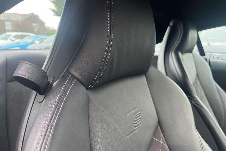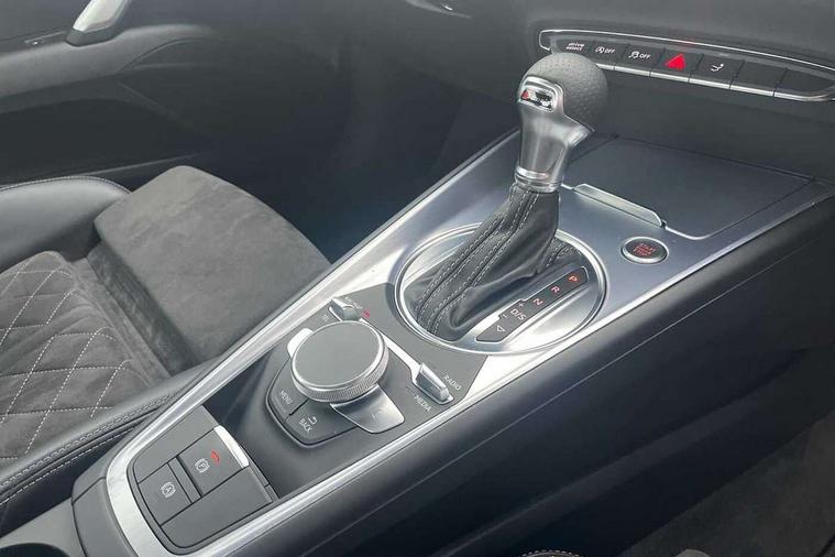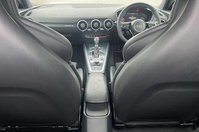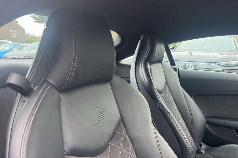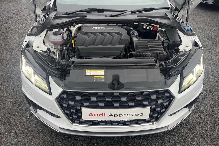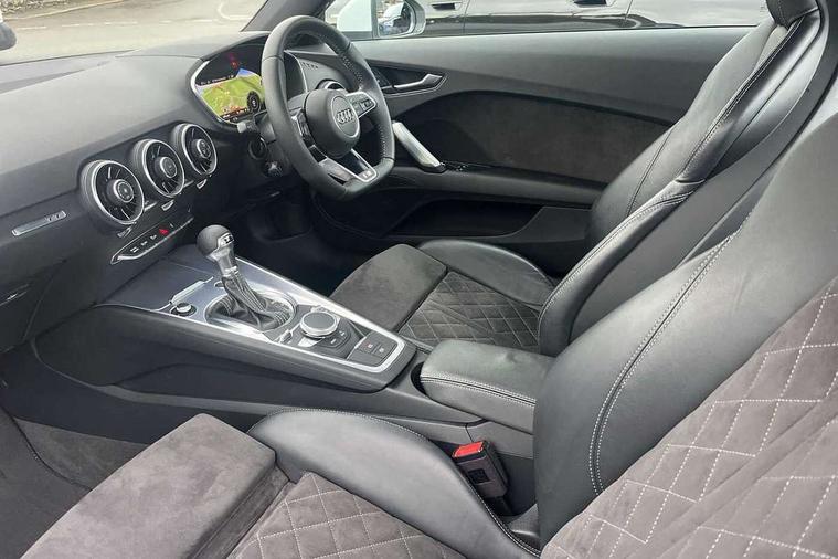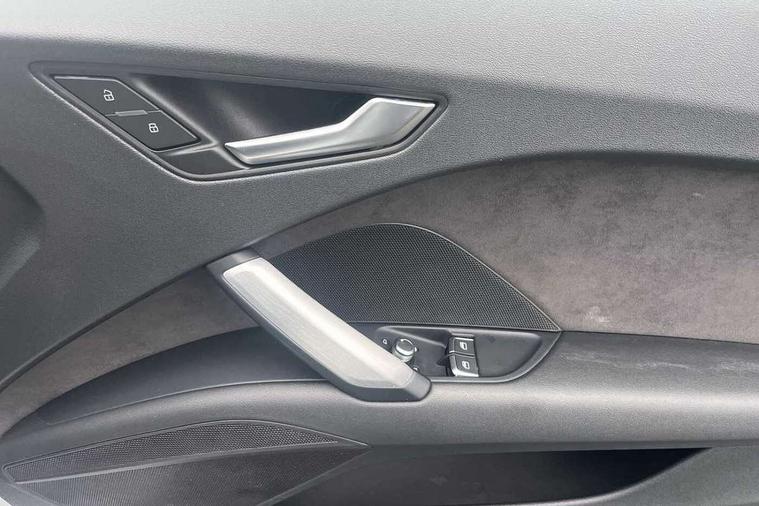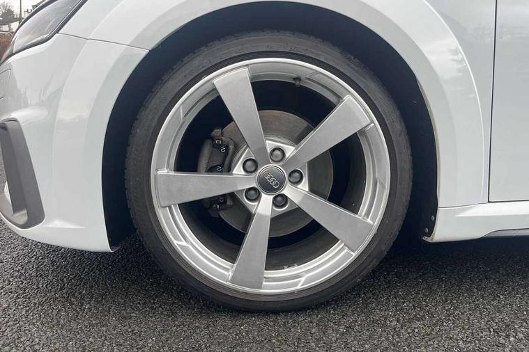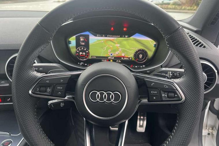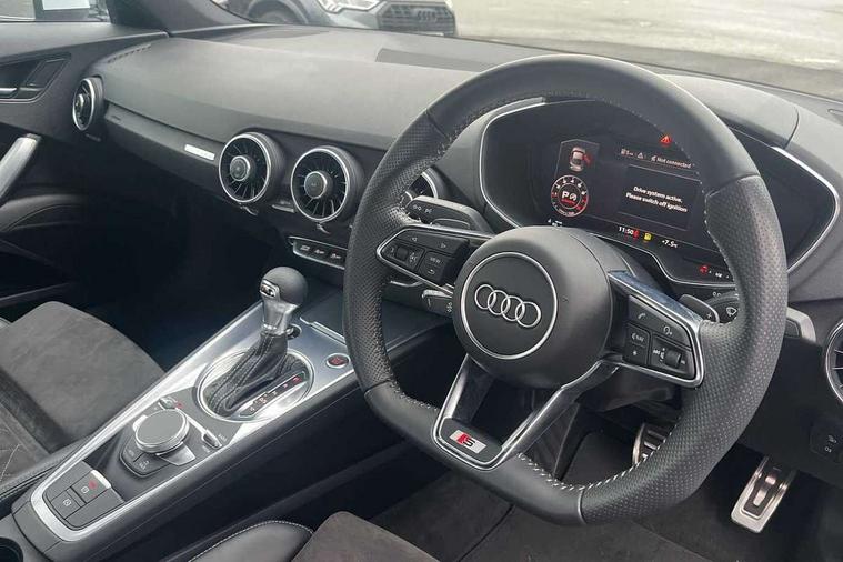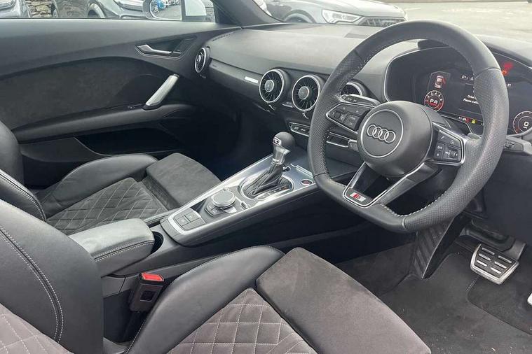 Audi drive select with 4 Pre configured modes, Audi virtual cockpit - 12.3" high-resolution LCD display with fully customisable instrument cluster, Cruise control + speed limiter, MMI touch panel, Mobile phone preparation with bluetooth interface, Progressive power assisted steering, Service interval indicator, Start/Stop system with energy recuperation, TP memo, S line sports suspension, AM/FM radio, Audi music interface, Bluetooth audio streaming, DAB Digital radio, MMI Radio with CD player and SD/XC card slot, Auto dimming rear view mirror, Auto headlight range control, Body colour bumpers, Body colour electrically adjustable and heated door mirrors with built in LED side indicators, Dynamic rear indicators, Electric folding door mirrors, Electric front windows, Front fog lights, Green tinted heat insulating glass, Headlight wash system, High gloss black radiator grille, LED daytime running lights, LED headlights with LED rear lights + dynamic rear indicators, Light and rain sensors, Retractable rear boot spoiler, S line badges on front wings, S Line body styling, S Line front and rear bumpers, S line rear diffuser with platinum grey insert, S line sill plates, Sunband for windscreen, 12V socket, 3 spoke flat bottomed high multi-function leather sport steering wheel with gearshift paddles, 4 way electric lumbar support for driver and front passenger, Air conditioning, Black headlining, Door sill trims with S line logo, Extended aluminium look with stainless steel pedals, Front centre armrest, Front super sports seats, Heated front seats, Height adjustable driver's seat, Height adjustable front head restraints, Height/reach adjust steering wheel, ISOFIX child seat mounting for front passenger seat with airbag deactivation, Perforated leather gearknob, Rear head restraints, Rear top tether child seat ISOFIX attachment, S Line badge on steering wheel, Split folding rear seat, Top tether anchor plate for isofix child seat, Non smoking pack - TT/TT RS, 3 point front seat belts, ABS, ASR traction control, Brake energy regeneration, Curtain airbags, Driver and front passenger airbag with front passenger airbag deactivation, EDL traction control, Electromechanical parking brake, ESP, First aid kit, Front side airbags, Head airbags, Hill hold assist, Seatbelt warning, Tyre pressure warning, Warning triangle, Anti theft alarm, Anti theft wheel bolts, Immobiliser, Keyless Go, Remote central locking, Matt brushed aluminium inlays, Tool kit, Tyre repair kit,