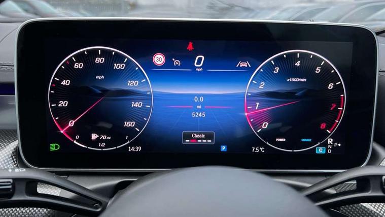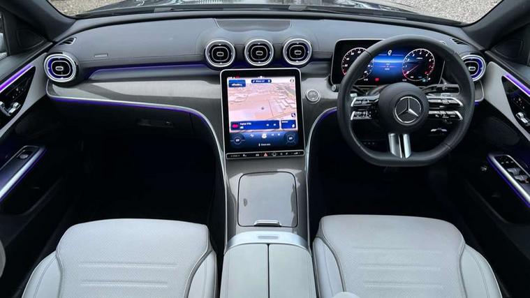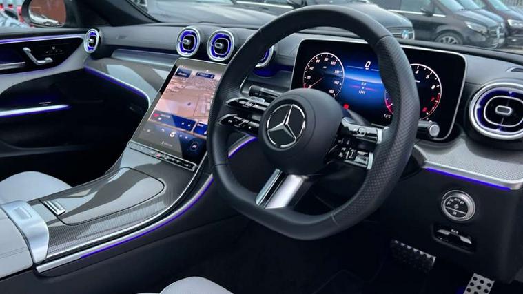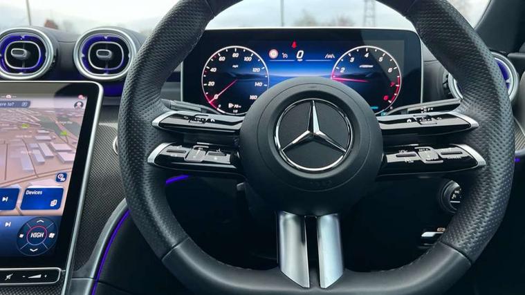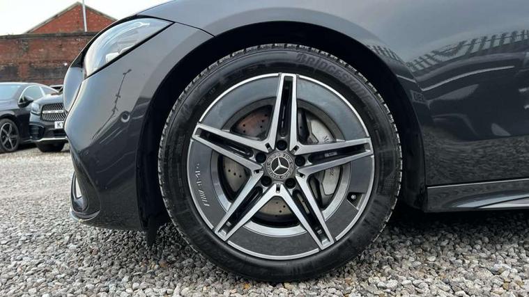 11.9" high resolution multimedia colour display, 12.3" digital instrument cluster display, Active lane keeping assist, Active parking assist with PARKTRONIC, Attention assist, Blind spot assist, Cruise control with speedtronic variable speed limiter, DYNAMIC SELECT with a choice of driving modes (Comfort, ECO, Sport, Sport+, Individual), E-call, Extended MBUX functions, Finger print sensor, Fluorescent jacket for driver, Hard disc navigation, MBUX navigation premium, Mercedes me remote services, Outside temperature gauge, Service indicator (ASSYST), Smartphone integration, Sports direct steer speed sensitive steering, Status display for rear seat belts in instrument cluster, Traffic sign assist, Wireless charging system for mobile devices, 66 litre fuel tank, 9G TRONIC 9 speed automatic transmission, Petrol Particulate Filter, Sport suspension, DAB Digital radio, MBUX multimedia system, Adaptive brake lights, Adaptive high beam assist, AMG body styling front apron, rear apron and side skirts, AMG Line exterior, Body coloured bumpers, Body coloured door mirrors, Electric windows with one touch opening/closing and obstruction sensors, Electrically adjustable and heated door mirrors, Heat insulating dark tinted glass, LED daytime running lights, LED high performance headlamps, LED Indicators, LED tail lights, LED third brake light, Radiator diamond grille with integrated Mercedes Benz star with chrome pins, Rain sensor with automatic windscreen wiper activation, Rear boot, Rear side wing doors, Two visible exhaust pipes integrated into rear bumper, 3 seat bench in 2nd row, 40:20:40 split folding rear bench seat, Ambient lighting premium, Ambient lighting with projection of brand logo, AMG floor mats, AMG line interior, Artico man-made leather upholstery, Auto Mercedes-Benz child seat recognition sensor, Black roof liner, Double cupholder in centre console, Electrically height/reach adjustable steering column, Folding rear seat backrest, Front and rear head restraints, Gearshift paddles on steering wheel, Heated front seats, Illuminated door sills with Mercedes Benz lettering, Illuminated glove compartment stowage, Multifunction sports steering wheel in nappa leather, Rear top tether child seat ISOFIX attachment, Single front passenger seat, Sports seats, Sunvisors with illuminated vanity mirrors, THERMATIC 2 zone automatic climate control, Interior light package - C Class, Memory package - C Class, Mirror package - C Class, Parking package with reversing camera - C Class, Stowage space pack - C Class, USB package plus - C Class, 3 rear 3 point seatbelts, Active bonnet pedestrian safety measure which detects an impact and raises bonnet, Active brake assist, Adaptive brake system with HOLD function and brake drying in the wet, Anti-lock braking system (ABS), Black seat belts, Brake calipers with Mercedes-Benz lettering + perforated front brake discs, Child proof door locks, Drivers knee airbag, Drivers pelvis airbag, Dual stage driver/passenger airbags, Electric parking brake, Electronic Stability Programme (ESP), Front centre airbag between driver and front passenger seats, Front side airbags, Tyre pressure monitoring system, Warning triangle and first aid kit, Window airbags for driver, front passenger and rear passenger, Antitheft alarm system, Interior monitoring system and Increased antitheft protection, Central locking with interior switch, automatic locking and crash sensor with emergency opening function, Chrome surround in electric key, Urban guard vehicle protection plus, Dashboard, instrument panel and beltlines in ARTICO man made leather in nappa look, Metal structure trim element with centre console in metal structure finish, 18" AMG 5 spoke light-alloy wheels painted in tantalite grey with high sheen finish, TIREFIT with tyre inflation compressor,