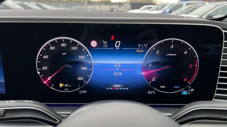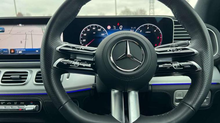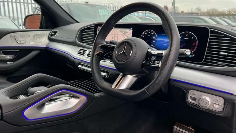 12.3 High resolution wide screen cockpit display with choice of three display styles Classic, Progressive or Sport and unique ambient lighting setting, 360 degree view camera, Active parking assist with PARKTRONIC, Attention assist, Brake wear warning display, Direct steer speed sensitive steering, DYNAMIC SELECT with a choice of driving modes (ECO, Comfort, Sport and Individual), Easy-pack tailgate - Powered opening/closing automatically, ECO start/stop function, Hard-disk navigation, MBUX voice control activated by keywords "Hey Mercedes", Mercedes Benz emergency call system, Mercedes me connect - vehicle set up and monitoring, Outside temperature display, Pre-installation for digital key transfer, Remote boot release, Service indicator (ASSYST), Status display for rear seat belts in instrument cluster, Traffic sign assist, Trip computer in multifunction display showing current fuel consumption, Wireless charging, Wireless smartphone integration including Apple CarPlay and Android auto, 85 litre fuel tank, 9G TRONIC 9 speed automatic transmission, Airmatic air suspension with adaptive damping system, Diesel particulate filter (DPF), Mild Hybrid starter alternator, Additional USB connection, Bluetooth interface for hands free and audio streaming, Burmester surround sound system, DAB digital radio tuner, Front and rear USB ports, Sound personalisation, Adaptive brake lights, AMG bodystyling front and rear aprons, Auto headlights, Automatically dimming rear view mirror, Body coloured bumpers, Electric windows with one touch opening/closing and obstruction sensors, Electrically adjustable, heated, folding exterior mirrors, Exterior styling - front bumper, radiator grille and front air intakes, Heat insulating dark tinted glass, LED 3rd brake light, LED daytime running light signet, LED rear lights, Magic vision control, Multibeam LED headlights with adaptive highbeam assist plus, Radio aerial integrated into rear window, Rain sensing windscreen wipers, Rear side wing doors, Rear wiper, Roof rail system, Top surround of side windows in polished aluminium, Transparent Bonnet, Visible twin pipe exhaust system integrated into bumper, Waistline in polished aluminium, 3 spoke flat bottomed Multifunction sports steering wheel in nappa leather, 4 way adjustable front head restraints and 2 way rear head restraints, 4 way lumbar support for driver and front passenger, 40:20:40 split folding rear seats, AMG floor mats, Artico/Microcut microfibre upholstery, Automatic child seat recognition sensor, Black fabric roof liner, Electric height/reach adjustable steering column, Electrically adjustable front seats with memory function, Front centre armrest with stowage compartment and illuminated grab handles, Gearshift paddles on steering wheel, Glove compartment - lockable, air conditioned and illuminated, Heated front seats, Interior lighting - 64 colour Ambient lighting, Luggage compartment cover, Seat occupancy sensor for front passenger seat, Second row three seats, Single front passenger seat, Sports pedals in brushed stainless steel with rubber studs, Sunvisors with illuminated vanity mirrors, THERMATIC 2 zone automatic climate control, Touchpad, Keyless go comfort package - GLE, Night package - GLE, Active bonnet, Airbags - driver and front passenger, front sidebag, pelvis bag and window airbags, Anti-lock braking system (ABS), Black seat belts, Childproof locks manually operated for rear doors and electrically operated for rear power windows, Drivers knee airbag, Electronic parking brake, Electronic Stability Programme (ESP), ISOFIX child seat points with automatic child seat recognition, Perforated front brake discs and brake calipers with Mercedes-Benz lettering, Pre safe impulse side, Three point rear seat belts, Tyre pressure monitoring system, Warning triangle and first aid kit, Alarm system/interior protection/immobiliser, Central locking with interior switch, automatic locking and crash sensor with emergency opening function, Chrome surround in electric key, Guard 360 degree vehicle protection plus, Brushed aluminium trim elements, Dashboard and door beltlines in ARTICO man made leather with contrast top stitching, 21" AMG 5 twin spoke light alloy wheels painted in bi colour, TIREFIT with tyre inflation compressor,