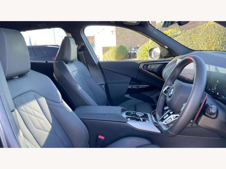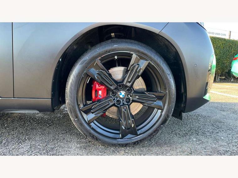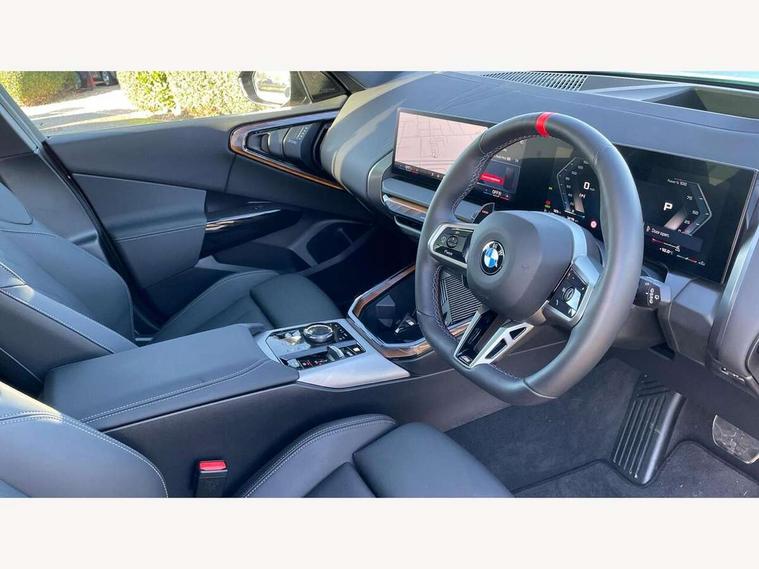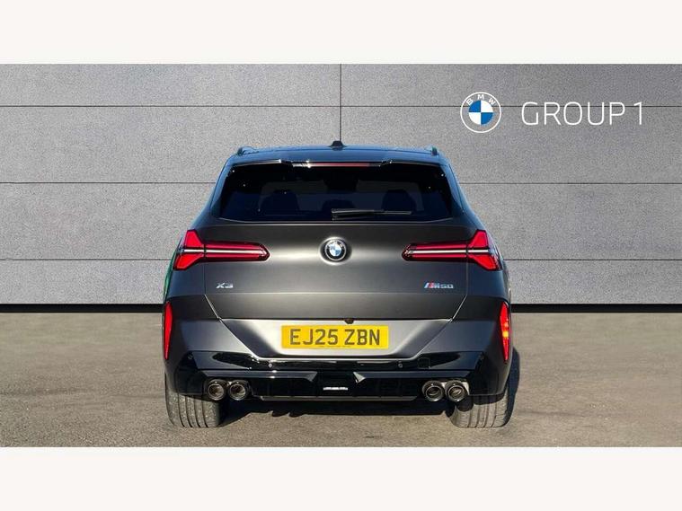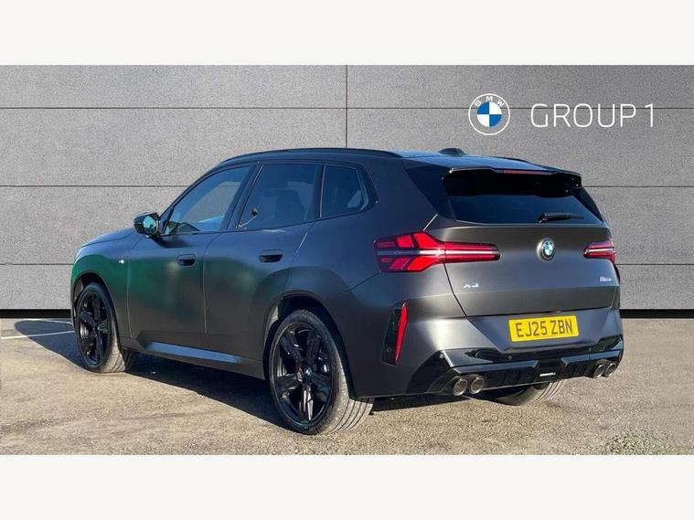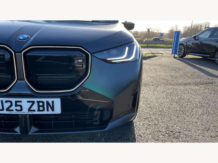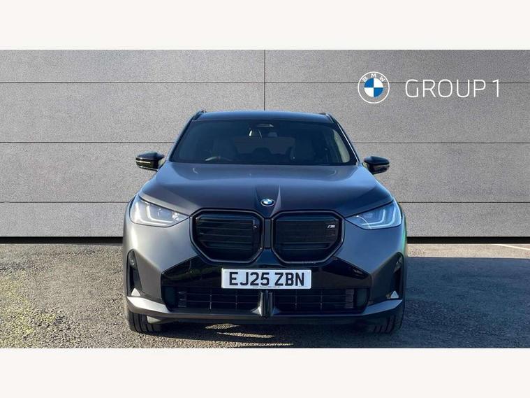 Active guard professional, Attentiveness assist, Automatic operation of tailgate, BMW ConnectedDrive online services, BMW iDrive, BMW Live cockpit plus, BMW Online services, BMW Teleservices, Brake pad wear indicator, Condition based service, Cruise control with brake function + speed limiter, Drive off assistant, Driving Assistant Plus Preparation, Flat tyre monitor, Language version English, My Mode - Personal, Efficient, Sport, Relax, Expressive, Reversing assist camera, Servotronic system, Variable sport steering, Dynamic stability control, Multiple control arm rear axle, Steptronic transmission with gearshift paddles, Two-joint strut-type front axle with tension strut, DAB tuner, Personal eSim, 4 tailpipe tips, Adaptive LED Headlights, B-pillar trim panel in black high-gloss, BMW badge on front and rear, BMW M-specific front/rear bumpers and side sills, BMW M-specific radiator grille with horizontal bars in Dark Silver and M logo, Body colour mirror caps, Daytime running lights, Door handles flush to the surface with lock barrel on driver's side, Dynamic brake lights, Electric adjustable and heated door mirrors, Electric window trap release and convenient opening/closing feature, Headlight beam throw control, Heated rear window, Heated windscreen washer jets, High beam assistant, LED 3rd brake light, LED rear lights, LED tail lights, LED turning indicators, Locking of the doors, M-specific Exterior mirrors, Mirror base and mirror blade in satinised aluminium, Mirror triangle in black high-gloss, Model inscription on right tailgate, Rain sensor with automatic headlight activation, Rear side wing doors, Rear wiper, Reversing light, Side window frame in black high-gloss, Sun protection glass, Windscreen wipers, 12v power socket in front centre console and luggage compartment, 2 x USB Type C ports for charging and data transmission (front centre console) and 2 x USB Type C ports for charging (rear centre console), 3 rear headrests, 3 seat bench in 2nd row, 3 zone automatic air conditioning, 40:20:40 split folding rear seat with loading system, Ambient lighting, Anthracite headlining, Electric adjustable seats with memory function, Floor mats in velour, Footrest and pedals in black plastic, Four grab handles integrated in roof lining, Front armrest with integrated control panel, Front centre console trim in black high-gloss, Front head restraints, Front passenger seat, Front sports seats, Glove compartment, i-Size / ISOFIX attachment points on both outer rear seats, with covers in black, Interior door handles in dark chrome, Luggage compartment separating net, M sport leather steering wheel, Multifunction steering wheel, Rear side armrests integrated into door trim, Selector lever with toggle operation, Steering column adjustment, Sun visors with illuminated vanity mirrors, Three upper retaining strap clips integrated into the rear panels of the seat backrests, Through loading system, Two front cupholders and two in the rear center armrest, Wireless charging tray, BMW Iconic Glow exterior package - X3, Connected pro package - X3, Interior and exterior mirror package - X3, M Sport pro pack - X3, 3 point seatbelts, Airbag deployment is controlled with respect to the intensity and scope, Anti-lock braking system (ABS), Automatic hold function, BMW emergency call, Brake assist, Brake drying, Brake energy regeneration, Braking readiness, Central airbag, Child locks on rear doors, Cornering brake control (CBC), Crash Sensor - activation of central locking release, hazard warning light and interior lighting, Driver and front passenger front and side airbags, Dynamic brake control, Electromechanical parking brake, Front and rear disc brakes, Head airbags, Integrated braking system, M sport seatbelt, Post Crash Collision Warning with braking function, Trailer stability control, Tyre pressure sensor, Warning triangle, Alarm system, Closing system with central locking, Comfort access system with BMW digital key plus, Locking wheel bolts, Start/stop button with keyless motor start with acoustic drive, Tyre repair kit plus,