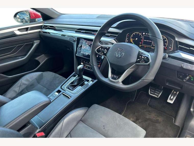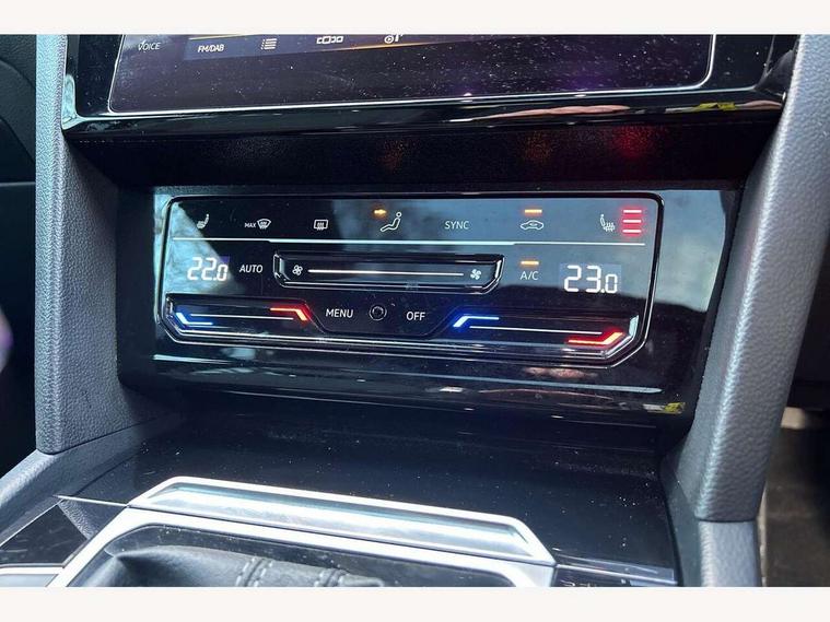 Adaptive cruise control (ACC) with speed limiter, front assist (reacting vehicles pedestrian and cyclists) and follow to stop, App connect including wireless Apple CarPlay, Camera for warning system, Digital cockpit with 10.25" high resolution TFT display screen with customisable menus and information, Driver alert system with fatigue detection, Driver profile selection including ECO function, Dynamic road sign display, eCall - Emergency call service for SOS calls to emergency response, Emergency assist, Hands free boot opening, Press and drive key, Progressive steering, Speedo and rev counter, electronic odometer, trip, service interval display and exterior temperature gauge, Travel assist - Lane keeping assist and traffic jam assist, Voice activation for telephone and navigation, Start/stop function with battery regeneration, Premium USB cable in choice of either Apple or Android smartphone compatibility, Auto dimming interior rear view mirror, Automatic headlights, Body colour door handles, Body colour side skirt, Body coloured top and matt black lower door mirrors with integrated indicators, Chrome plated radiator grille inserts and light switch surrounds, Chrome side window surrounds, Dynamic headlight range control, Electric folding door mirror, adjustable, heated with front passenger exterior mirror lowering function, Front and rear electric windows, Front and rear stainless steel door sill protection, Front windscreen washers and wipers with 4x interval delay, Heat insulating side and rear windows, Heated rear windscreen, Heated windscreen washer jets, High level 3rd brake light, LED rear combination lamp with dynamic indicators, LED rear number plate lights, Panoramic sunroof with tilting and sliding including integrated roller blind, R Line design body coloured bumpers, Rain sensor, Rear fog lamp on one side and reversing lamp on both sides, Rear side wing doors, Rear tinted glass from B pillar backwards, approx 65% tinted, Rear wash/wipe, Tailpipes behind rear bumper, 12V socket in front centre console, 12V socket on rear of front centre armrest, 3 rear head restraints, 3 seat bench in 2nd row, 30 colours options interior ambient lighting, 60:40 split folding rear seat backrests with centre armrest, Air care climatronic 3 Zone electronic air conditioning with automatic air recirculation, Black roof lining, Chrome trim on upper and lower air vents extending across cockpit, Driver and front passenger sunvisor with vanity mirror, Front + rear carpet mats, Front cupholders x 2, Front footwell illumination, Front sports comfort seats, Glovebox, Heated front seats, Height/reach adjust steering wheel, Isofix child seat preparation easy fit for two outer rear seats, Luggage compartment lighting, Removable luggage compartment cover, Single front passenger seat, Split folding front seat backrest with front centre armrest, Stainless steel pedals, Two LED front reading light, 3 rear three point seatbelts, ABS+EBD+Brake assist, Child locks on rear doors, Driver airbag and front passenger airbags with deactivation switch including driver knee airbags, Electronic parking brake, Electronic stability control (ESC) and Electromechanical brake booster, Front disc brakes, Front side airbags with curtain airbags, Hill start assist, Pro active occupant protection to detect critical situations with elevated accident potential from the front, Rear disc brakes, Three point height adjust front seatbelts + pretensioners, Two tone horn, Tyre pressure loss indicator, Warning buzzer for seatbelts if unfastened, Warning triangle, Alarm with interior protection with deactivation via infotainment system, Electronic engine immobiliser, Keyless entry system including start/stop button on centre console, Aluminium decorative inserts, Chrome trim on lower doors in front and rear, Leatherette insert on door and side trim panel in foam film, Piano black decorative inserts in centre console,