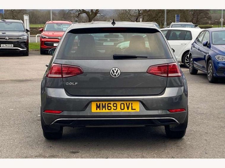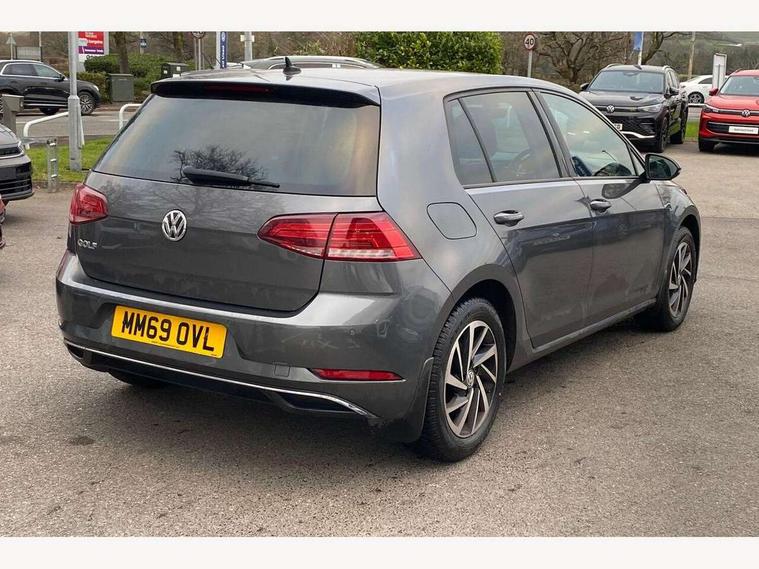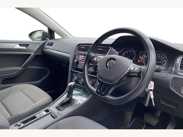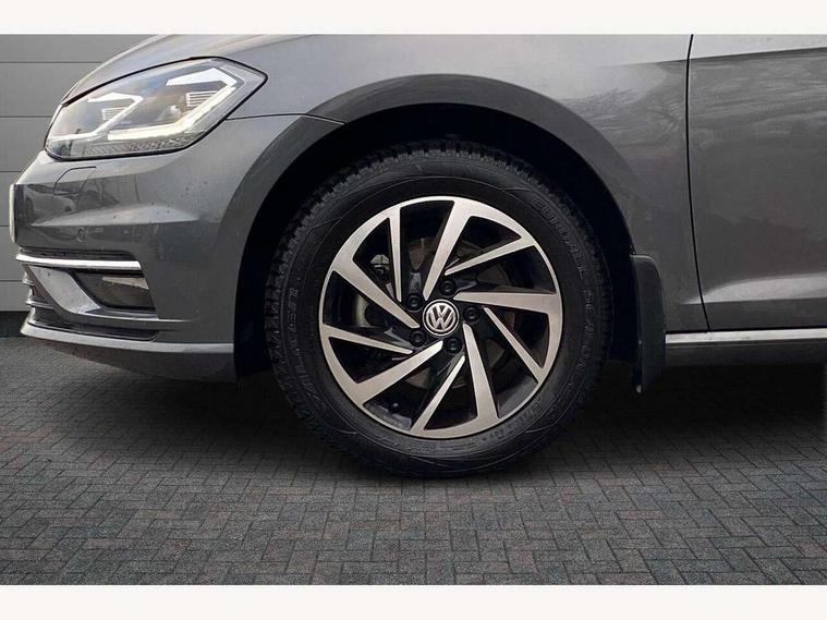 'Lights On' Reminder warning buzzer, ACC - Adaptive cruise control with front assist, forward collision warning, distance monitoring, city emergency brake and speed limiter, Bluetooth telephone and audio connection for compatible devices, Brake pad wear indicator warning light, Driver alert system, Driving Mode Selection with four preset modes - Eco, normal, sport or individual modes, Multifunction computer with visual gear change recommendation for fuel consumption, Power assisted speed sensitive electro-mechanical steering, Push tank flap, Speed limit display, Speedo, rev counter, electronic odometer, trip, service interval display, exterior temperature and fuel gauge, Stop/start system, Think blue trainer driver tips and journey analysis, Warning buzzer and light for front seatbelts unfastened, Battery regeneration during braking, XDS electronic differential lock, Composition media system, DAB Digital radio receiver, Driver Personalisation profile selection, MP3/WMA compatability, Multi device interface (MDI) via USB connection, Premium USB cable in choice of either Apple or Android smartphone compatibility, SMS Functionality, Title and cover art display, USB and SD card connectivity, Volkswagen media control, Black front air intake and radiator grille with chrome insert, Black rear diffuser, Body colour bumpers, Body colour door handles, Body colour door mirrors with integrated indicators, Dusk sensor + automatic driving lights, Electric front windows, Electric rear windows, Electrically adjustable and heated door mirrors, Fully galvanised body, Heated rear windscreen, High level 3rd brake light incorporating LED Technology, LED front fog lights with static cornering light function, Range adjustable headlights via infotainment system with LED daytime running lights, Rear fog lamp, Rear number plate lights incorporating LED technology, Rear tinted glass 65% light absorbing from B pillar backwards, Rear window aerial, Rear window wash/wipe with intermittent wipe, Reflectors in all doors, Tailgate with integrated rear roof spoiler, Windscreen wipers/ intermittent wipe + 4 position delay, 12V socket in luggage compartment, 3 rear headrests, 4 load lashing points in luggage compartment, 60/40 split folding rear seat backrest, Bag hook in luggage compartment x 2, Climate control - 2 zone electronic air conditioning with automatic air recirculation and allergy filter, Cooled glovebox, Cover for storage compartment in centre, Dust/pollen filter, Front and rear reading lights X 2, Front centre armrest with storage compartment and two rear air vents, Front seat back storage pockets, Grab handles front x 2, rear x 2 with integrated coat hooks, Height and reach adjustable steering wheel, Illuminated vanity mirrors, Instrument lighting white adjustable panel illumination, Interior light delay, Isofix preparation for 2 rear child seats, Load through provision with rear centre armrest and cupholders x2, Luggage compartment lighting, Overhead storage box, Pearl grey headlining, Storage box in luggage compartment, Storage compartment in roof console with cover, Storage compartments in centre console, Storage compartments in front doors, Storage compartments in rear doors, Stowable luggage compartment cover, Sun visors, Variable boot floor, height adjustable and removable, Convenience Pack - Golf, Mirror pack - Golf, Winter pack - Golf, 3 rear three point seatbelts, Airbags - Driver's and front passenger's, curtain airbag, Driver's knee, front side impact and passenger's airbag deactivation switch, Anti-lock Braking System (ABS) with Hydraulic Brake Assist (HBA), Automatic post collision braking system, Child locks on rear doors, Driver/Passenger optimised head restraints, Electronic parking brake with auto hold, Electronic stability control (ESC) including Electronic differential lock (EDL) and ASR (Traction control) with deactivation via infotainment system, Front ventilated disc brakes and rear disc brakes, Pre crash preventive occupant protection, Three point height adjustable front seatbelts with tensioners, Tyre pressure loss indicator, Alarm with interior protection and deactivation via infotainment system, Electronic engine immobiliser, Brushed dark silver decorative inserts in dash and door panels, Chrome plated air vent surround, Chrome-plated light switch surround, Polar night black decorative inserts in centre console, Steel space saver spare wheel,