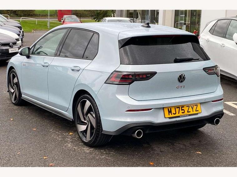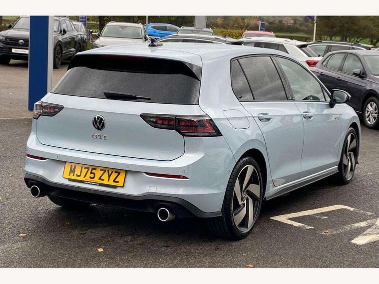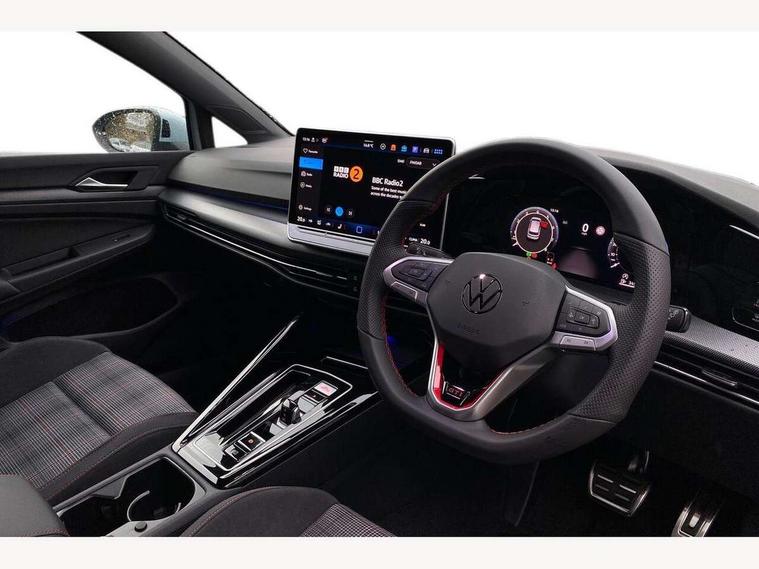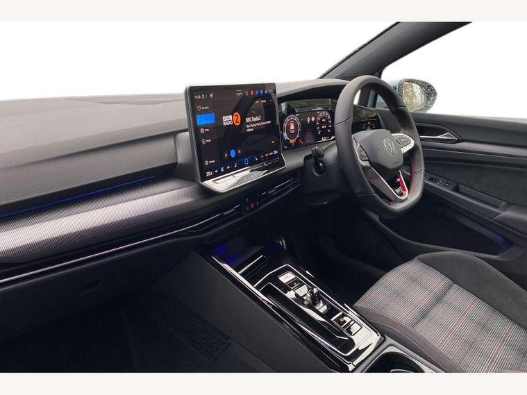 Activated carbon canister, Adaptive cruise control (ACC), Advanced driver attention and drowsiness monitor, Dynamic road sign display, E-Sim card for online connectivity, eCall emergency call system, Multi-color Digital cockpit pro, selection of different info profile possible, Multifunction front facing camera for distance control, Navigation system, Oncoming vehicle braking when turning including swerve support, Side assist blind spot lane change system, rear traffic alert and exit warning system, Speed limiter, Speedo, rev counter, electronic odometer, trip, service interval display, exterior temperature and fuel gauge, Traffic jam assist, Voice enhancer and voice control, Warning signal and warning light for front and rear seatbelts not fastened, We connect plus preparation, We connect preparation, Wireless app connect, Front differential lock, Petrol Particulate Filter, Start-stop system with battery regeneration (recuperation - energy recovery during braking), 2 USB C ports in front, 2 USB charging sockets on the centre console in the rear charging capacity upto 45W, Digital radio reception (DAB), Diversity antenna for FM reception, Gaming platform via car app, Infotainment system with 12.9" display, Mobile phone interface with inductive charging feature, 3rd brake light, Auto dimming rear view mirror, Automatic headlamp activation with Coming home and Leaving home feature, Body colour door handles, Body coloured bumpers, air intake in honeycomb structure, Exterior mirrors convex on the left and aspherical on the right, Front and rear electric windows, Front fog lamps and cornering light, Heat insulating windshield made of laminated glass, Illuminated lighting animation with wake up/goodbye scenario, LED separate daytime running light, Nameplate 'GTI' set, Rain sensor, Rear exhaust tailpipe, Rear fog light on one side and reversing lights on both sides, Rear side wing doors, Rear windscreen washer and wiper with interval delay, Remote electrically foldable door mirrors, puddle lights and reverse activated passenger's door mirror, Welcome light with surround lighting, 12V socket in front centre console, 12V socket in luggage compartment, 3 rear head restraints, 3 seat bench in 2nd row, 30 colour ambient lighting, illuminated center console storage compartment in front, Air care climatronic 3 Zone automatic climate control with rear air conditioning control panel, Aluminium gearshift handle, Brushed stainless steel pedals, Chrome plated radiator grille inserts, air vent surrounds and light switch surrounds, Entry lights, Front + rear black carpet mats, Front centre armrest, ISOFIX anchors for child seats on outer rear bench seats and on front passanger seat compatible for i-Size, Luggage compartment lighting, Rear cupholder and loadthough, Single front passenger seat, Soul black instrument panel, Soul black roof lining, Split folding backrest with centre armrest and unsplit rear seat bench, Sun visors with illuminated vanity mirrors, Driver assistance pack - Golf Estate/Hatchback Auto, Technology park and comfort pro package - Golf Hatchback, 3 point height adj front seatbelts + pretensioners, 3 rear three point seatbelts, ABS, Autonomous emergency braking front assist with pedestrian and cyclist monitoring, Child locks on rear doors, Driver and front passenger airbag with front passenger airbag deactivation, Electronic parking brake with auto hold, ESC (Electronic Stability Control), Extended pedestrian protection measures, Hill start assist, Rear disc brakes, Two tone horn, Tyre pressure loss indicator, Volkswagen roadside assistance, Anti theft wheel bolts, Preparation for alcohol interlock, Decorative inserts carbon grey for dashboard and front door trim panels, Sporty vehicle dynamics, Tool kit for tyre mobility set, Tyre mobility kit Includes 12V compressor and tyre sealant,