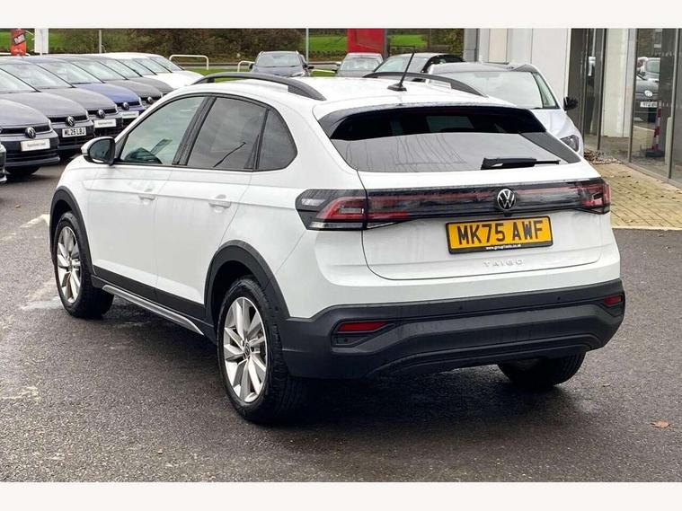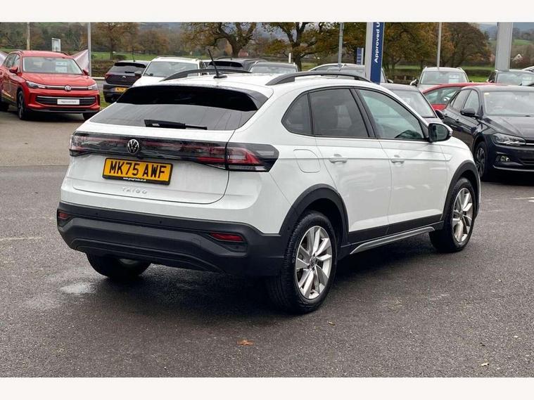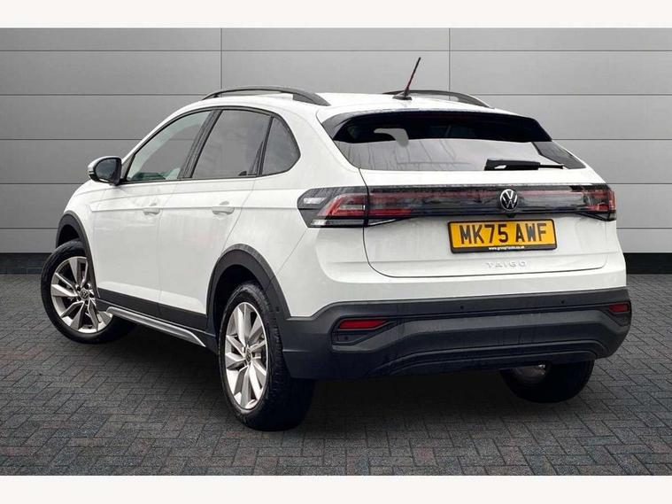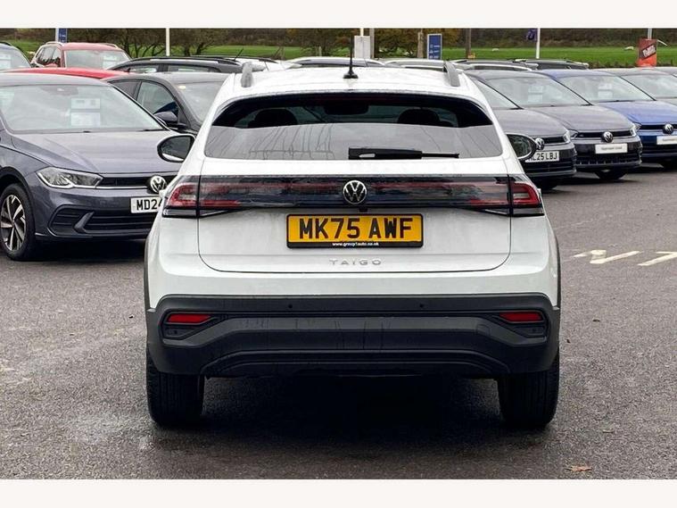 8" Digital cockpit basic display, Adaptive cruise control, Advanced driver attention and drowsiness monitor, Dynamic road sign display, e-Call (emergency call), Power Steering, Rear view camera, Travel assist including emergency assist, Washer fluid level indicator, Wireless Charging including Bluetooth, Start-stop system with battery regeneration (recuperation - energy recovery during braking), Digital radio reception (DAB+), WeConnect plus, Ambient lighting with logo projection, Aspherical driver's exterior mirror, Body coloured bumpers, Body coloured exterior mirror housings and door handles, Electric windows, External USB type C socket and charging sockets, Heat insulating glass windscreen, LED rear combination lamp, LED third brake light, Left convex exterior mirror, Power folding adjustable/heated exterior mirrors and front passenger exterior mirror lowering function, Rear fog light on one side, reversing light on both sides, Rear side wing doors, Rear wash/wipe with intermittent wipe setting, Side windows in heat-insulating glass, from B-pillar and rear window dark tinted, 'Slash/ Austin' Cloth upholstery, 12V socket in centre console, 2 front reading lights, 3 rear head restraints, 3 seat bench in 2nd row, Black carpets, Ceramique headliner, Child seat anchor for child seat system i-Size, 2x top tether and child seat anchor in front on front passenger side, Door and side trim panels in titan black, Driver and front passenger seat height adjustment, Front centre armrest, Handbrake lever handle in leather, Height and reach adjustable steering wheel, Leather trimmed gear knob, Leather wrapped multifunction steering wheel with paddle shift, Luggage compartment floor, Luggage compartment light, Lumbar support for driver's and front passengers seat, Seat covers in titanium black, Single front passenger seat, Split folding backrest with centre armrest and unsplit rear seat bench, Storage compartment under front seats, Sun visors with illuminated vanity mirrors, Titanium black instrument panel, Chrome Package - Taigo, Drivers assistance package - Taigo, Light and sight pack - Taigo, 2 x 3-point seatbelts/outer rear seats with ECE label, 3-point seat belts in front with pretensioner and height adjustment, 3-point seatbelt for centre rear seat, Driver and front passenger airbag with front passenger airbag deactivation, Driver and front passenger safety-optimised head restraints, Electronic stability control, Extended and predictive pedestrian/ cyclist protection, Front and rear disc brakes, Front curtain and side airbags with center airbag, Hill start assist, Manual rear child locks, Single tone horn, Tyre pressure loss indicator, Anti-theft alarm system with interior monitoring, backup horn, and towing protection, Keyless locking and starting system keyless access with safelock, Black (slush) Dashboard, Lava stone black gloss/matt decorative inserts in dash and front door panels, Low rolling resistance tyres,