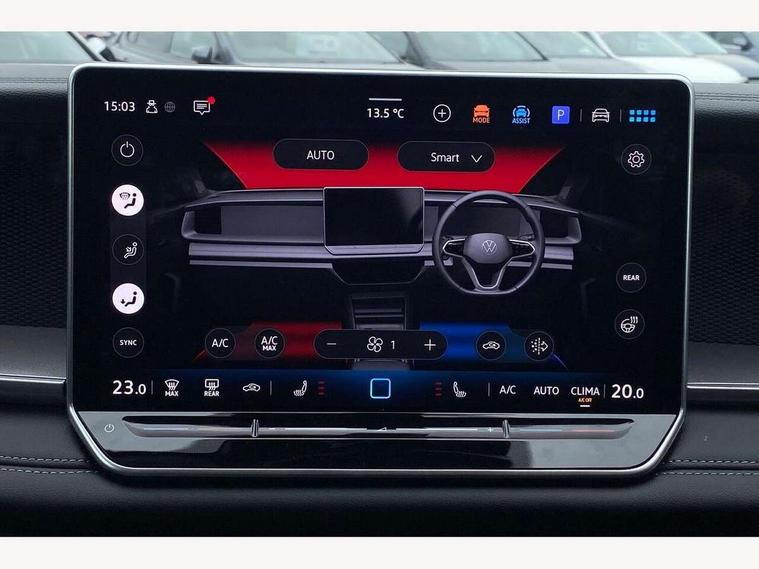 Adaptive cruise control (ACC), Digital Cockpit Pro - 10.25" high resolution dash display screen with customisable menus and information, Driver alert system, Driver attention monitoring system, Dynamic road sign display, E-Sim card for online connectivity, eCall emergency call system, Lane change system, Side assist, Rear traffic alert and Exit warning system, Multifunction front facing camera, Oncoming vehicle braking when turning including swerve support, Start/stop system with regenerative braking, Voice activation spoken voice commands for telephone and navigation system, Warning signal and warning light for front and rear seatbelts not fastened, Wireless App-Connect, Front wheel drive, Digital radio reception (DAB), Diversity antenna for FM reception, Auto dimming interior rear view mirror, Automatic headlight control system, Body colour door handles, Body-coloured exterior mirror housings, Chrome moldings on the side windows, Comfort bumpers, Coming/leaving home lighting function, Exterior mirrors convex on the left and aspherical on the right, Heat insulating glass in side and rear windows, Laminated safety glass winshield, heat insulating, LED 3rd brake light, Puddle lights, Rain sensor windscreen wipers, Rear fog light on one side, reversing light on both sides, Rear side wing doors, Rear wiper, Reverse activated passenger's door mirror, Surround lighting with welcome light, 12V outlet in center console rear and in luggage compartment, 3 rear headrests, 3 rear seat bench in 2nd row, backrest split folding with centre armrest and 2 seats in 3rd row of seats, Carpet mats, front and rear, Centre console with illuminated storage compartment with sliding cover and two drinks holders, Door and side trim panel with leatherette insert, Flat luggage compartment floor, Front centre armrest, ISOFIX anchors for child seats on outer rear seats and front passenger seat compatible with i-Size, Mechanical rear seat release, Power adjustable lumbar support in front, Single front passenger seat, Sun visors with illuminated vanity mirrors, 3 Point seat belts in front with pretensioners, 3 point seatbelts in outer rear with ECE label, Autonomous emergency braking front assist with pedestrian and cyclist monitoring, Driver and front passenger airbag with front passenger airbag deactivation, Electronic parking brake with auto hold, First aid kit with warning triangle and safety vest, Front and rear curtain airbags, Front and rear side airbags, Front centre airbag, Front disc brakes, Hill start assist, Rear disc brakes, Two tone horn, Decorative material set,