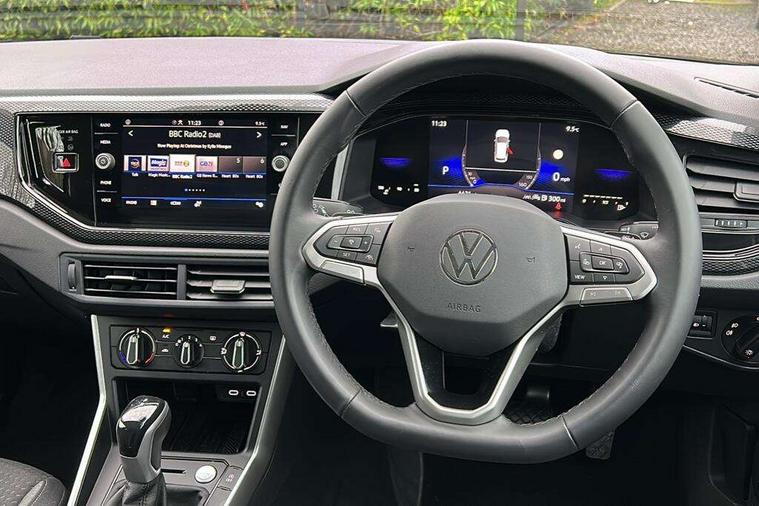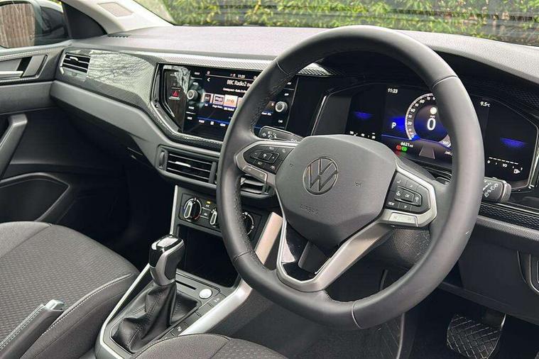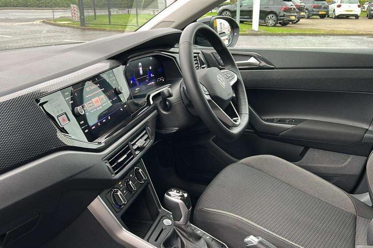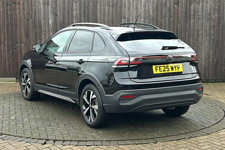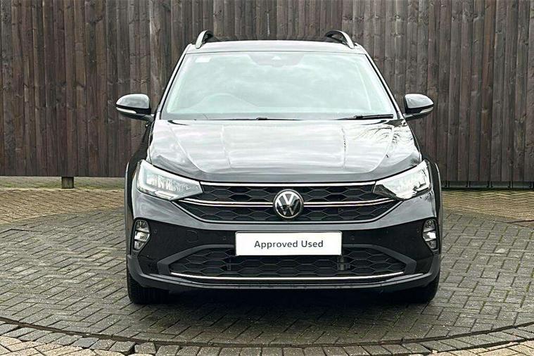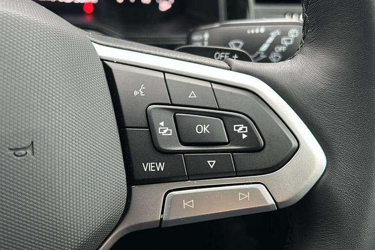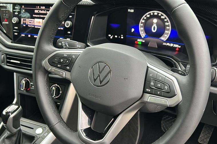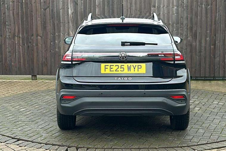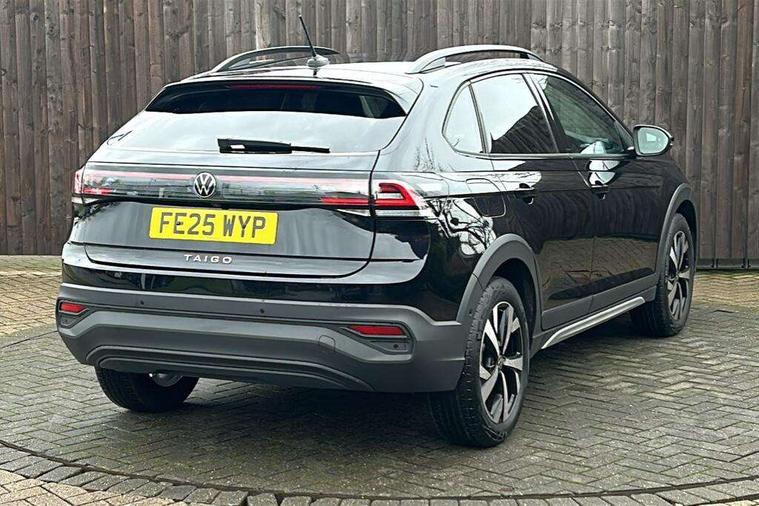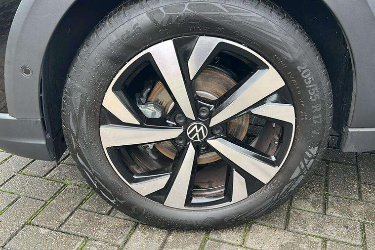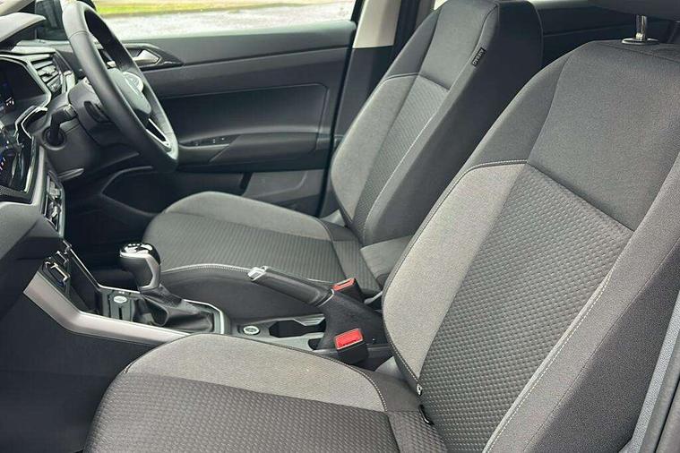 Adaptive cruise control, Advanced driver attention and drowsiness monitor, Dynamic road sign display, e-Call (emergency call), Power Steering, Rear view camera, Travel assist including emergency assist, Washer fluid level indicator, Wireless Charging including Bluetooth, Start-stop system with battery regeneration (recuperation - energy recovery during braking), WeConnect plus, Ambient lighting with logo projection, Aspherical driver's exterior mirror, Body coloured bumpers, Body coloured exterior mirror housings and door handles, Electric windows, External USB type C socket and charging sockets, Heat insulating glass windscreen, LED rear combination lamp, LED third brake light, Left convex exterior mirror, Power folding adjustable/heated exterior mirrors and front passenger exterior mirror lowering function, Rear fog light on one side, reversing light on both sides, Rear side wing doors, Rear wash/wipe with intermittent wipe setting, Side windows in heat-insulating glass, from B-pillar and rear window dark tinted, 'Slash/ Austin' Cloth upholstery, 12V socket in centre console, 2 front reading lights, 3 rear head restraints, 3 seat bench in 2nd row, Black carpets, Ceramique headliner, Child seat anchor for child seat system i-Size, 2x top tether and child seat anchor in front on front passenger side, Door and side trim panels in titan black, Driver and front passenger seat height adjustment, Front centre armrest, Handbrake lever handle in leather, Height and reach adjustable steering wheel, Leather trimmed gear knob, Leather wrapped multifunction steering wheel with paddle shift, Luggage compartment floor, Luggage compartment light, Lumbar support for driver's and front passengers seat, Seat covers in titanium black, Single front passenger seat, Split folding backrest with centre armrest and unsplit rear seat bench, Storage compartment under front seats, Sun visors with illuminated vanity mirrors, Titanium black instrument panel, Chrome Package - Taigo, Drivers assistance package - Taigo, Light and sight pack - Taigo, 2 x 3-point seatbelts/outer rear seats with ECE label, 3-point seat belts in front with pretensioner and height adjustment, 3-point seatbelt for centre rear seat, Driver and front passenger airbag with front passenger airbag deactivation, Driver and front passenger safety-optimised head restraints, Electronic stability control, Extended and predictive pedestrian/ cyclist protection, Front and rear disc brakes, Front curtain and side airbags with center airbag, Hill start assist, Manual rear child locks, Single tone horn, Tyre pressure loss indicator, Anti-theft alarm system with interior monitoring, backup horn, and towing protection, Keyless locking and starting system keyless access with safelock, Black (slush) Dashboard, Lava stone black gloss/matt decorative inserts in dash and front door panels, Low rolling resistance tyres,