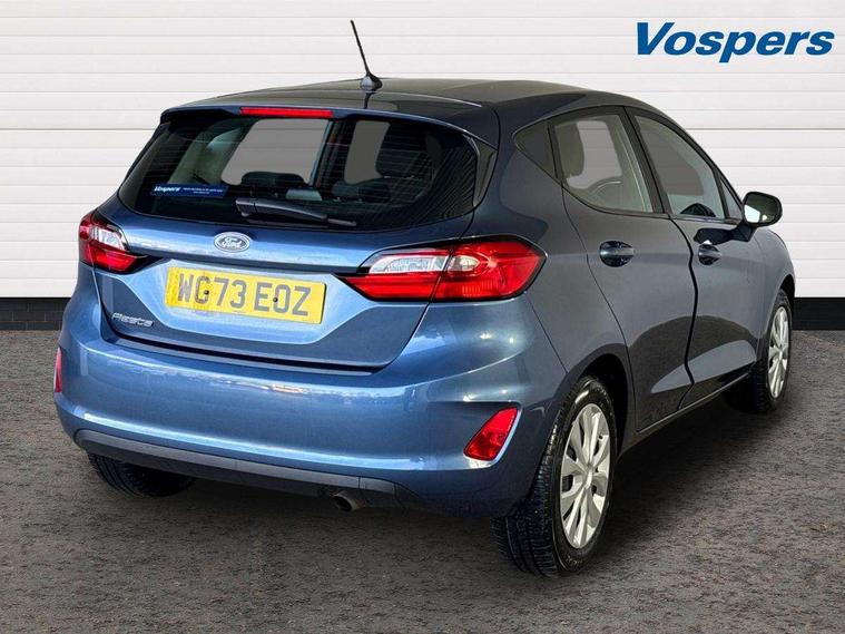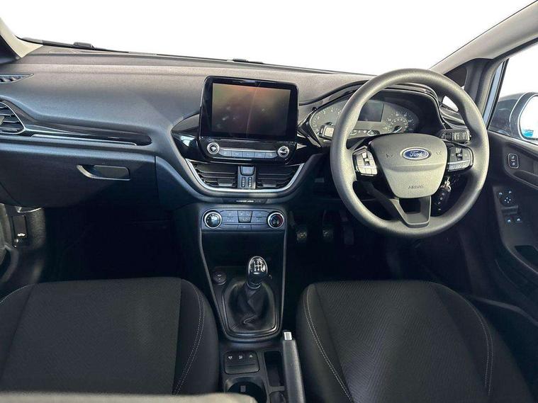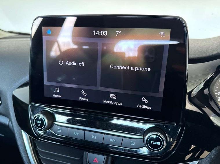Bluetooth system, Electric power steering, Ford easy fuel, Trip computer, 2 USB ports, Auxiliary input socket, DAB Digital radio, Ford SYNC includes 8" touchscreen, 6 speakers, apple carplay, android auto and emergency assistance, Steering wheel mounted controls, Body colour bumpers, Body colour door handles, Body colour rear spoiler, Chrome beltline trim, Electric front windows/one touch facility, Electric rear windows, LED projector low beam headlamps with LED daytime running lights, Mesh design front grille with chrome surround, Quickclear heated windscreen, Rear wiper, 12V Accessory socket in centre console, 60/40 split folding rear seat, Adjustable head restraints, Ambient lighting, Boot carpet, Chrome inner door handles, Cloth upholstery, Footwell illumination, Front floor mats in velour, Front map reading lights, Front seat and rear pockets, Illuminated glovebox, Load area light, Luxury woven headliner, Manual 2 way passenger seat adjust, Manual 4-way driver seat adjust, Manual air conditioning, Overhead console with sunglasses holder, Pollen filter, Rake/reach adjustable steering wheel, NCAP Pack - Fiesta, 3 point seatbelts on all rear seats, ABS+EBA, Curtain airbags, Driver and passenger airbags, Drivers knee airbag, Electronic stability control with hill start assist, Front passenger airbag deactivation, Front side airbags, Tyre pressure monitoring system, MyKey system, Remote central locking & engine immobiliser, Thatcham Cat.1 alarm, 16" 8 spoke alloy wheels with rock metallic machined finish, Tyre repair kit,