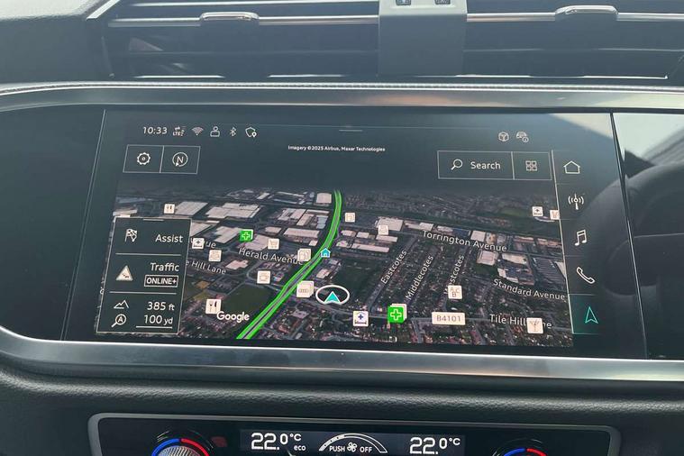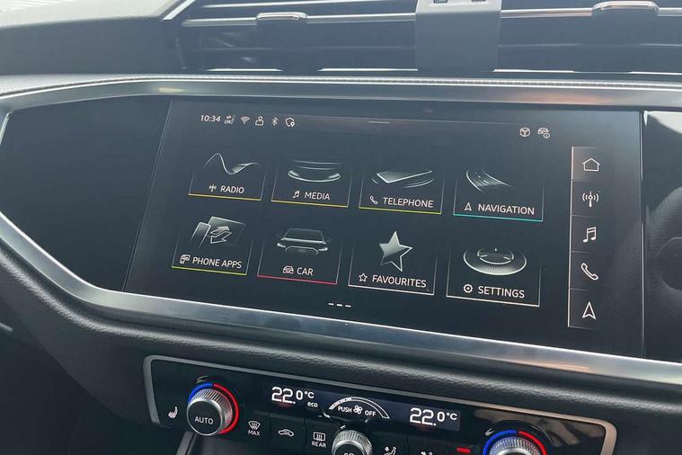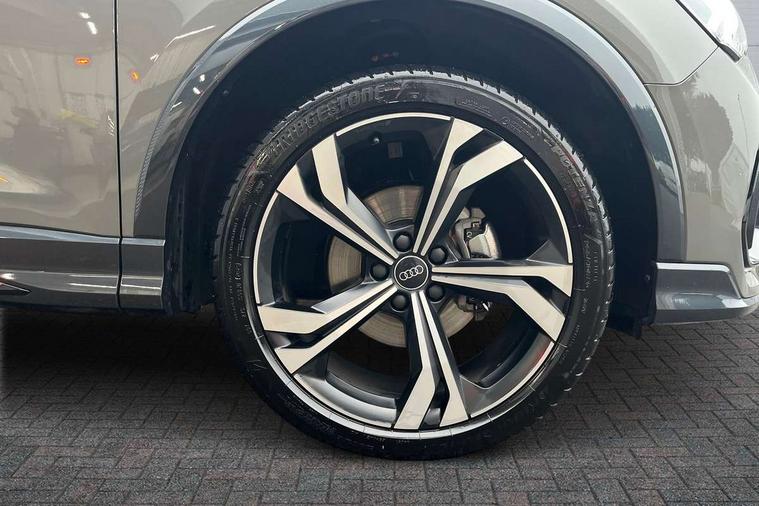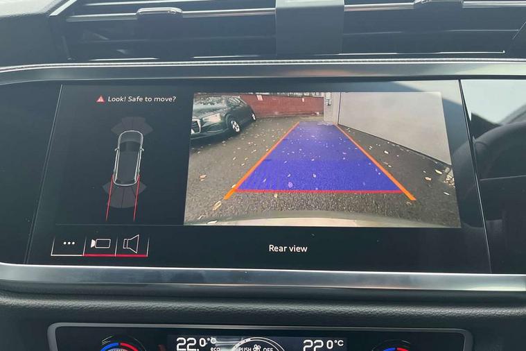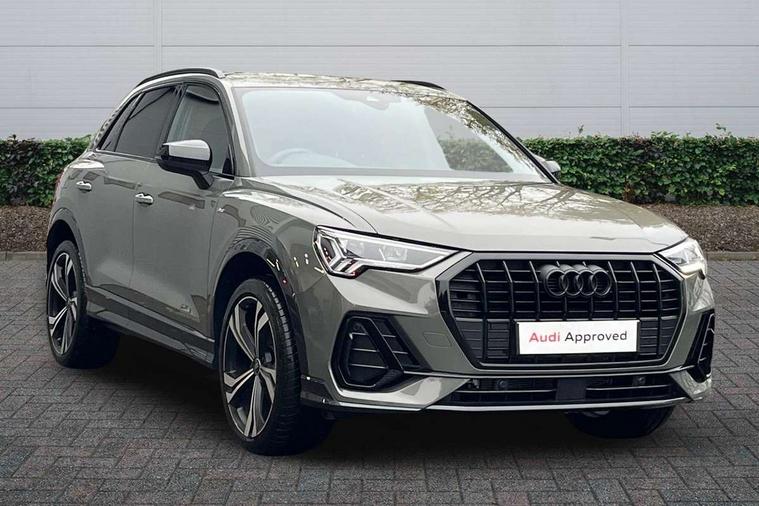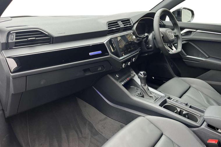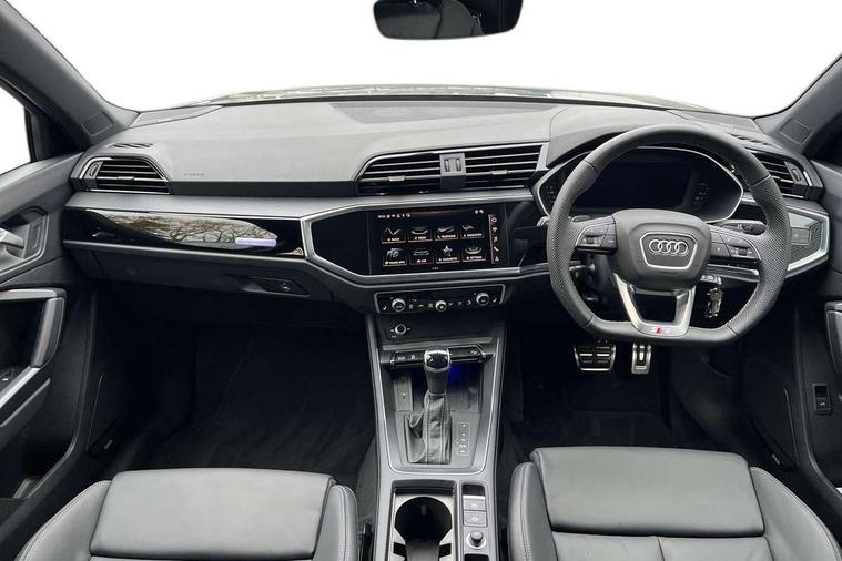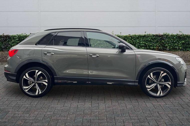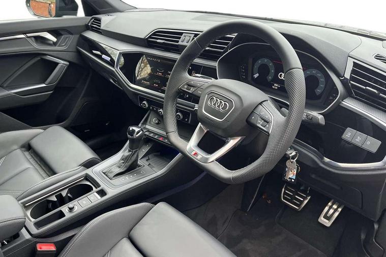 Amazon alexa Integration, Audi connect safety and service, Audi drive select, Audi lane departure warning, Audi Virtual Cockpit - 10.25" display, Bluetooth interface, Camera based traffic sign recognition, Distraction and Fatigue warning, Legal emergency call, MMI Navigation Plus with high resolution 10.1 inch touchscreen colour display, Power operated tailgate, Progressive steering, Service interval indicator, Smartphone interface includes wireless Apple carplay/Android Auto, Start stop system with recuperation, Voice control system with natural language interaction, Diesel particulate filter, Sports suspension, 2 USB-C ports with charge and data functions, 6 passive loudspeakers, DAB digital radio module, Acoustic windscreen, Anthracite black radiator grille, Audi Beam uses LEDs to project the Audi logo onto the ground as you exit your Q3, Auto dimming door mirrors, Auto dimming frameless rear view mirror, Black roof rails, Electrically folding, adjustable and heated door mirrors with integrated LED side indicators and kerb view function for passenger side, Front and rear electric windows, Front fog lights, Grille vertical bars in aluminium silver/Matt, High gloss black finish B and C pillars, LED Dynamic rear indicators, LED headlights with LED daytime running lights, LED rear lights, LED third brake light, Privacy glass dark tinted rear and rear-side windows (from B-pillar backwards), Rain and light sensors, Rear diffuser grille in grained matt black, Rear diffuser strip in matt anthracite black, Rear side wing doors, Rear wiper, S line bumpers in contrasting Manhattan grey, Variable front intermittent wipers, 12V socket in rear centre console, 3 seat bench in 2nd row, 40:20:40 folding with manual adjustment for 60:40 forwards/backwards position and backrest angle, Adjustable rear seat bench/backrest with centre armrest and cupholder, Black carpet mats, Black cloth headlining, Dual zone electronic climate control, Electric lumbar support, Front and rear black floor mats with contrast stitching in rock grey, Front and rear headrests, Front centre armrest, Height and reach adjustable steering wheel, Illuminated door sill trims with S logo, ISOFIX child seat mounting for front passenger with airbag deactivation and outer rear seat including top tether attachment point for outer rear seats, Luggage compartment sill protection in stainless steel, Manual front seats with height adjustment, Perforated leather gearknob, Single front passenger seat, Stainless steel pedals, Twin leather upholstery with front sport seats + S embossing, Black styling pack - Q3, Non smoking pack - Q3, 3x3 point rear seatbelts, 6 airbags - Driver, front passenger, curtain and side windows, Audi pre-sense front with pedestrain and cyclist recognition, Electrically operated child locks on rear doors, Electromechanical parking brake, Electronic stabilisation control including ABS, ASR and EDL, Front seatbelt reminder, Hill descent control, Hill hold assist, Pre sense basic, Seatbelt monitoring, Tyre pressure warning, Warning triangle and first aid kit, Anti theft wheel bolts, Immobiliser, Remote central locking, Thatcham approved category 1 anti theft alarm, Aluminium look interior elements, Detail dashboard around MMI touch colour display in glass look, black with surround in aluminium look, Leatherette door armrest, Piano black inlay,