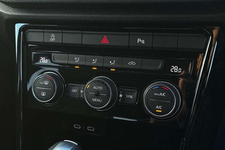 App-Connect, 'Lights On' Reminder warning buzzer, Adaptive cruise control, Adaptive cruise control with front assist, radar sensor controlled distance monitoring, city emergency braking, Automatic start/stop system, Bluetooth telephone and audio connection for compatible devices, Car information display, Driver tips and journey analysis, Dusk sensor, Lane assist with warning text instrument cluster, Modified key software - reduce switch off time for key status change to Long no motion, Multifunction computer with visual gear change recommendation for fuel consumption, Service interval indicator, Think blue trainer driver tips and journey analysis, Warning sound and light for doors and tailgate open, Warning sound and light for front seatbelts unfastened, Wireless app connect for apple carPlay, Battery regeneration during braking, Centre arm rest including USB type C interface and USB charging socket, DAB Digital radio, Diversity antenna for FM reception, Front USB type C Interface 2X and USB charging socket, Multi device interface (MDI) with USB connection, Music playback - MP3, WMA and AAC files, Premium USB cable in choice of either Apple or Android smartphone compatibility, SD card slot, Simultaneous pairing of 2 compatible mobile devices, Single CD player, glovebox mounted, SMS functionality - read, compose and send SMS messages using touch-screen display, Title and cover art display, Auto dimming interior rear view mirror, Automatic hazard lights activation under emergency braking, Black grained lower door protectors, Black grained wheel arches, Body colour bumpers with silver metallic underbody fascia, Body colour door handles, C pillar decorative film in dark grey/black with graphic pattern, Chrome trim on upper and lower radiator grille, Electrically foldable, adjustable and heated door mirrors with puddle lights and reverse activated kerb-view adjustment on passenger's door mirror, Exhaust tailpipes in black, Front and rear electric windows, Front windscreen wiper with intermittent wipe and 4 position delay, Fully galvanised body, Heated rear window, High level 3rd brake light, LED dipped and main beam headlights with automatic range adjustment including signature LED daytime running lights, LED rear number plate lights, Manual coming/automatic leaving home lighting function, Rain sensor, Rear tinted glass from B-pillar backwards approx 65% tinted, Rear wash/wipe with intermittent wipe setting, Trim strips on grille and vehicle side, Volkswagen roundel, 12V socket in centre console storage area, 3 rear head restraints, 4 load lashing points in luggage compartment, Black decorative trims, Black roof lining, Climate control - 2 zone electronic air conditioning with automatic air recirculation and allergy filter, Drawer under drivers seat, Front centre armrest with storage compartment, longitudinal and height adjustable and two rear air vents, Front cupholders x 2, Front seat back storage pockets, Glovebox, Height adjustable front seats, Height/reach adjust steering wheel, Instrument lighting, white adjustable panel illumination, Interior light in footwell, Isofix easy fit child seat preparation for 2 outer rear seats, Leather gearshift knob, LED interior light with switch off delay/dimmer and 2 front/rear LED reading lights, Load through provision with single cup holder when folded down, Luggage compartment cover, removable, Luggage compartment lighting, Split folding rear seat backrests with centre armrest, Storage compartment in left and right luggage area, Storage compartment in rear doors, Storage compartments in driver and front passenger doors, Sunvisors with illuminated vanity mirrors, Three spoke multi function leather trimmed steering wheel and gear knob including paddle shift, White ambient lighting, 3 rear three point seatbelts, ABS, Curtain airbags, Driver and front passenger safety-optimised head restraints, Drivers and front passengers airbags with passengers deactivation switch, Drivers seatbelt reminder, Electronic parking brake with auto hold, Electronic stability control (ESC) includes ASR, EDL, EDTC and trailer stabilisation function, Front seat side impact airbags, Predictive pedestrian protection, Rigid safety cell with front and rear crumple zones, Three point height adjust front seatbelts + pretensioners, Tyre pressure loss indicator, Ventilated front and rear disc brakes, Volkswagen roadside assistance, Alarm with remote central locking and interior protection, Electronic engine immobiliser, Remote central locking with 2 remote folding keys, Piano black decorative inserts in dash, centre console and door panel, 18" Arlo black diamond turned surface alloy wheels,