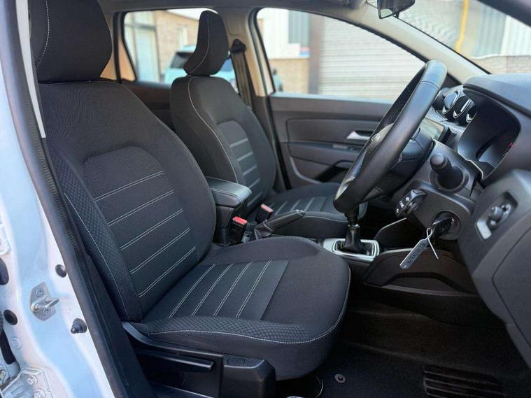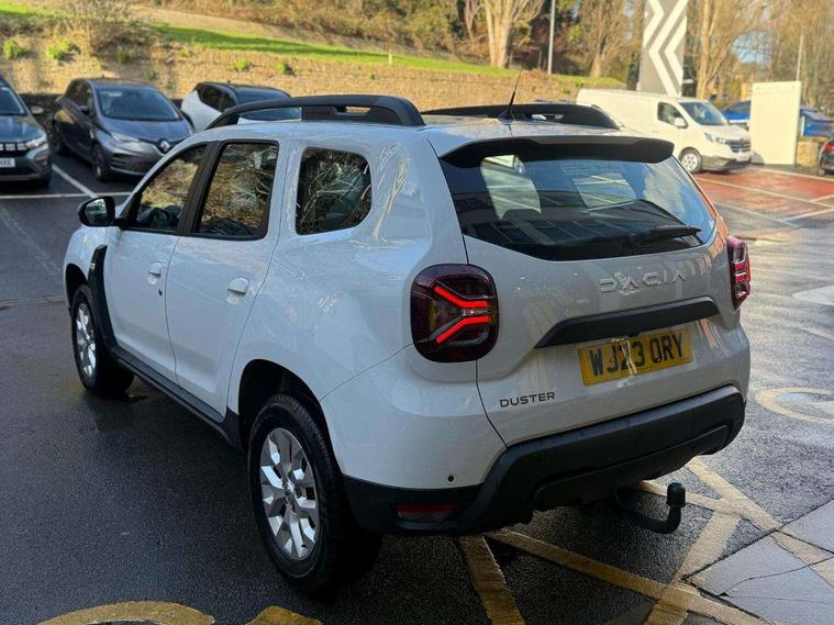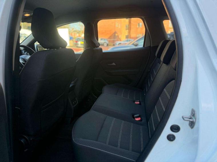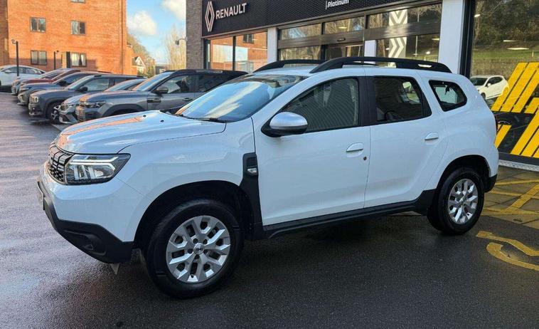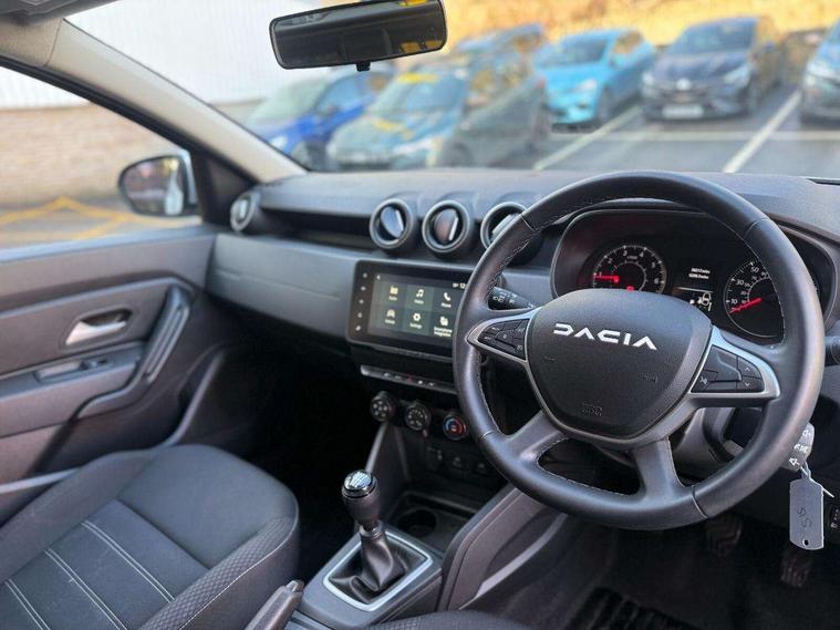 Cruise control and speed limiter, eCall emergency system, Eco mode, Electric power assisted steering, On board computer, odometer, trip computer, average fuel consumption, average speed, service indicator, outside temperature gauge, Rear parking sensors, Rev counter, Reversing camera, Stop/start system, 8" Media display with smartphone replication, 2 usb sockets and 6 speakers, Dacia plug and radio/MP3/USB/bluetooth/DAB/steering wheel control, 3 speed windscreen wipers, Black longitudinal roof bars with Duster inscription, Black side sills, Black/satin chrome tailgate trim with Duster inscription in black background and lettering, Body coloured door handles, Chrome front grille with hot stamping, Chrome logo surround on steering wheel, Daytime running lights, Drivers window one touch up/down, Dusk sensor, Electric adjustable/heated door mirrors, Electric front windows, Electric rear windows, Front and rear body coloured bumpers, Front door sill protection strip, Front fog lights, Heated rear window, High level third rear brake light, Rain sensor, Rear side wing doors, Rear spoiler, Rear wash/wipe, Satin chrome door mirrors, Tinted windows, Underbody protection skid plates, Y shaped LED headlights with rear LED lights, 3 rear height adjustable headrests, 3 seat bench in 2nd row, 60/40 split folding rear seat, Backlighted steering wheel buttons, Boot light, Driver seat lumbar adjustment, Fabric decorative insert on door panels, Fabric upholstery, Front head restraints, Front passenger reading light, Gear shift indicator, Height adjustable driver seat, Height adjustable front and rear headrests, Height and depth adjustable steering wheel, High centre console with driver armrest, Isofix points for child seats in both outer rear seats, Manual air conditioning, Map pocket on front seat backs, Passenger sunvisor with vanity mirror, Rear passenger reading light, Satin chrome interior door handles, Satin chrome lower steering wheel insert, Single front passenger seat, Soft feel leather steering wheel, 3x3 point rear seatbelts, ABS and Emergency brake assist, ASR traction control with Electronic stability control, Child locks on rear doors, Door open visual and audible warning, Driver airbag, Driver and passenger seatbelt not fastened - visual and audible warning, EBD - Electronic brakeforce distribution, Front passenger airbag, Front passenger airbag deactivation, Front seatbelt pretensioners, Front side airbags, Height adjustable front seatbelts, Hill start assist, Tyre pressure monitor, Remote central locking, Thatcham approved engine immobiliser, Charcoal grey central console surround, Matt black central console fascia, Piano black decorative insert on front door panels, Satin chrome air vent surround, Satin chrome instrument dial surrounds, 16" alloy wheels,