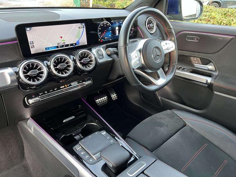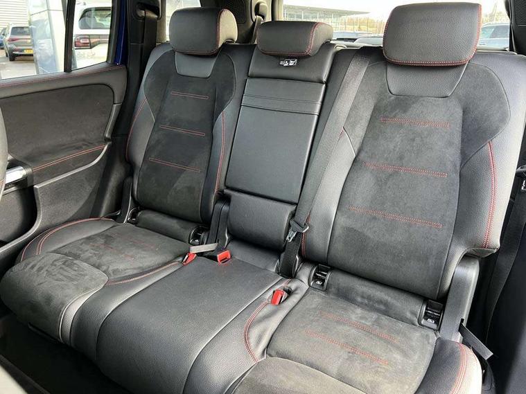 10.25" Digital instrument cluster display screen, 10.25" Digital media screen display, Active lane keeping assist, Attention assist - Monitors steering behaviour and long journey fatigue, Brake pad wear indicator warning light, Car wash mode, Cruise control with limiter, DYNAMIC SELECT with a choice of driving modes (ECO, Comfort, Sport and Individual), ECO start/stop function, Fluid level warning indicator for fuel, oil, coolant and washer fluid, Hard disk navigation, Hey Mercedes Voice activation, Lamp failure indicator, Mercedes me connect including emergency call system, accident recovery, breakdown and maintenance management, Mercedes me remote services, Outside temperature gauge, Owners manual and service booklet in English, Parameter steering system, Pre-installation of private car share, Radio aerial integrated into front and rear windshields, Service indicator (ASSYST), Smartphone integration with Apple CarPlay and Android auto, Speed limit assist, Trip computer in multifunction display with current consumption indicator, Comfort suspension, Rear axle multi-link, DAB digital radio tuner, MBUX multimedia system with DAB digital radio and touchpad including satellite navigation, Mercedes Benz sound system (225 W) with 10 speakers, 1 central speaker, speakers on doors, a tweeter on door, one sub woofer + boost amplifier, Pre installation for Mercedes Benz Link, USB (type C) port in front stowage compartment, USB (type C) ports (2) in stowage compartment, Adaptive brake lights, Aerial for GPS, AMG bodystyling door panels black grained with chrome plated inserts, AMG bodystyling front apron with chrome splitter, AMG bodystyling rear apron with diffuser optics and chrome trim element, AMG specific front and rear bumper including underride guard in high gloss chrome, Beltline strips and weather strip in chrome, Body coloured door handles with chrome insert for keyless entry, Body coloured door mirror caps, Electric adjustable and heated door mirrors with integrated LED side indicators, Exhaust system with dual flow exhaust pipes (non-functional), Front and rear electric windows, Headlamp assist automatic headlamp activation, Heated glass rear windscreen + timer control, High level LED third brake light, Interior mirror with black reading lamps and frameless, LED high performance headlamps with integrated LED daytime running lights, LED tail lamp, Polished aluminium roof rails, Privacy glass with dark tinting on rear side windows and rear window, Radiator grille with pins in chrome and single louvre with chrome insert, Rain sensor windscreen wipers, Rear fog lamp, Rear side wing doors, Rear wing door, Rear wiper, Two visible tailpipe trim elements exhaust, 3 seat bench in 2nd row, 3 spoke multifunction sport steering wheel in nappa leather, Air conditioning - Two zone thermotronic luxury automatic climate control with display, AMG sports pedals with brushed stainless steel surfaces and black rubber studs, Artico man-made leather/Microfibre Dinamica upholstery with red contrast stitching, Automatic child seat recognition sensor, Black floor mats with AMG lettering, Black roof lining, Fore/aft adjustment rear seats, Freight packaging with tie-down hooks, Front centre armrest with stowage, Front door sills with illuminated changeable cover, Front passenger grab handle with brushed side silver chrome, Front sports seats with adjustable head restraints, Galvanished gear shift paddles on steering wheel, Heated front seats, Height/reach adjustable steering column, Interior lighting - 64 colour Ambient lighting, Luggage net on driver/front passenger seat backrest, Rear armrest with two integral cup holders for drinks, Rear seat easy entry, Single front passenger seat, Stowage compartment in centre console, Stowage compartment with retractable cover, Third row of seats for two people on rear seat, Touchpad on center console, Twin front cup holders, Two outer rear seat isofix and top tether child seat fixing points, Interior lighting with light and sight pack - GLB, Keyless go pack - GLB, Mirror pack - GLB, Parking pack - GLB, Seat comfort package - GLB, 3 rear 3 point seatbelts, Active bonnet pedestrain safety measure which detects an impact and raises bonnet by 65mm, Active brake assist includes forward collision warning system with autonomous braking, Adaptive brake assist with hold function and hill start assist, Airbags - kneebag for driver, Anti-lock braking system (ABS) with brake assist, Childproof locks manually operated for rear doors and electrically operated for rear power windows, Crash responsive emergency lighting, Curve dynamic assist, Driver and front passenger head and sidebags, Driver and front passenger windowbags, Dual stage driver and front passenger airbags, Electronic parking brake, Electronic stability programme with acceleration skid control, Front and rear seatbelt reminder, Front brake callipers with Mercedes Benz lettering, Front passenger seat occupancy sensor, Tyre pressure monitoring system, Warning triangle and first aid kit, Remote central locking and crash sensor with emergency opening function, Thatcham category 1 alarm system with immobiliser and interior protection, Urban guard vehicle protection - Anti theft alarm system, tow away protection with visual and acoustic warning and alarm siren, Vehicle key with decorative surround in chrome, Black air vents with chrome surround, Carbon structure trim, 19" AMG 5 twin spoke light alloy wheels painted in tantalite grey with high sheen finish, Summer tyres, Tirefit tyre sealant kit,
