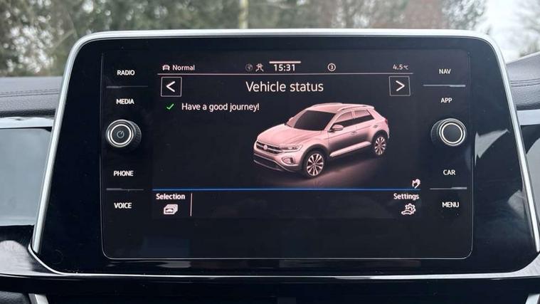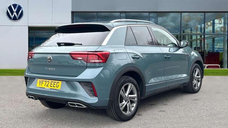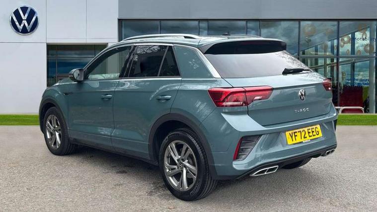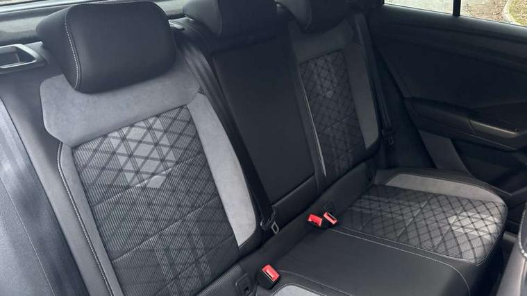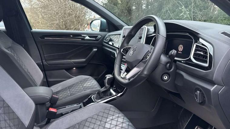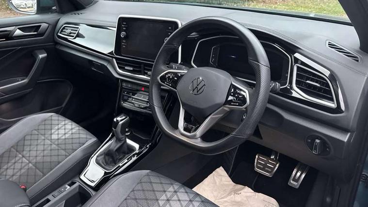 10.25" Digital cockpit pro, Bluetooth mobile phone interface, Driver alert system with fatigue detection, Driver tips and journey analysis, Emergency call service, Lane keeping system Lane Assist, Modified key software - reduce switch off time for key status change to Long no motion, Online services, Park assist including front and rear parking sensors, Service interval indicator, Tailgate/trunk lid release from outside, Think blue trainer driver tips and journey analysis, Warning sound and light for front seatbelts unfastened, Wireless app connect, Battery regeneration during braking, Start/stop function with battery regeneration, Diversity antenna for FM reception, Front and rear 6 speakers, Music playback - MP3, WMA and AAC files, Premium USB cable in choice of either Apple or Android smartphone compatibility, SD card slot, Simultaneous pairing of 2 compatible mobile devices, Title and cover art display, We Connect and We Connect Plus functionality, 3rd brake light, Auto dimming interior rear view mirror, Automatic hazard lights activation under emergency braking, Automatic headlight control with LED separate daytime running lights with coming/leaving home function, Extended roof spoiler, Exterior mirrors aspherical on driver side, convex on front passenger side, External USB type C socket and charging sockets, Front windscreen wiper with intermittent wipe and 4 position delay, Heated rear window, LED Plus headlamps, LED rear combination lamps, LED rear number plate lights, LED tail lamp rear comination lamps, Power windows with comfort operation and circuit breaker, R-Line design body coloured bumpers, Rain sensor, Rear exhaust tailpipe, Rear fog light on one side and reversing lights on both sides, Rear side wing doors, Rear wash/wipe with intermittent wipe setting, Remote electrically foldable door mirrors, puddle lights and reverse activated passenger's door mirror, 12V power socket in centre console, 3 rear head restraints, 3 seat bench in 2nd row, 4 load lashing points in luggage compartment, Air care climatronic air conditoning system with active combination filter and 2-zone temperature control, Black roof lining, Chrome plated radiator grille inserts, air vent surrounds and light switch surrounds, Door and side trim panel with leatherette insert, Drawer under drivers seat, Front + rear carpet mats, Front centre armrest, Front cupholders x 2, Front footwell illumination, Front reading light, Front scuff plates with R logo, Instrument lighting, white adjustable panel illumination, Interior ambient lighting and surround lighting, Interior light delay, Isofix child seat preparation, Leather gearshift handle, Load-through provision with cup holder when folded down ('Unsplit rear seat bench, split folding backrest, with centre armrest), Luggage compartment lighting, Single front passenger seat, Stainless steel pedals, Storage compartment in left and right luggage area, Storage compartment in rear doors, Storage compartments in driver and front passenger doors, Sunvisors with illuminated vanity mirrors, Variable boot floor, height adjustable and removable, Driver assistance pack without proactive passenger protection - T-Roc, 3 point height adj front seatbelts + pretensioners, 3 point seatbelts in outer rear with ECE label, ABS, Child locks on rear doors, Driver and front passenger airbag with front passenger airbag deactivation, Driver and front passenger safety-optimised head restraints, Drivers seatbelt reminder, Electronic parking brake, Electronic Stability Control (ESC) inc EDL (Electronic Differential Lock) and ASR (Traction Control), Front and rear passengers curtain airbag system including front side airbags, Front assist with city emergency braking and pedestrian monitoring, Front seat side impact airbags, Hill start assist, Predictive pedestrian protection, Rear disc brakes, Single tone horn, Tyre pressure loss indicator, Volkswagen roadside assistance, Alarm with interior protection, Anti-theft alarm system with interior monitoring, backup horn, and towing protection, Remote central locking with SAFELOCK, radio remote control with 2 remote control folding keys, Trims for alloy wheels,