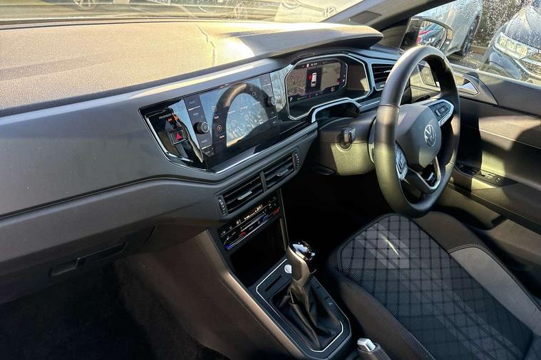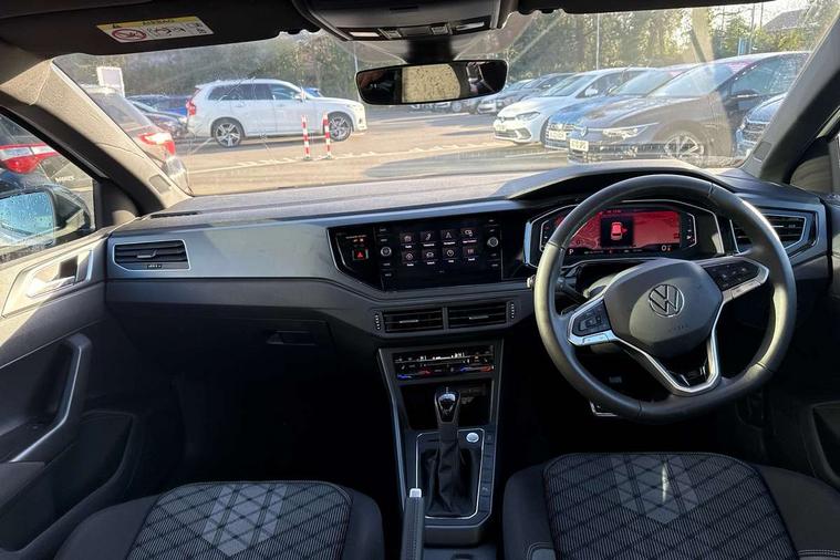 Adaptive cruise control with follow-to-stop and speed limiter, Advanced driver attention and drowsiness monitor, Bluetooth mobile phone interface, Digital Cockpit Pro with 10.25" Display, Dynamic road sign display, Emergency call service, Mobile phone preparation with inductive charging function, Multifunction camera, Power assisted speed sensitive steering, Preparation for We connect and We connect plus, Speedo and rev counter, electronic odometer, trip, service interval display and fuel gauge, Standard rear axle, Travel Assist - Lane keeping system and traffic jam assist, Travel assist including emergency assist, Trip computer, Warning signal and warning light for front and rear seatbelts not fastened, Washer fluid level indicator, Wireless app connect, Front wheel drive, Rear shock absorpion, Start-stop system with battery regeneration (recuperation - energy recovery during braking), DAB Digital radio, Diversity antenna for FM reception, Body colour bumpers, Body colour door handles, Electric front windows, Front scuff plates with Black edition logo, Heat insulating glass windscreen, Power folding adjustable/heated exterior mirrors and front passenger exterior mirror lowering function, Rear electric windows, Rear fog light, Rear side wing doors, Rear windscreen washer and wiper with interval delay, Third brake light, 12V power socket in centre console, 2 USB-C ports in the front, 2 USB-C charging sockets on the center console in the rear, 3 rear head restraints, 60/40 split folding rear seat and rear seat bench not split, Air care climatronic air conditoning system with active combination filter and 2-zone temperature control, Black roof lining, Carpet mats, front and rear, Chrome plated radiator grille inserts, air vent surrounds and light switch surrounds, Door and side trim panel, Driver and front passenger seat height adjustment, Driver/passenger sunvisors with illuminated vanity mirrors, Front centre armrest, Front footwell illumination, Front seat backrest storage pockets, Front sports comfort seats, Handbrake lever handle in leather, Headliner in recycled material, Heated front seats, Isofix child seat preparation easy-fit (for two outer rear seats, and front passenger seat) compatible with I-size, Karoso artvelours cloth upholstery, Leather trimmed gear knob, LED interior light with switch off delay and dimmer, 2 reading lights front and rear, Luggage compartment cover, Luggage compartment floor, Luggage compartment lighting, Lumbar adjustment for front seats, Single front passenger seat, Stainless steel pedals, Standard pedal cluster, Three spoke leather wrapped multifunction steering wheel with shifting paddles, Black roof pack - Polo, IQ LED matrix headlights pack - Polo, Light and sight pack - Polo R-Line/Black Edition, 3 point height adj front seatbelts + pretensioners, 3x3 point rear seatbelts, ABS, Driver and front passenger airbag with front passenger airbag deactivation, Drivers and front passengers safety optimised head restraints, ESC (Electronic stability control) + EDL (Electronic Differntial lock) and ASR (Traction control), Extended and predictive pedestrian/ cyclist protection, Front curtain and side airbags with center airbag, Front/rear disc brakes, Hill hold control, Manual child lock in rear doors, Single tone horn, Tyre pressure loss indicator, Alarm with interior protection, Anti-theft alarm system with interior monitoring, backup horn, and towing protection, Anti-theft wheel bolts, Electronic engine immobiliser, Black dashboard, Chrome applications on rotary light, mirror adjustment, window regulator switches, outlet with frame in black, Dark grey anodised matt decorative inserts in dash and front door panels, 17" York black diamond turned alloy wheels, Low rolling resistance tyres,